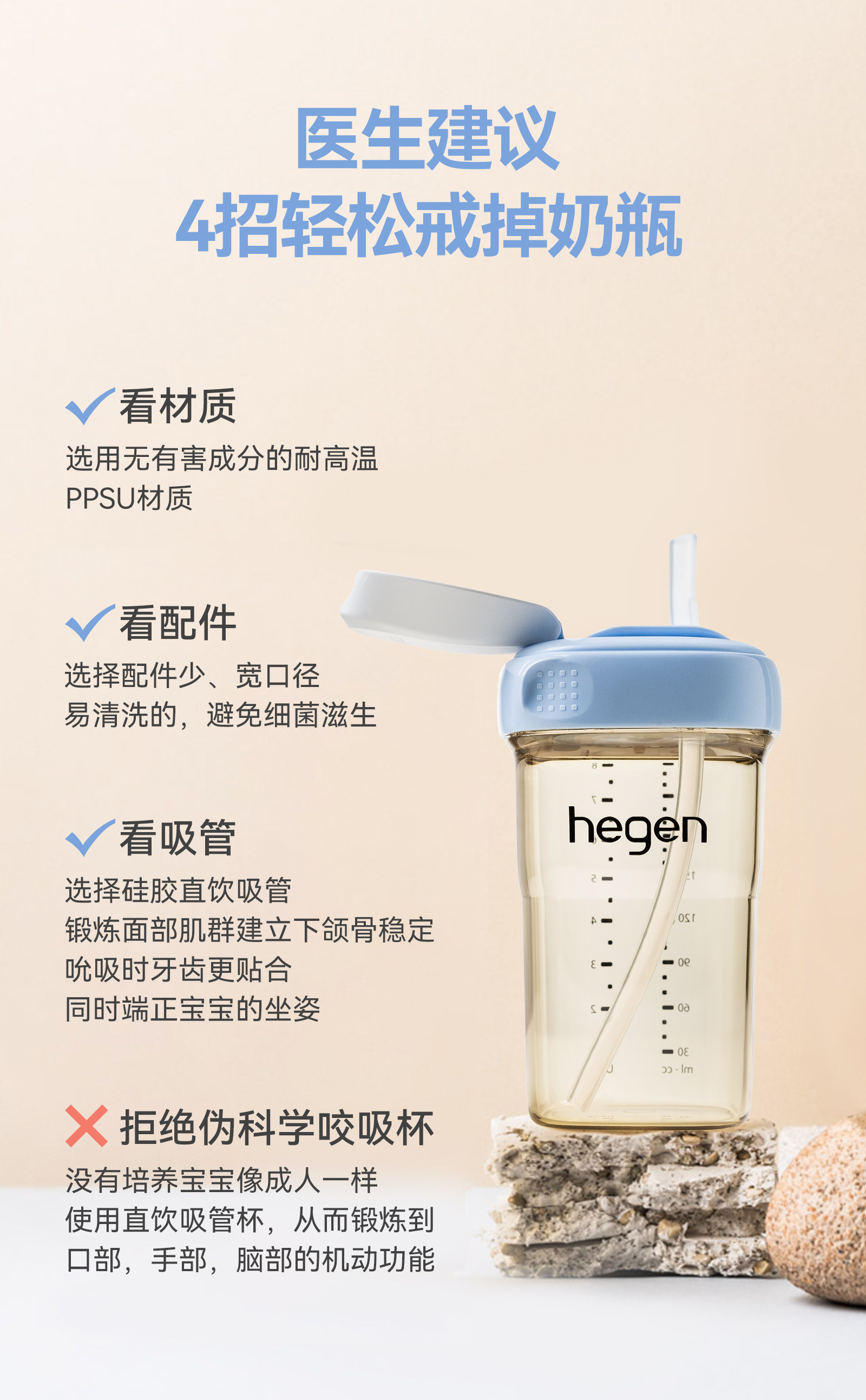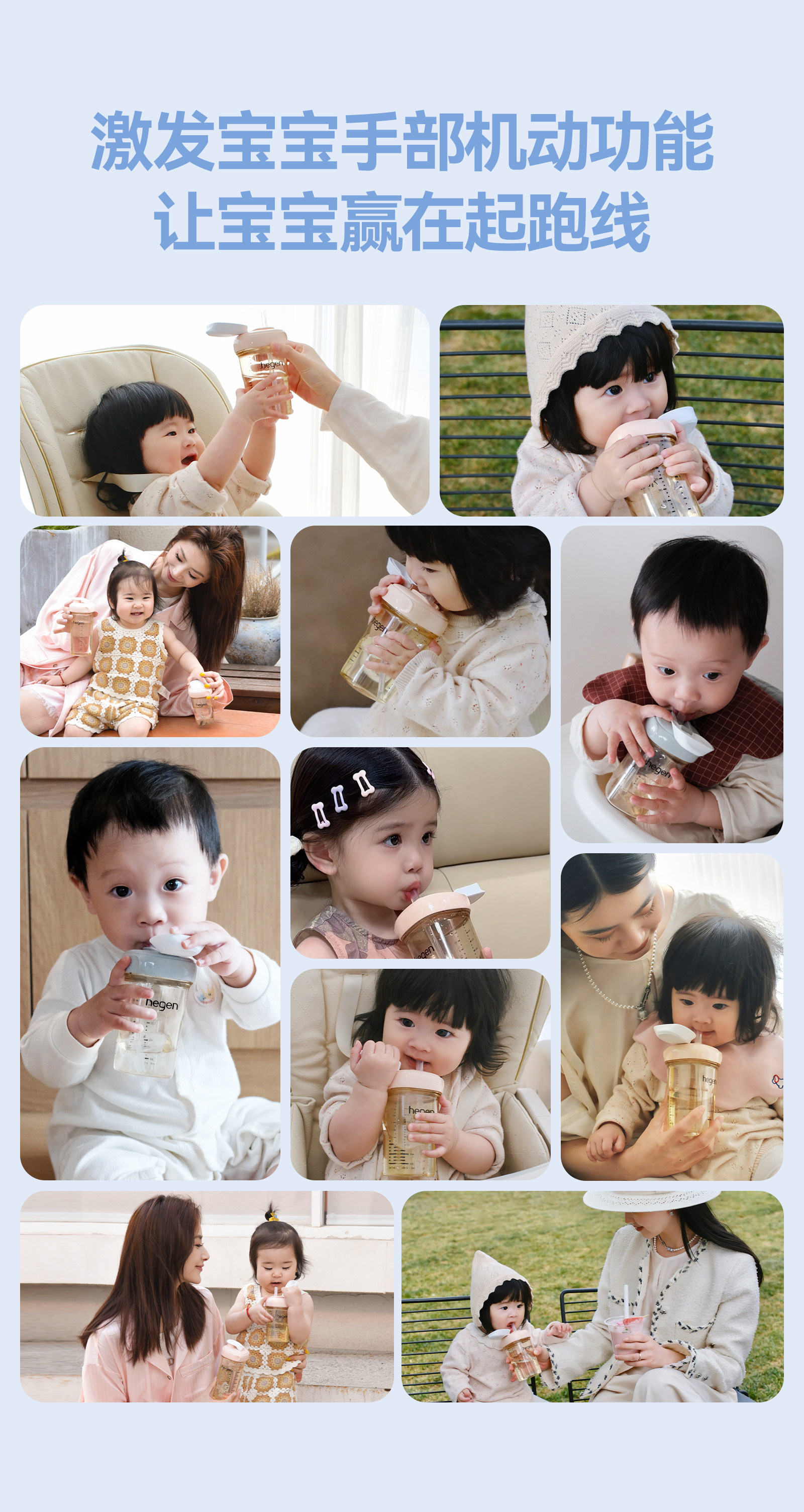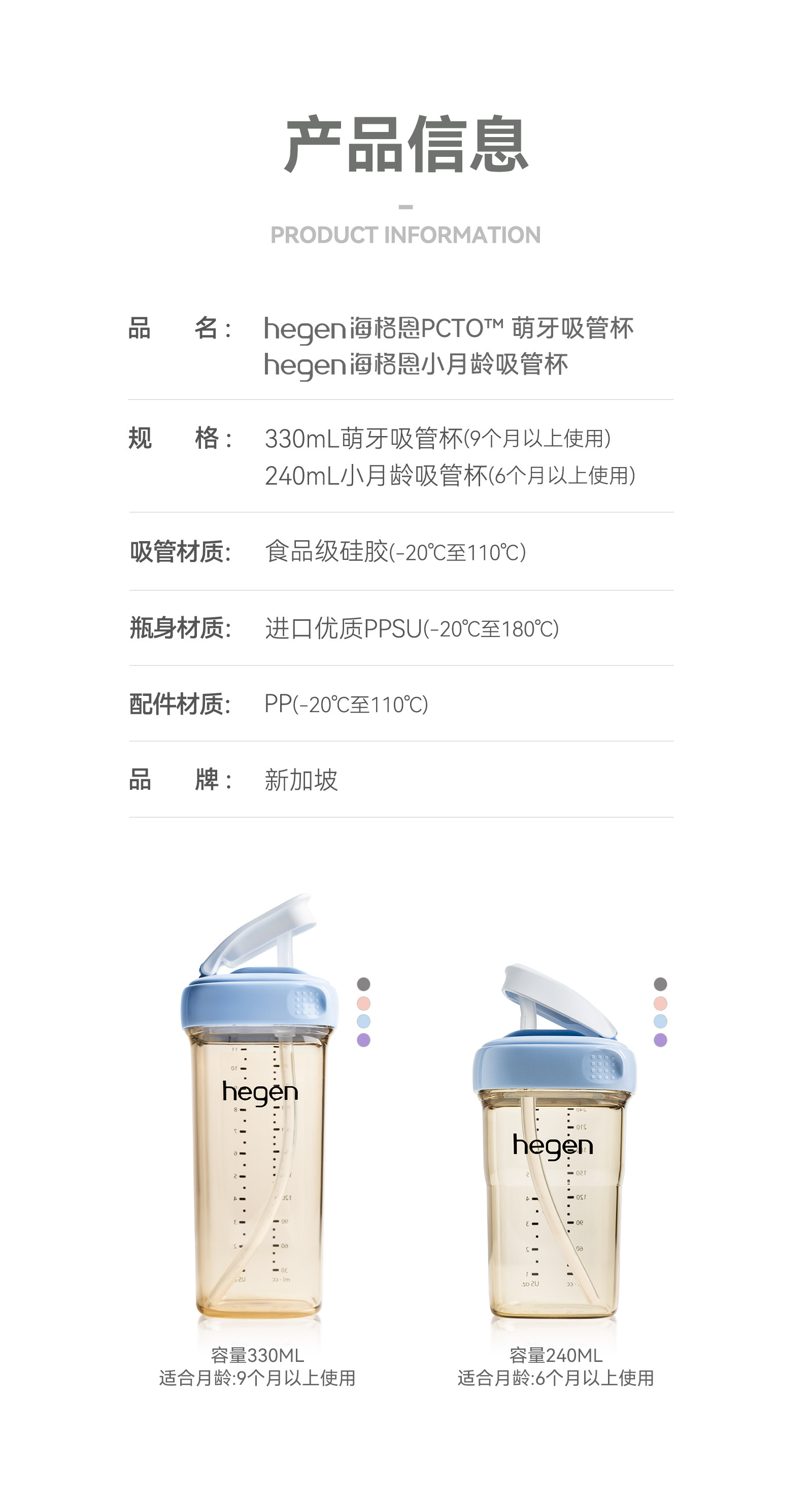 Hegen Baby Straw Cup 6-Month-Old Baby Water Cup Combination Kidsren's Special Direct Drinking Straw Milk Cup