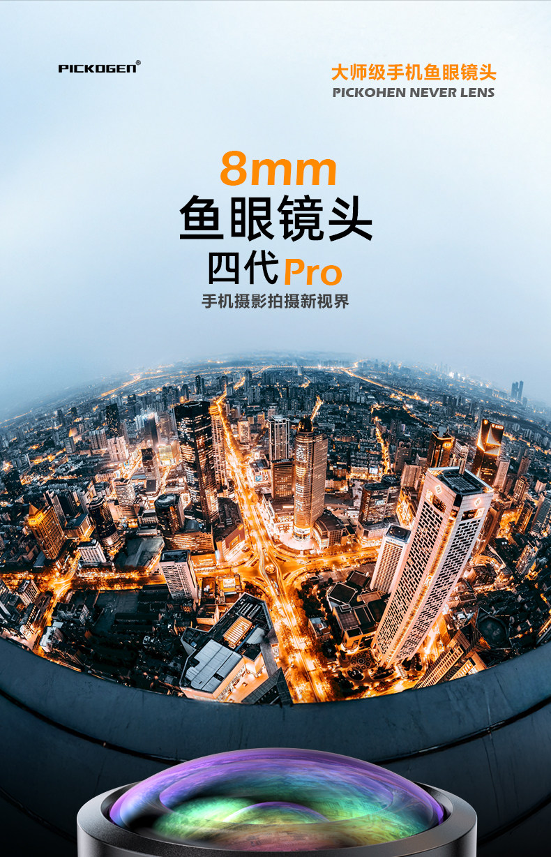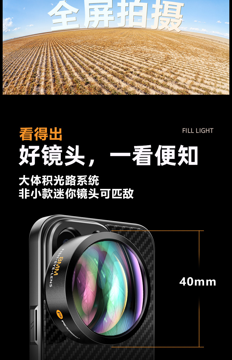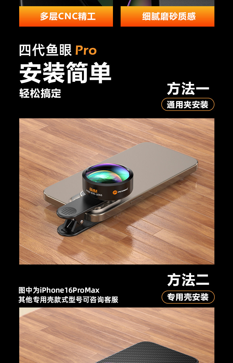 Pickogen Mobile Phone Fisheye Lens 8mm Full-Frame High-Definition Full-Screen Large Scene Professional Landscape Architecture Creative Shooting External Camera Suitable for Apple 16 Pro Max Huawei Mate 70
