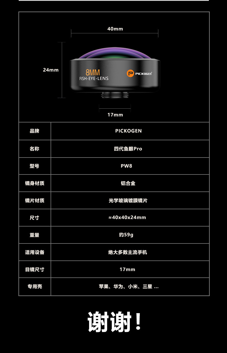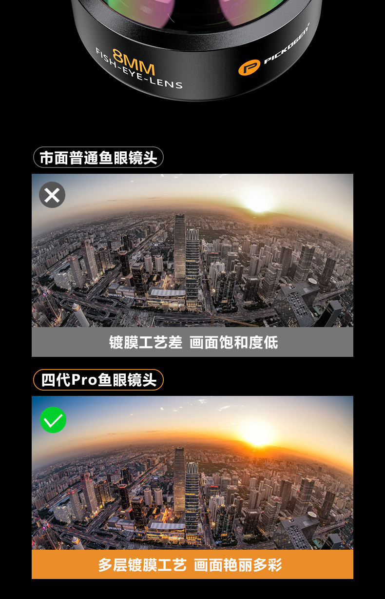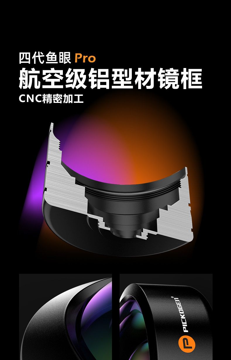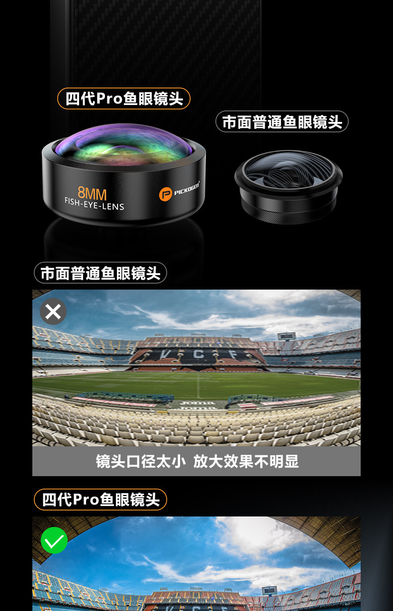 Pickogen Mobile Phone Fisheye Lens 8mm Full-Frame High-Definition Full-Screen Large Scene Professional Landscape Architecture Creative Shooting External Camera Suitable for Apple 16 Pro Max Huawei Mate 70