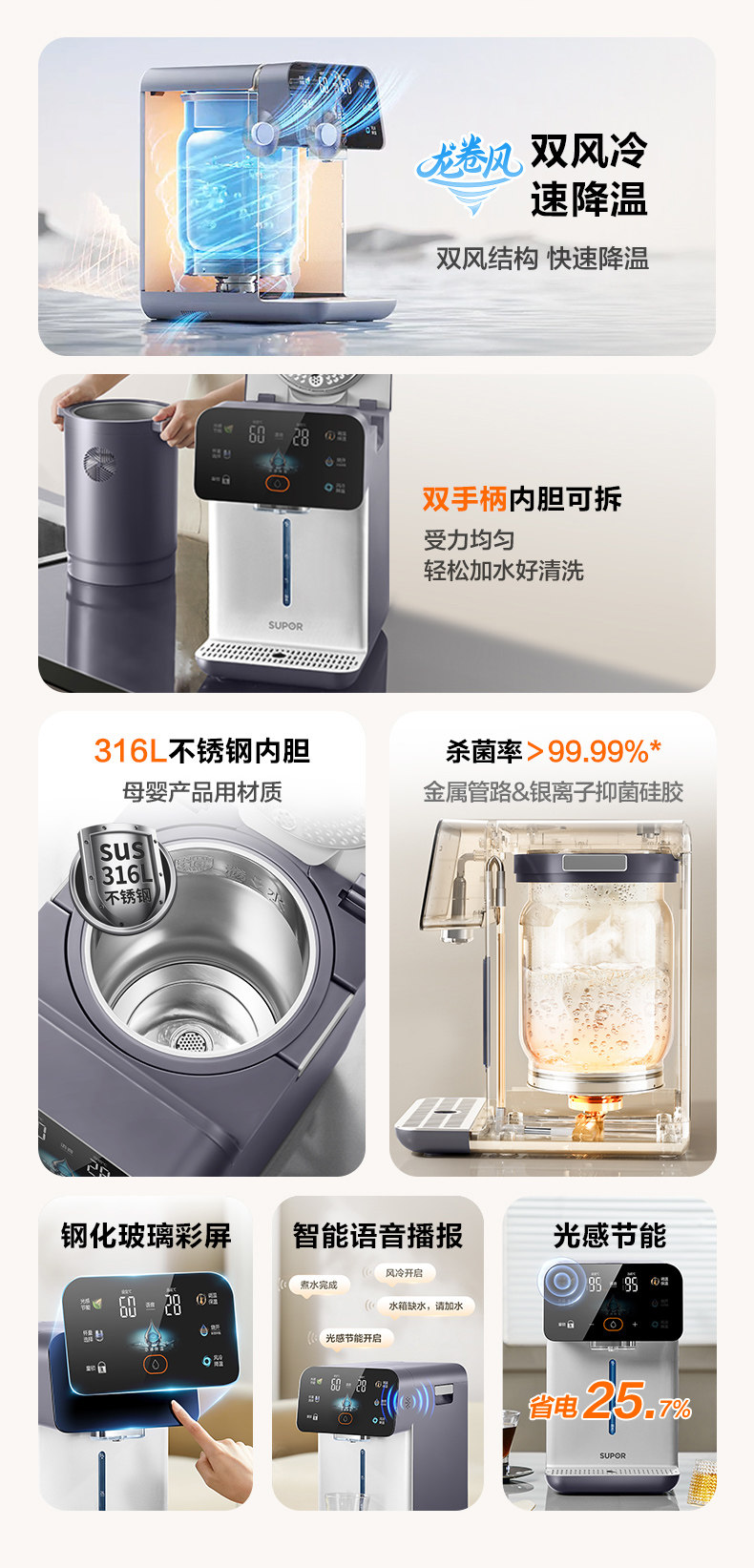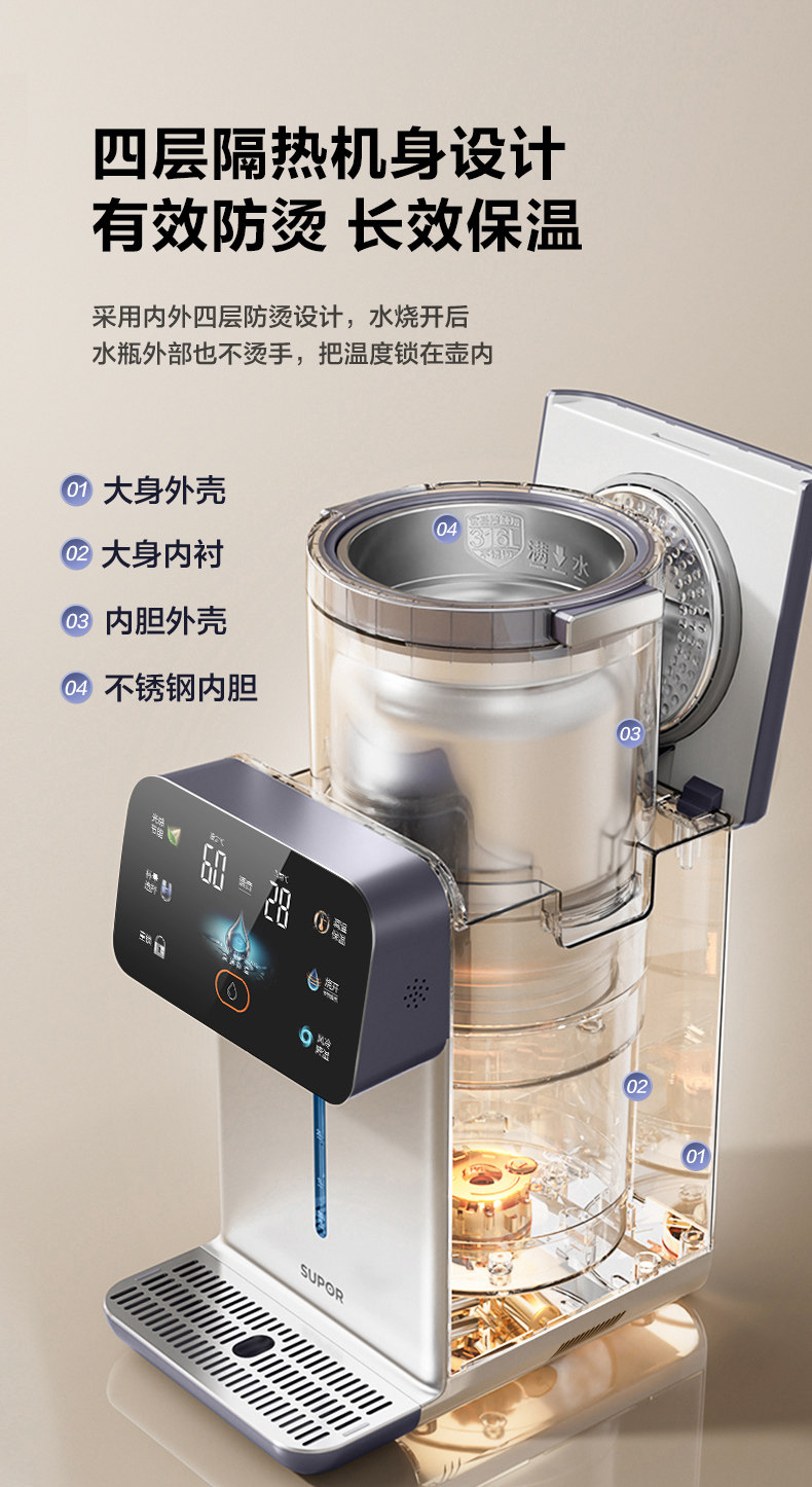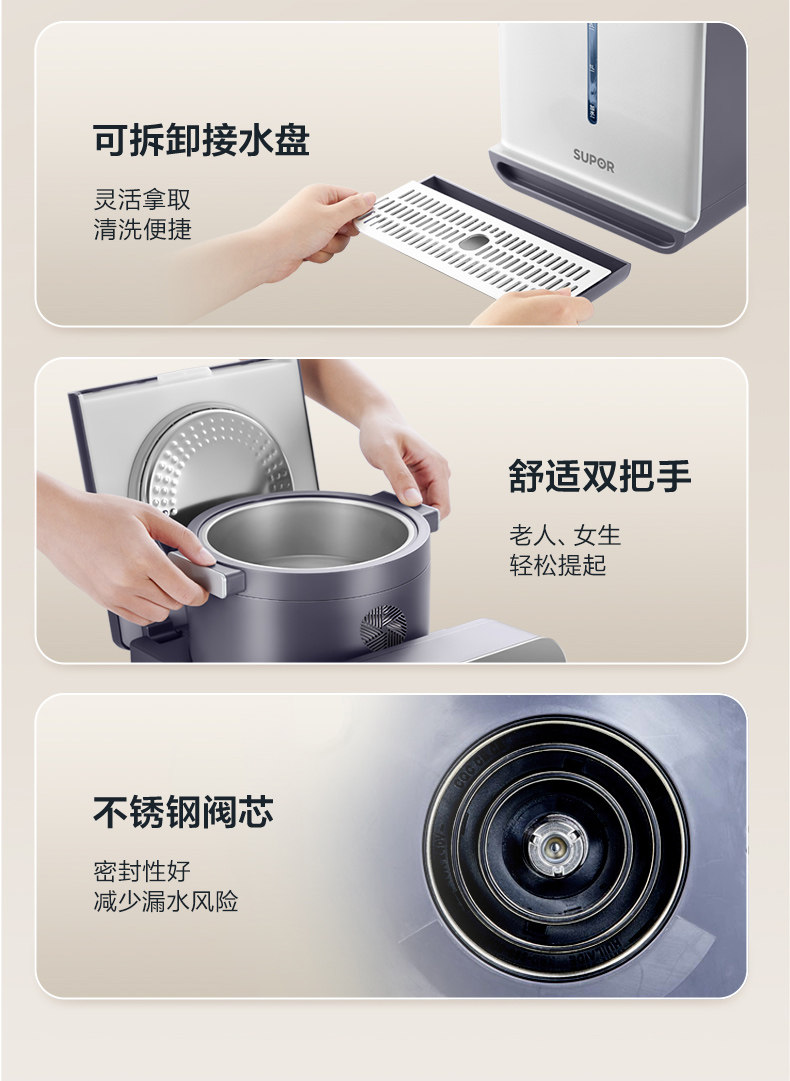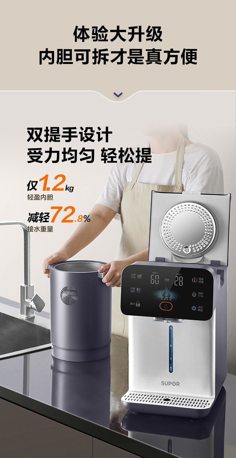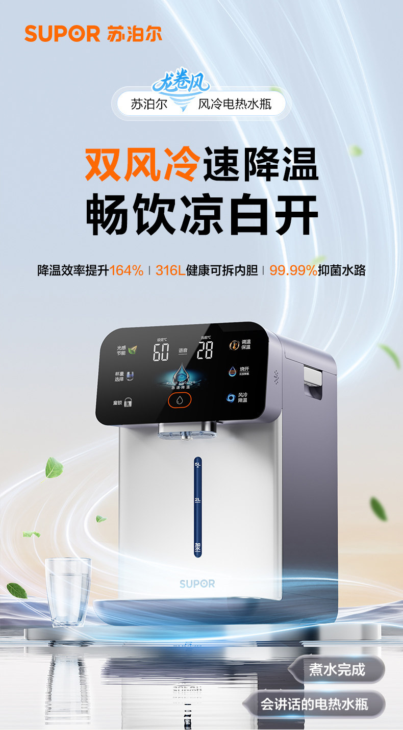 Supor Electric Hot Water Bottle with Air Cooling, Removable and Washable 316L Stainless Steel Inner Tank, Water Dispenser, Antibacterial Smart Electric Kettle