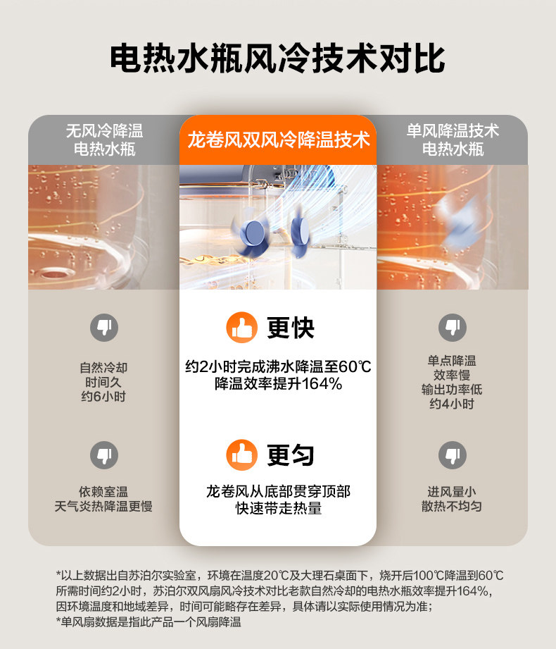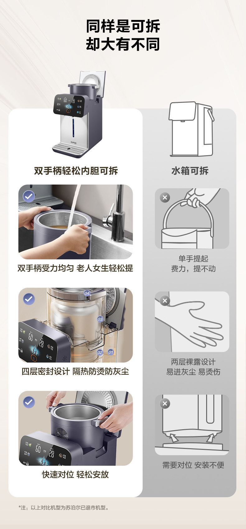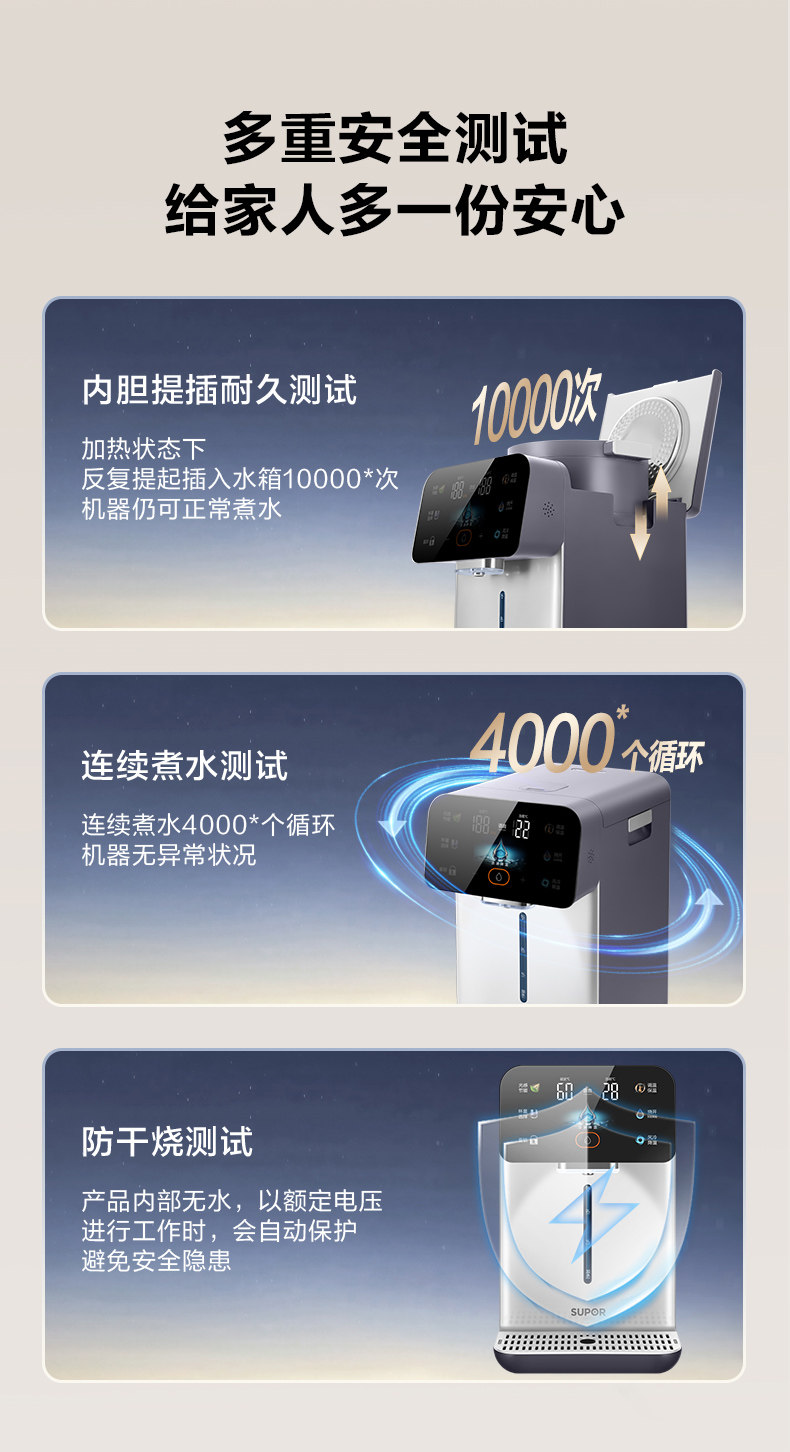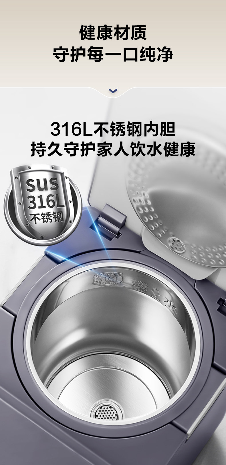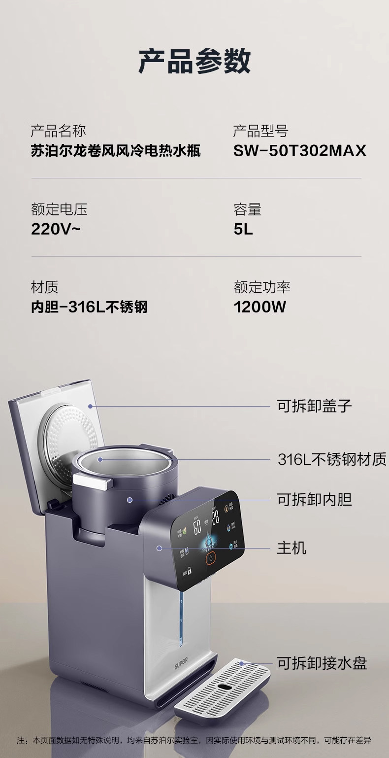 Supor Electric Hot Water Bottle with Air Cooling, Removable and Washable 316L Stainless Steel Inner Tank, Water Dispenser, Antibacterial Smart Electric Kettle