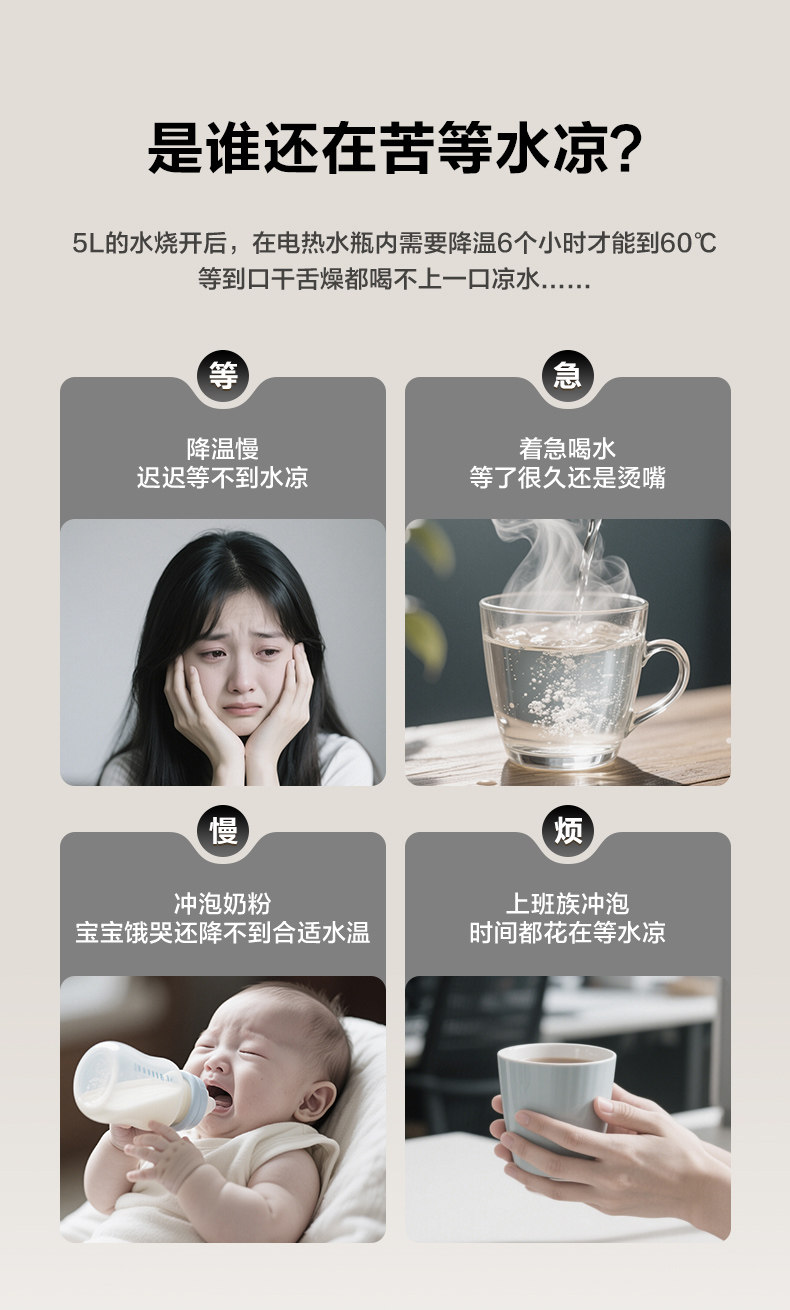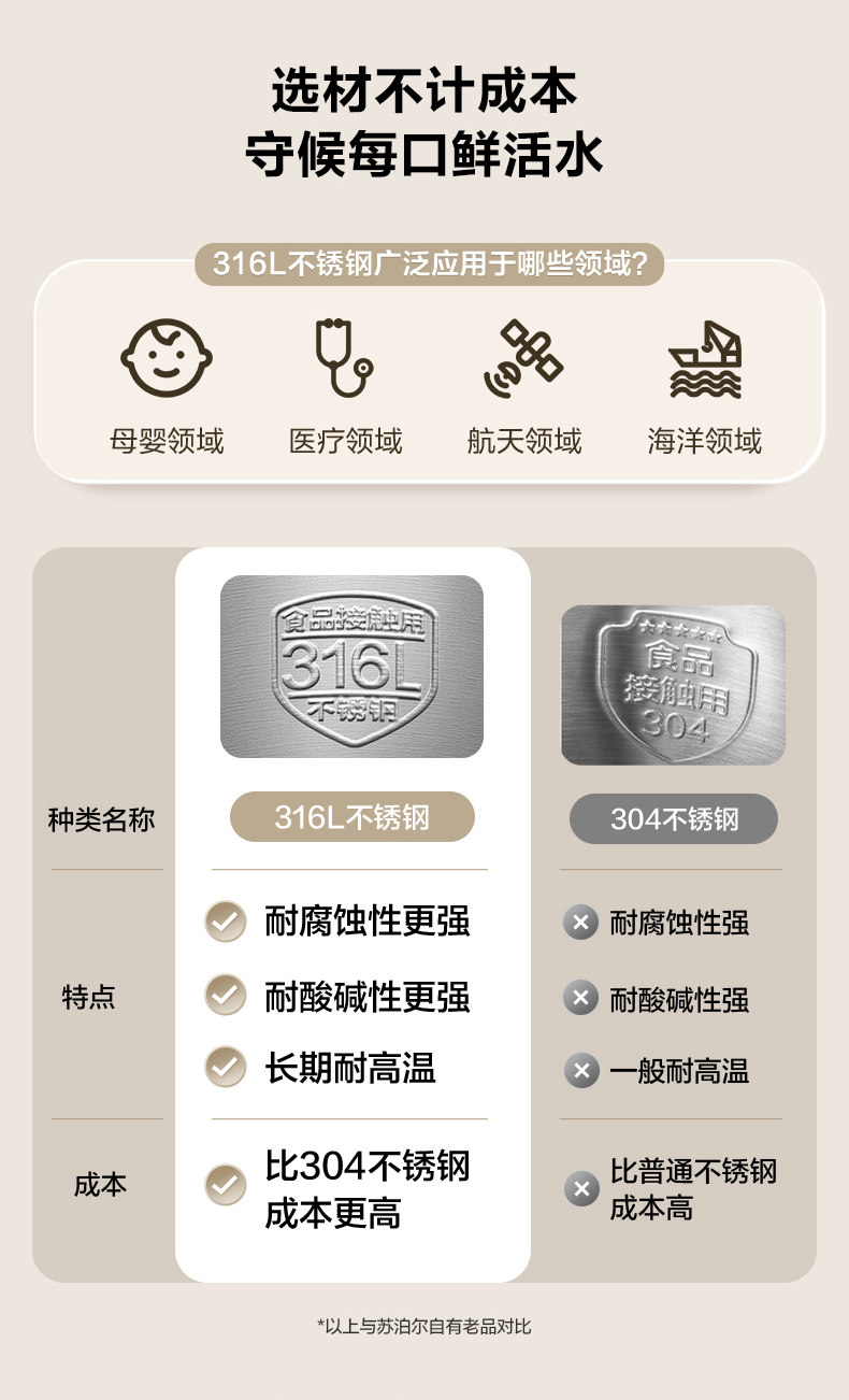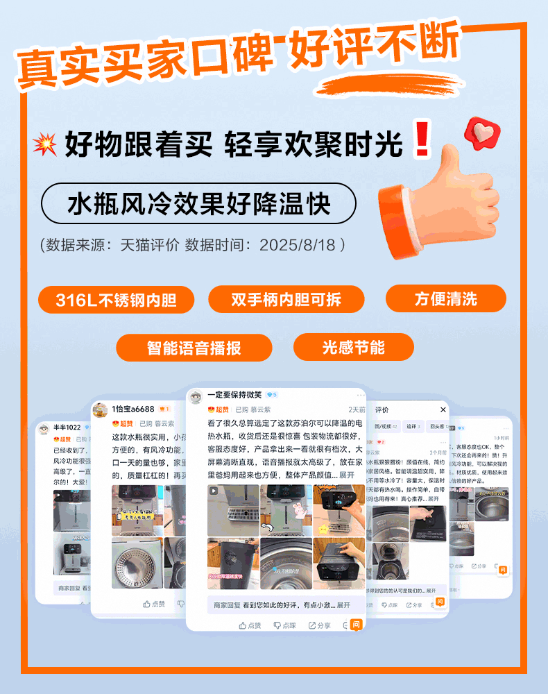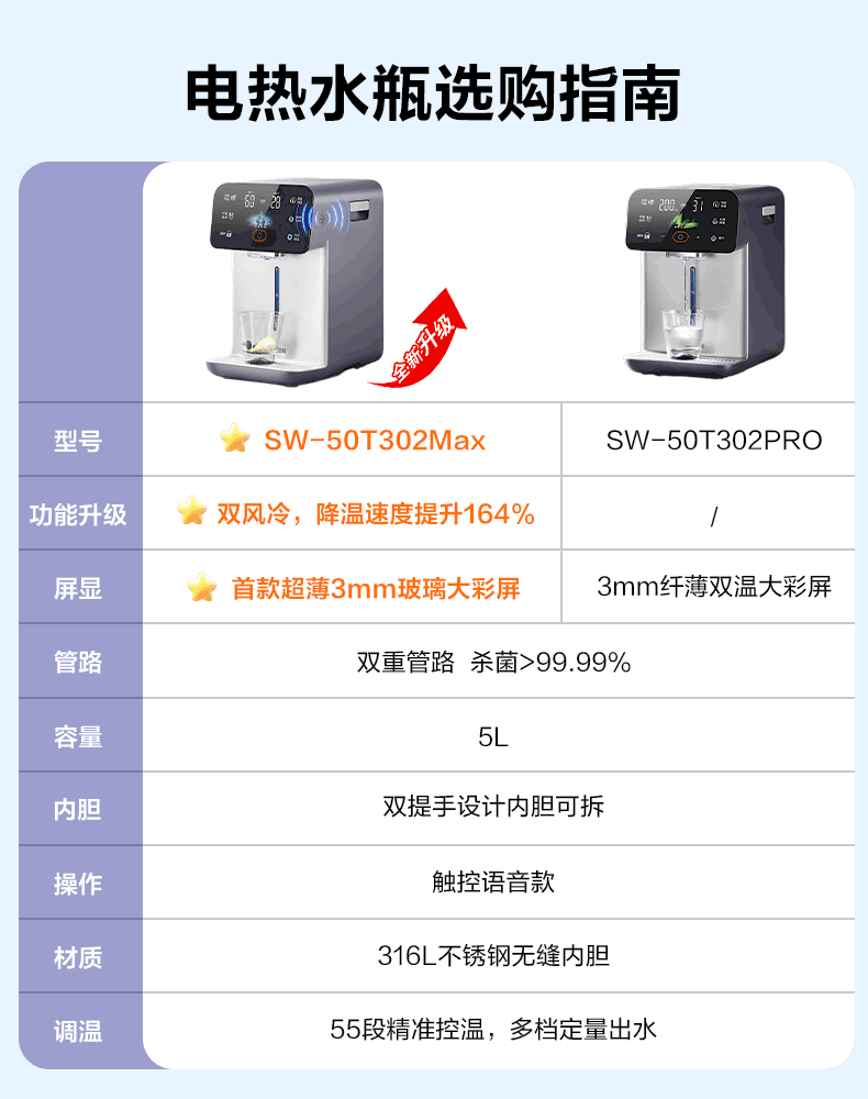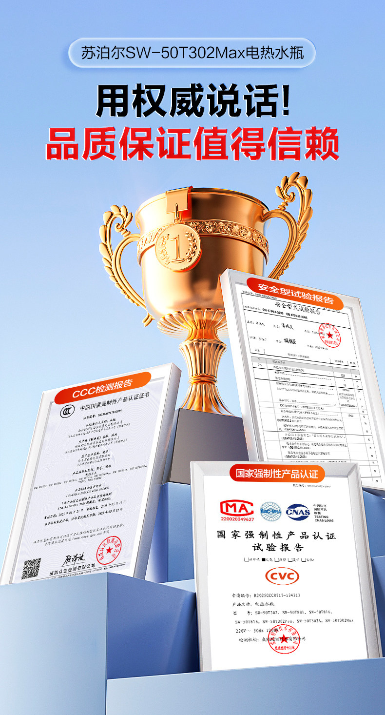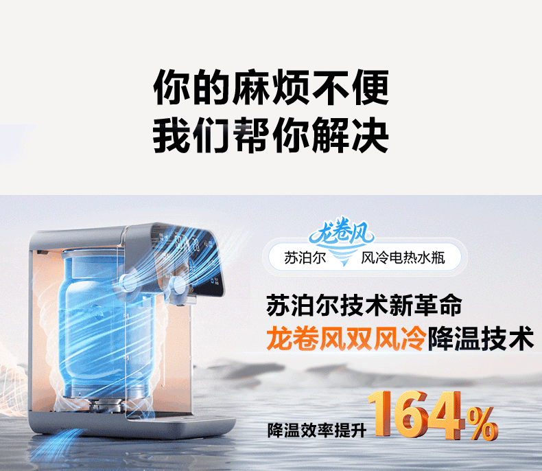 Supor Electric Hot Water Bottle with Air Cooling, Removable and Washable 316L Stainless Steel Inner Tank, Water Dispenser, Antibacterial Smart Electric Kettle