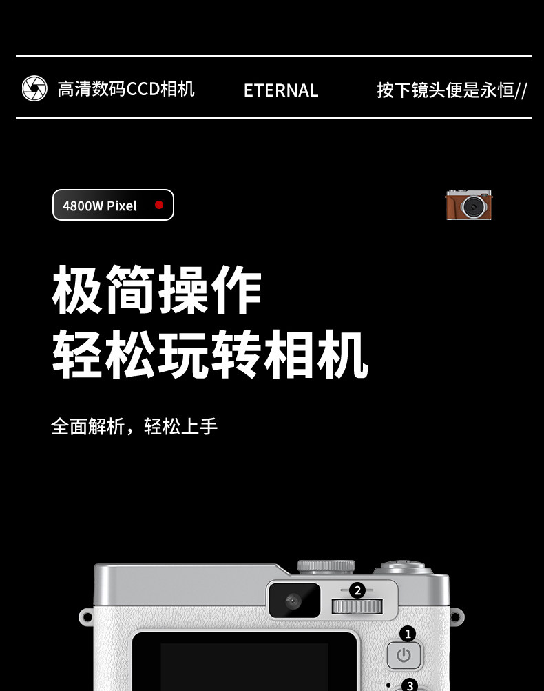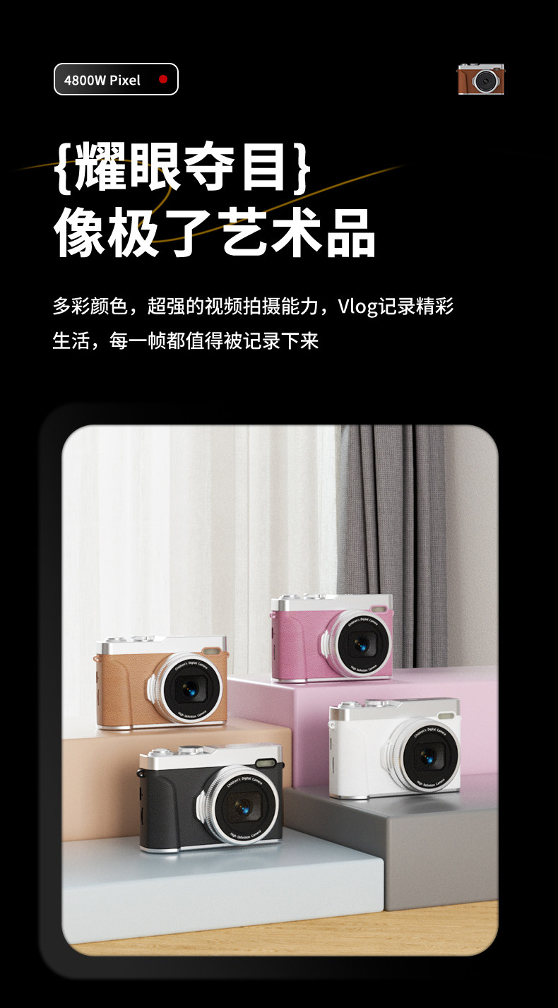High-Definition Pixel Ccd Digital Camera with Dual Cameras for Selfies, Travel, Student Campus, Retro Portable Card Camera
