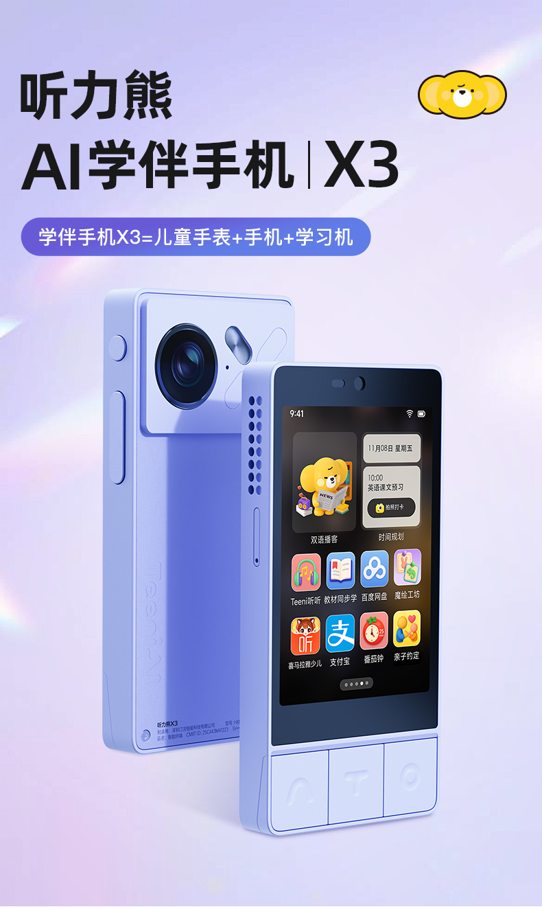 Hearing Bear X3 Learning Companion Mobile Phone for Teenagers, Learning Phone That Can Make Calls and Locate Students, Parental Control for Internet Addiction, Special Ai Smart Learning Companion Phone for Middle and High School Students