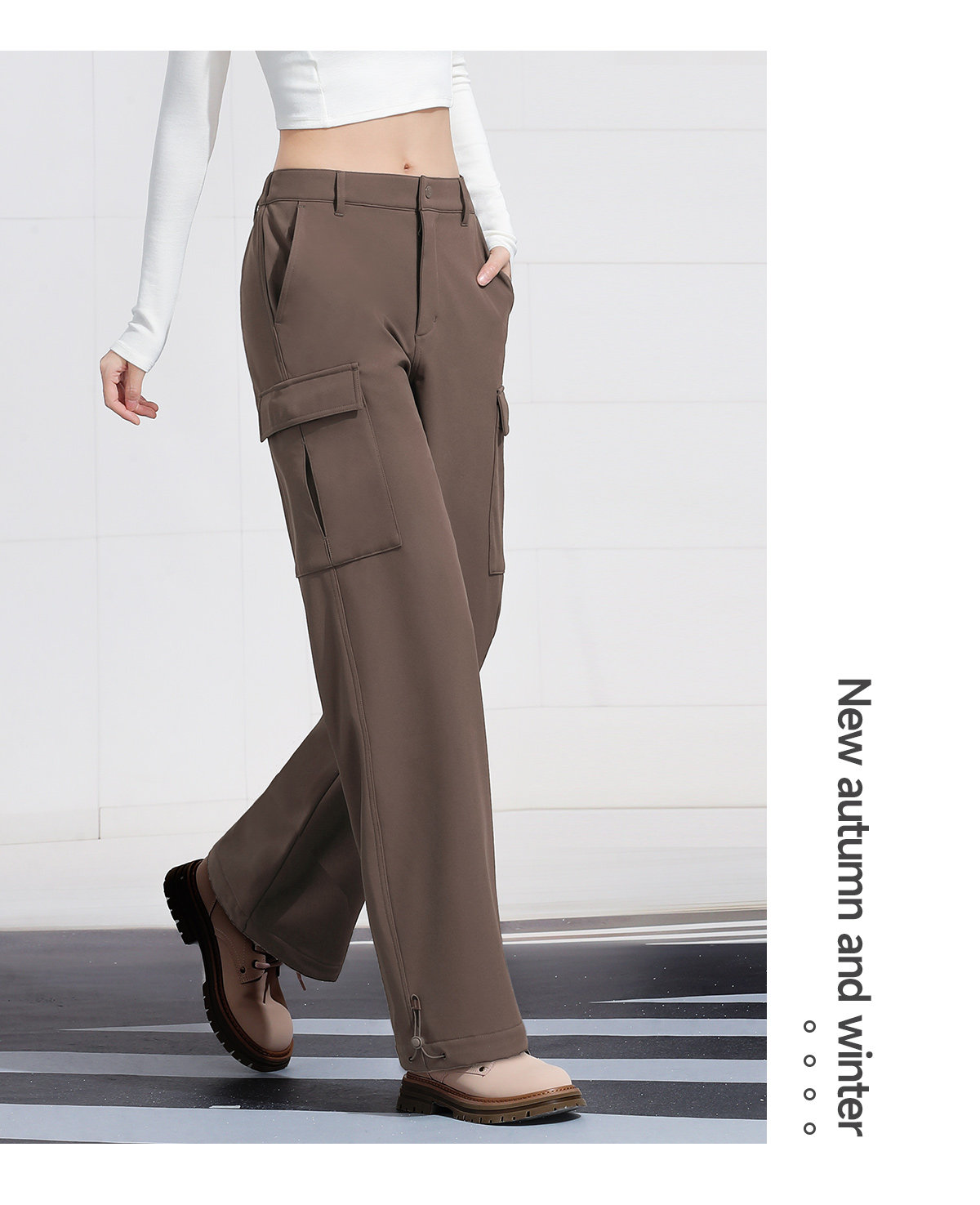 Camel Work Pants for Men and Women, Autumn and Winter Water-Repellent Casual Pants, Outdoor Hiking Sports Pants, Windproof White Long Pants