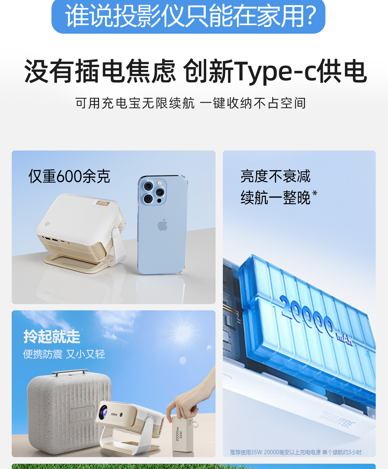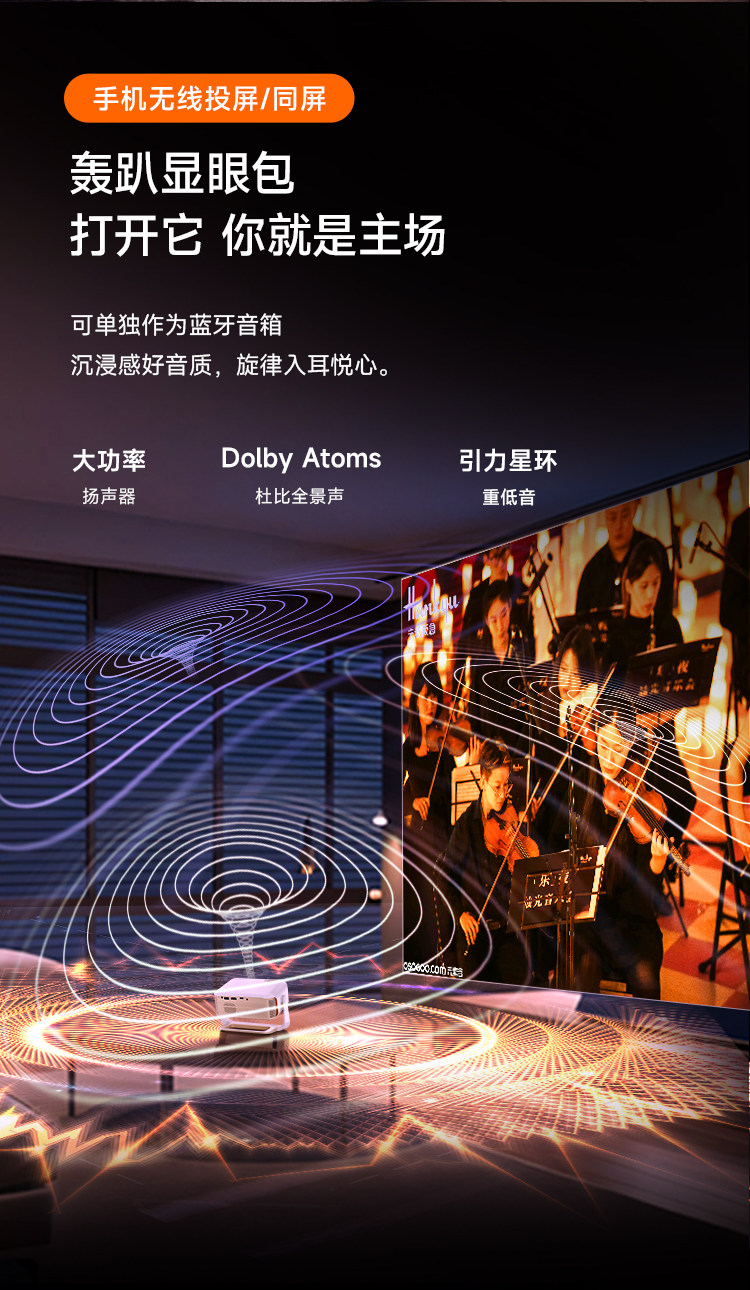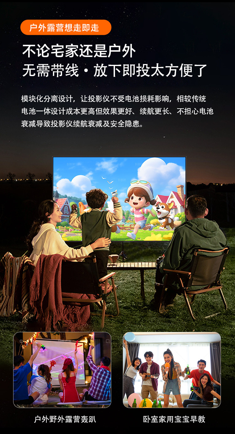New Outdoor Camping Projector for Home Use, 1080P Ultra-Clear, Rechargeable, Portable, Small Bedroom Mini Projector, Dormitory Wall Projection, Car-Mounted Projector Screen All-In-One Machine, Wireless Projection, Mobile Gaming Console