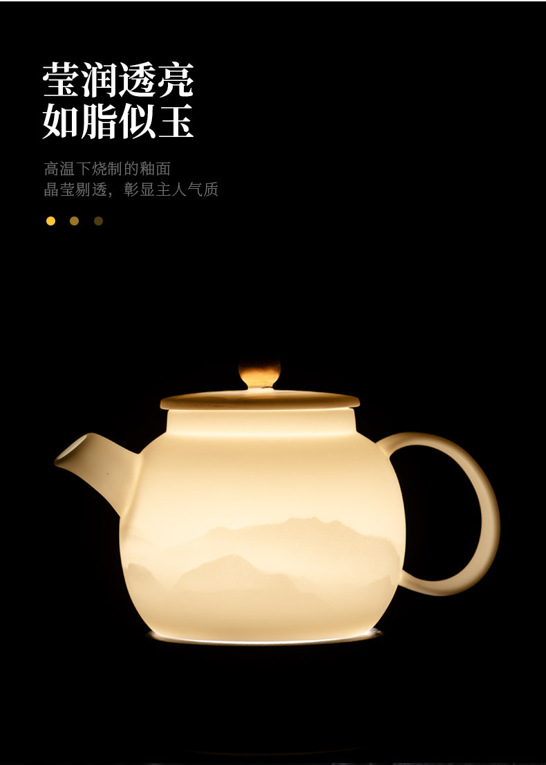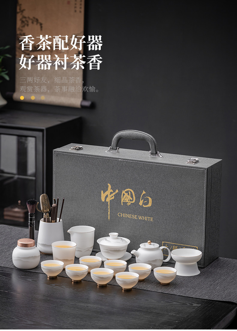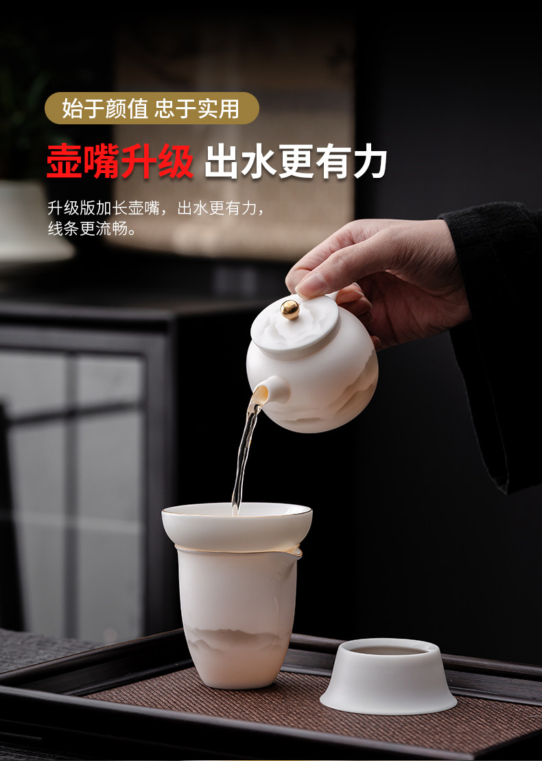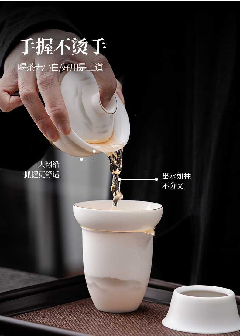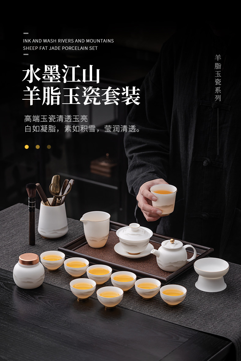 High-End Jade Porcelain Kung Fu Tea Set for Home Use, Gold-Painted Teapot and Gaiwan, Mountain Plain-Fired Ice Jade Gift Box Set