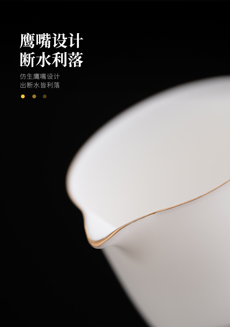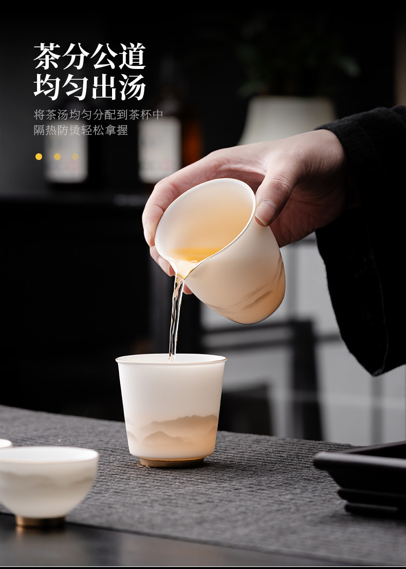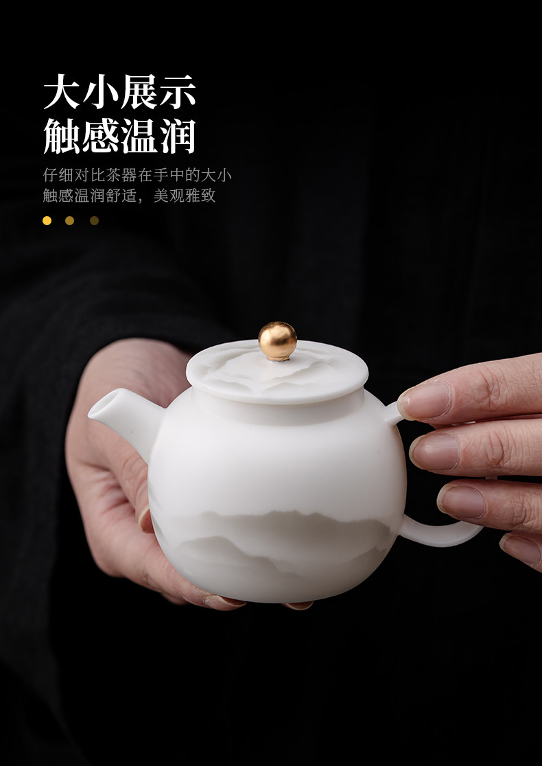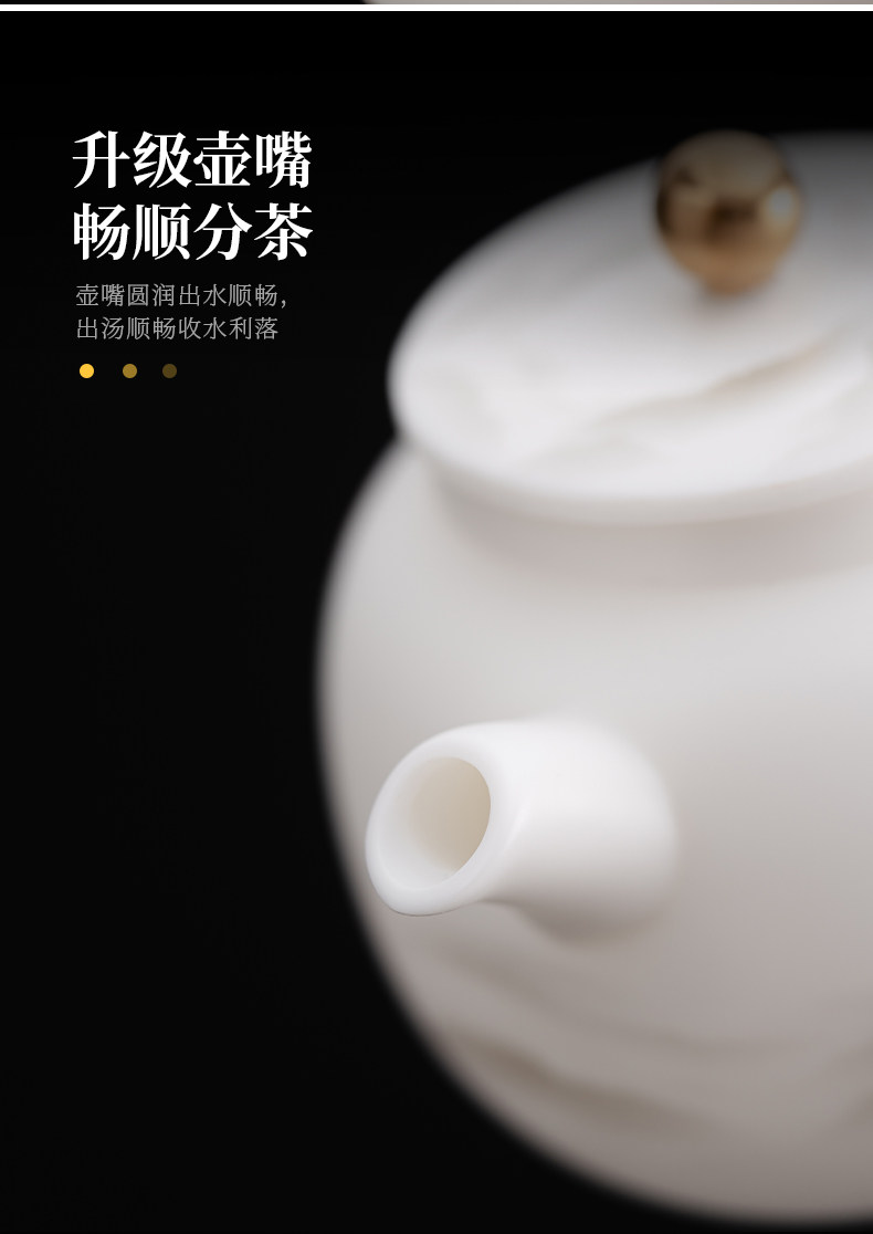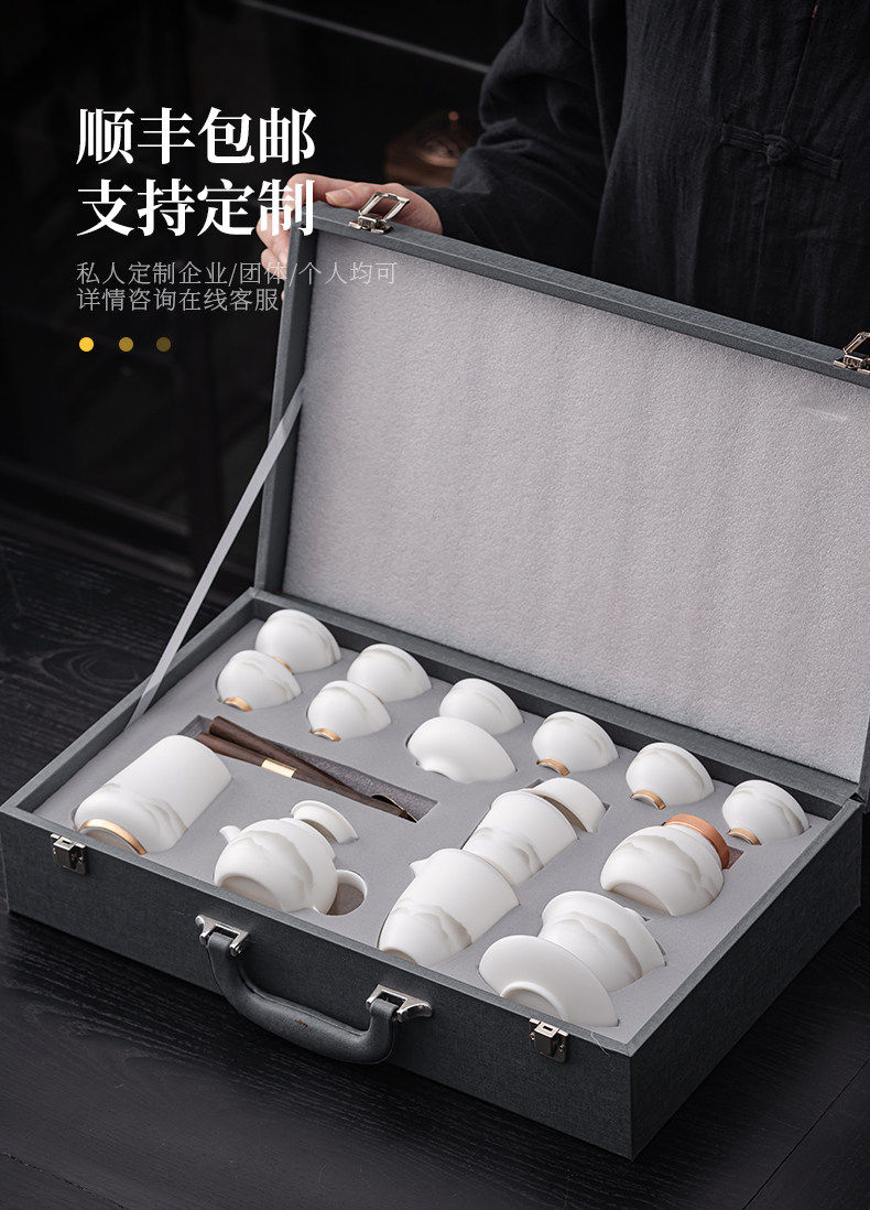 High-End Jade Porcelain Kung Fu Tea Set for Home Use, Gold-Painted Teapot and Gaiwan, Mountain Plain-Fired Ice Jade Gift Box Set