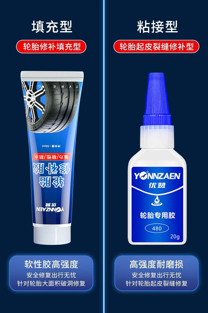| Color Classification | Tire Glue 50ml-1 Tube [Soft Wear-Resistant Filling Type],Tire Glue 20g-1 Stick [Quick-Drying and Wear-Resistant Bonding Type] |