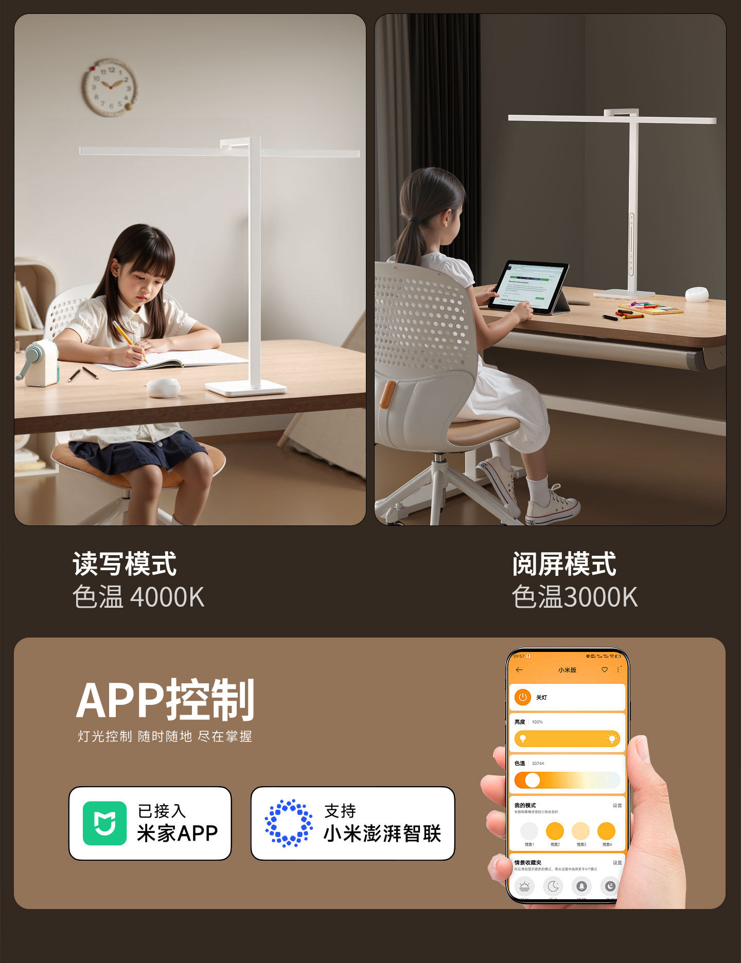 Desk Lamp for Eye Protection, Specially Designed for Studying and Preventing Myopia, Suitable for Children Doing Homework, Has Been Integrated with the Mijia App Smart Small Lamp