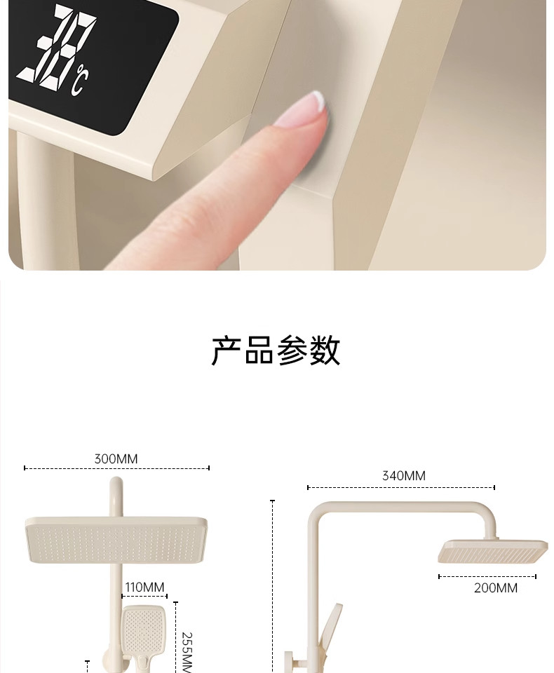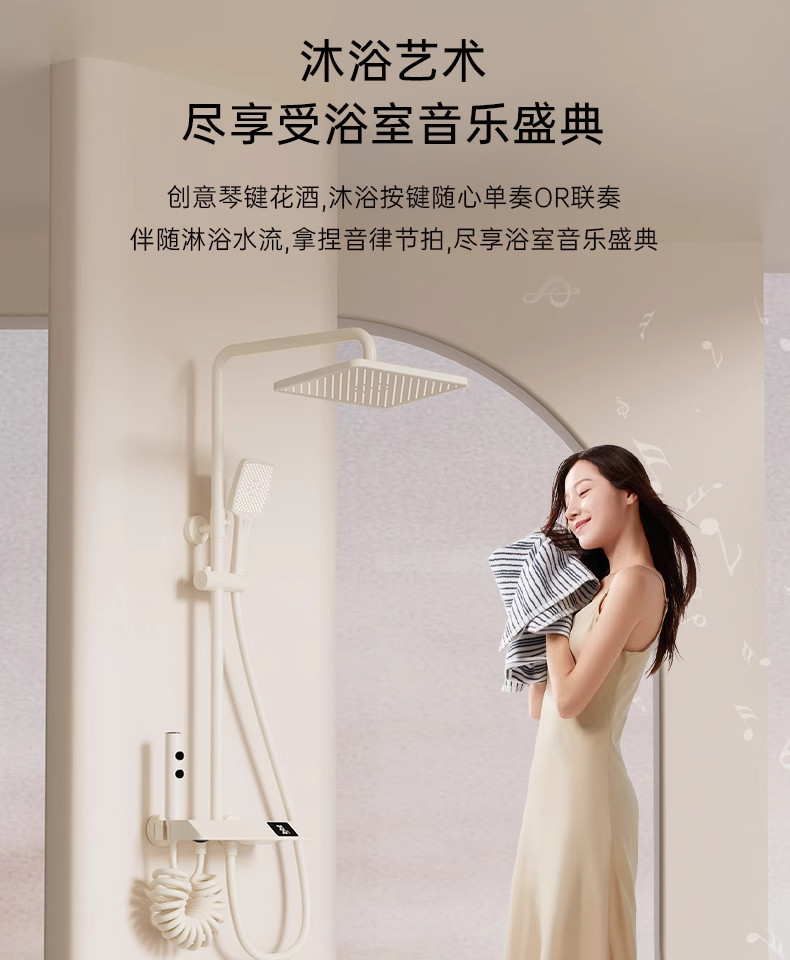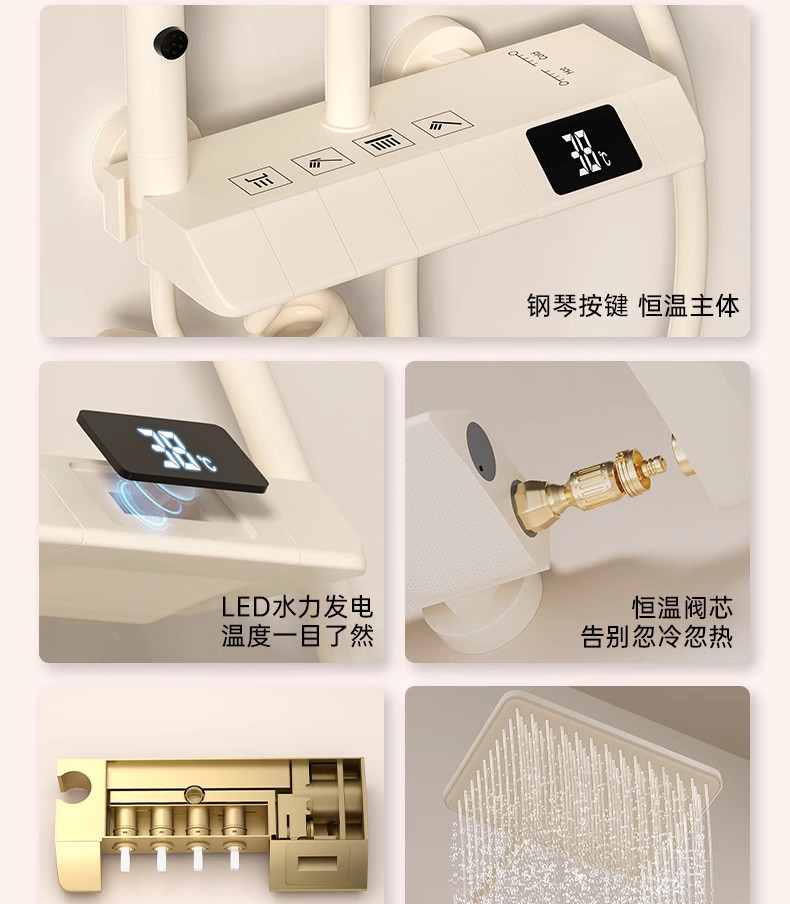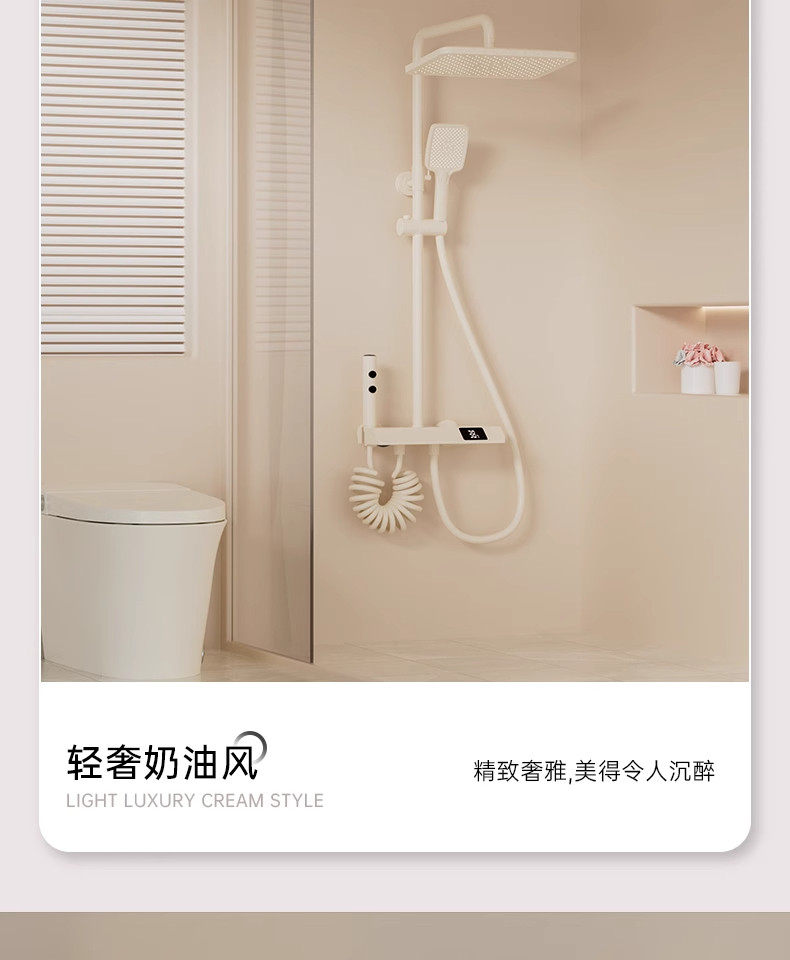 Cream-Colored Thermostatic Shower Set for Bathroom, Home Use, Piano Key Shower Head