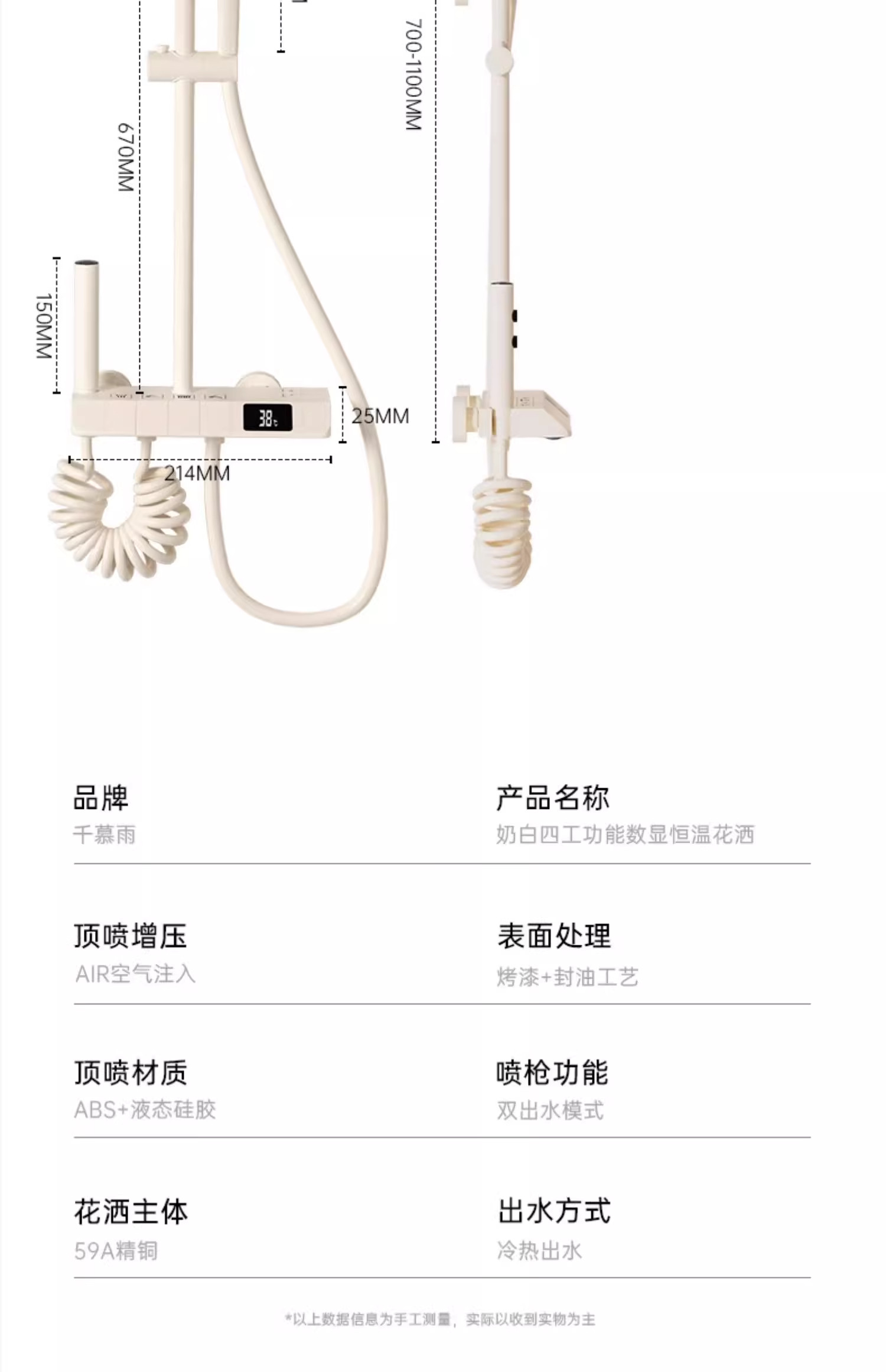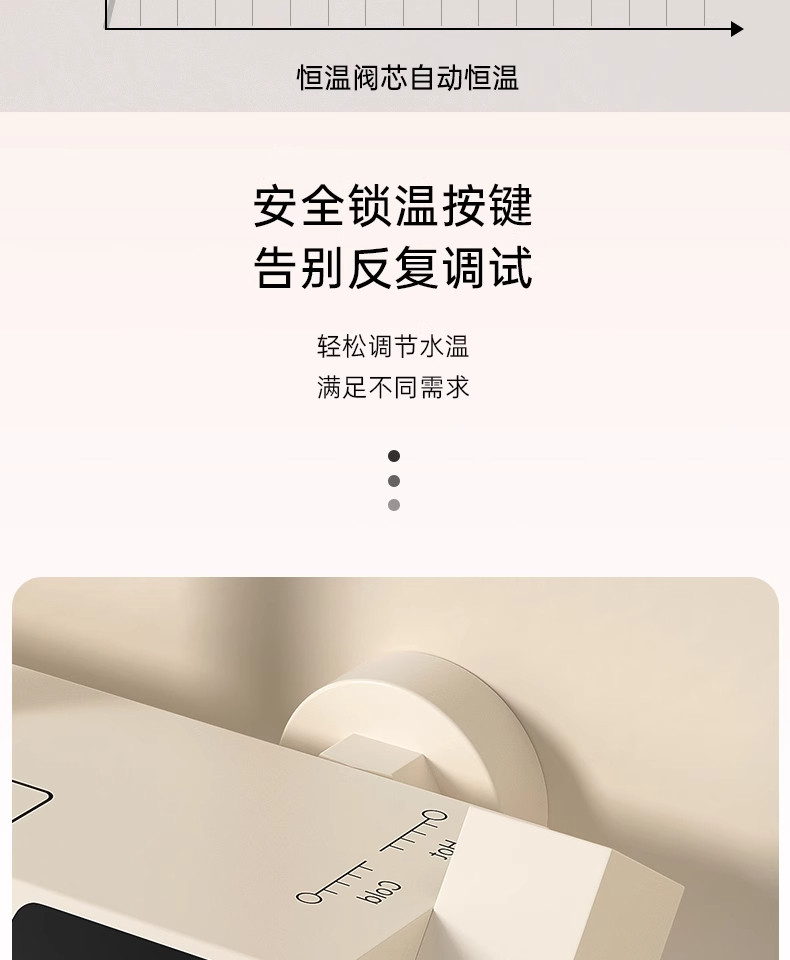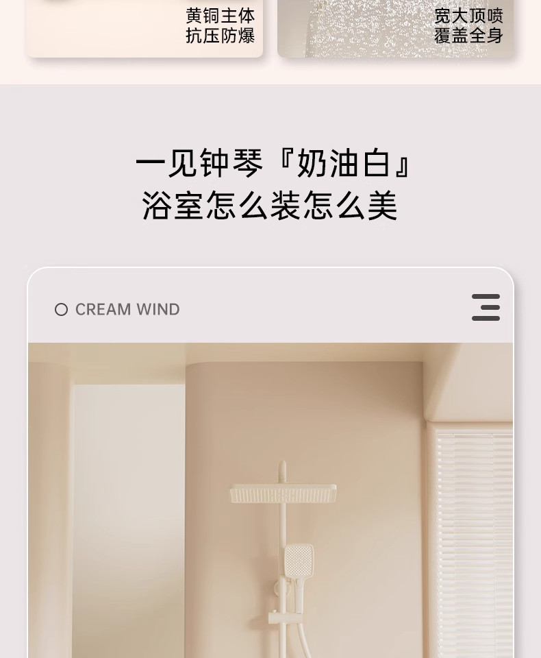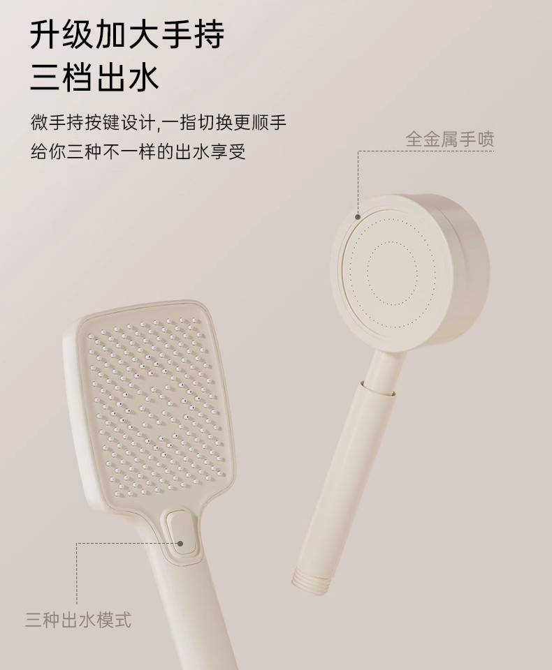 Cream-Colored Thermostatic Shower Set for Bathroom, Home Use, Piano Key Shower Head