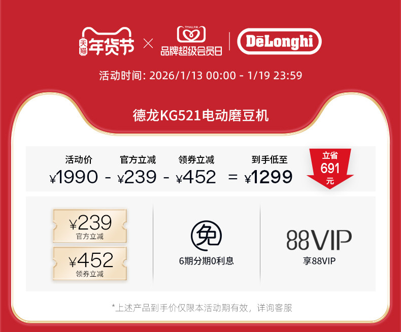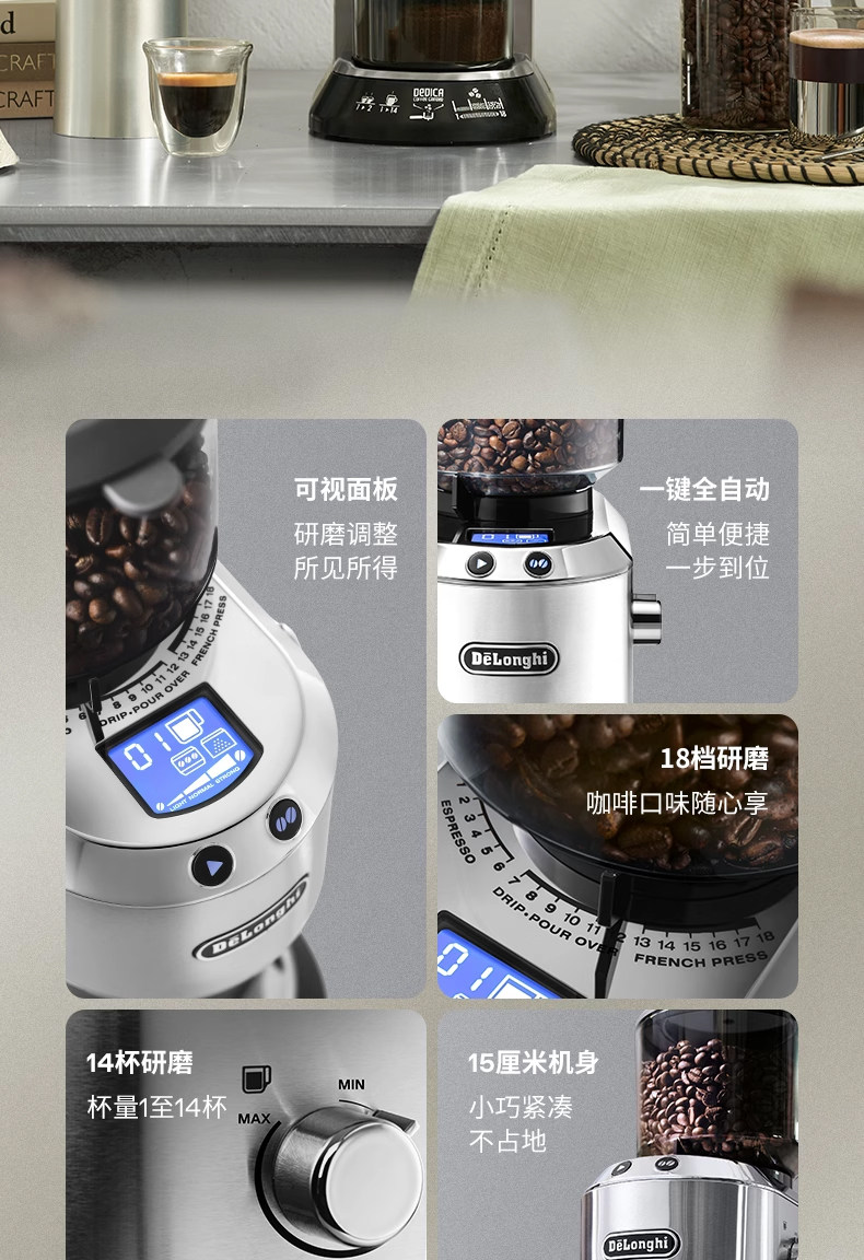 Delonghi Kg521 Household Electric Coffee Grinder Coffee Bean Grinder for Grinding Coffee Powder