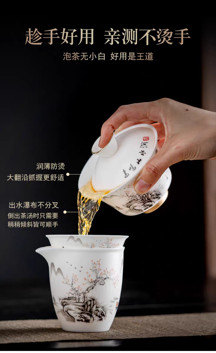 Jingdezhen Unglazed Jade Porcelain Tea Set for Home Use, Light Luxury, High-End Hand-Painted Gold-Plated Teapot and Bowl for Gift Giving