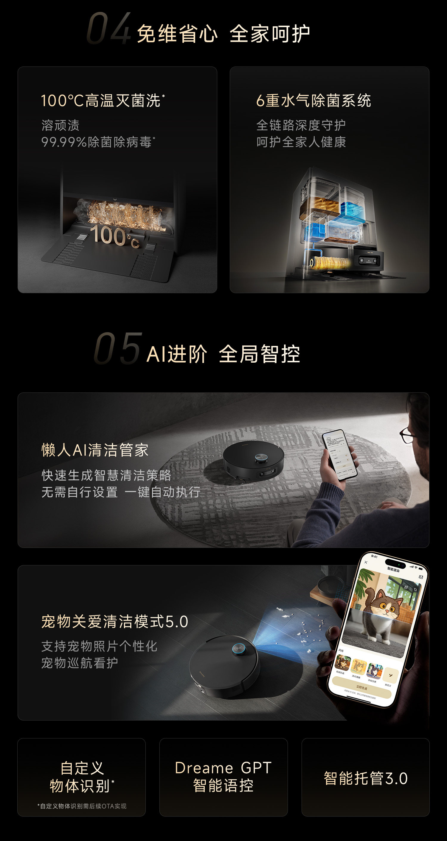 | Additional Features | Carpet Identification,Spot Cleaning,Disinfection,Sterilization,Carpet Cleaning Plan,Automatic Cleaning,Drying,Remote Control,Appointment,Continue Scanning after Power Failure,Mop Type,App Control,Voice Control,Area Cleaning,Yanbian Cleaning,Dust Identification,Real-Time Video Interaction,Prevent Hair from Tangling |