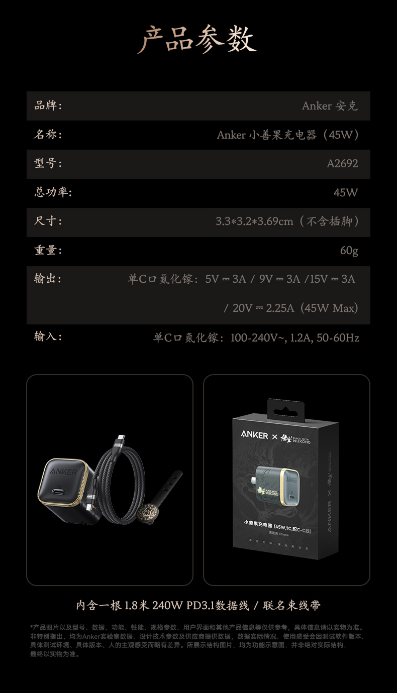| Color Classification | ăBlack Myth CollaborationăBlack Myth Wukong Collaboration 45W Charger,ă5 Major PerksăAnker Xiaoshanguo Chargerâ Applicable to Apple/Android/Huawei,[45W Worry-Free Charging Pro] Orange Goldâ Iphone17 Full Blood Fast Charging,[45W Worry-Free Charging Pro] New Machine Whiteâ Iphone17 Full Blood Fast Charging,[45W Worry-Free Charging Pro] New Machine Blackâ Iphone17 Full Blood Fast Charging,[45W Worry-Free Charging Pro] New Machine Blue â Iphone17 Full Blood Fast Charging,. |