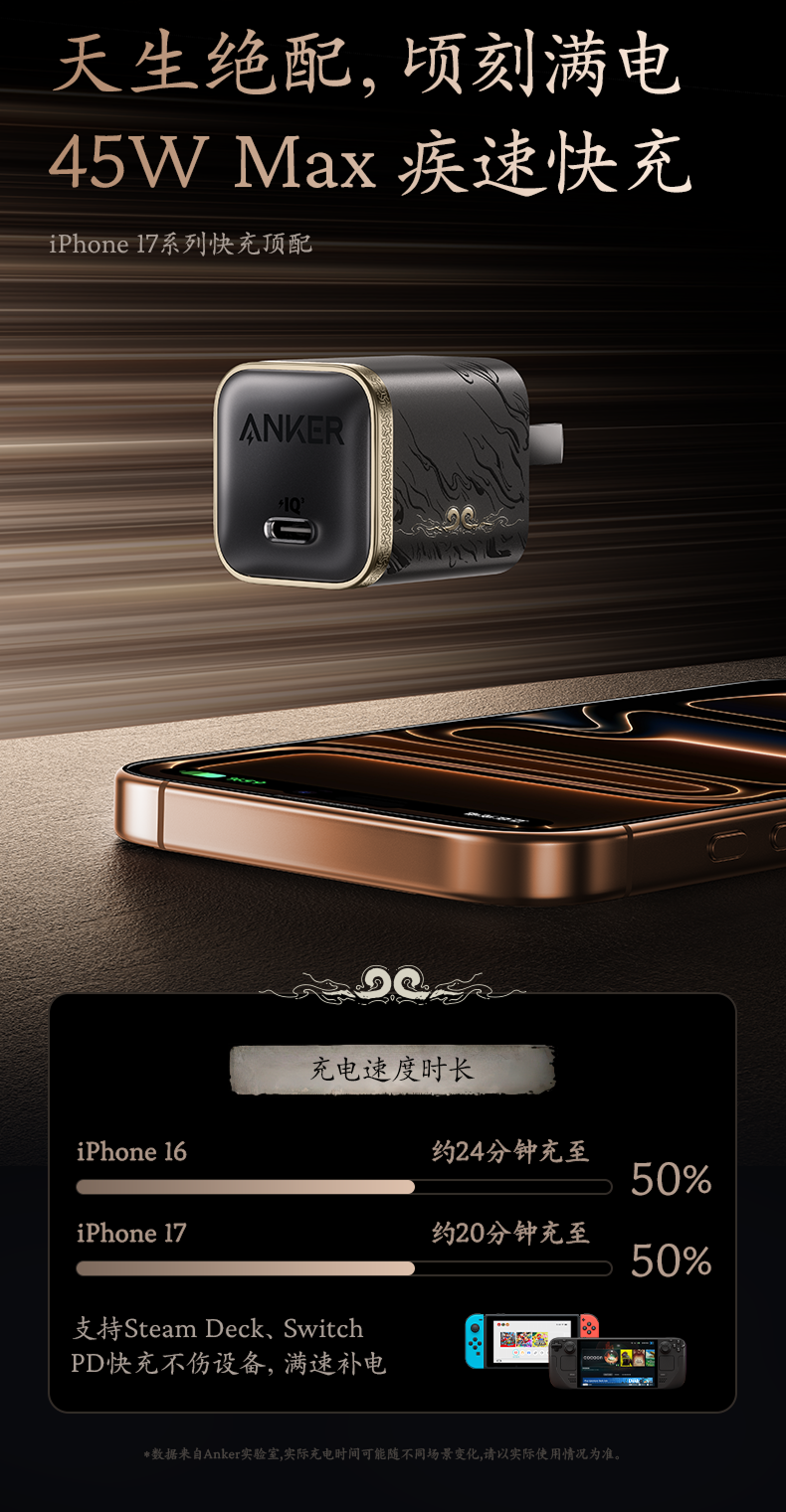 [Same Model as Hu Yanbin] Anker 45W Xiaoshanguo Charger Suitable for Apple 17Promax, Safe Charging iPhone 16 Charger, Gallium Nitride [Anker Black Myth Wukong Collaboration]