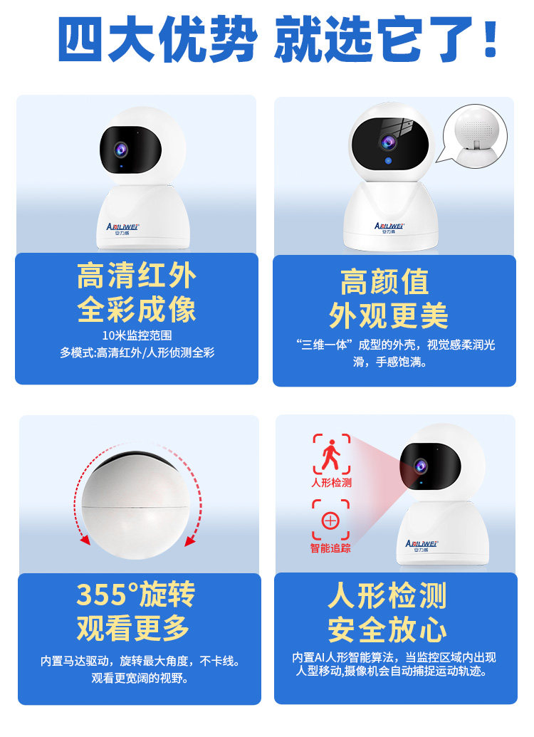 | Color Classification | [Ultra-Clear Wifi-2.4G Single-Frequency Model] Mobile Phone Monitoring + Humanoid Tracking + Voice Intercom,[Ultra-Clear Wifi-2.4G Single-Frequency Model + Power Outage Monitoring] Mobile Phone Monitoring + Humanoid Tracking + Voice Intercom,[Ultra-Clear Wifi-5G Dual-Band Model] Mobile Phone Monitoring + Humanoid Tracking + Voice Intercom,[Ultra-Clear Wifi-5G Dual-Band Model + Power Outage Monitoring] Mobile Phone Monitoring + Humanoid Tracking + Voice Intercom,【Ultra Hd Wifi - Outdoor Ptz Camera】Mobile Monitoring + Humanoid Tracking + Two-Way Audio,[Ultra-Clear Wifi-Outdoor Ball Machine Model + Power Outage Battery Life] Mobile Phone Monitoring + Humanoid Tracking + Voice Intercom |