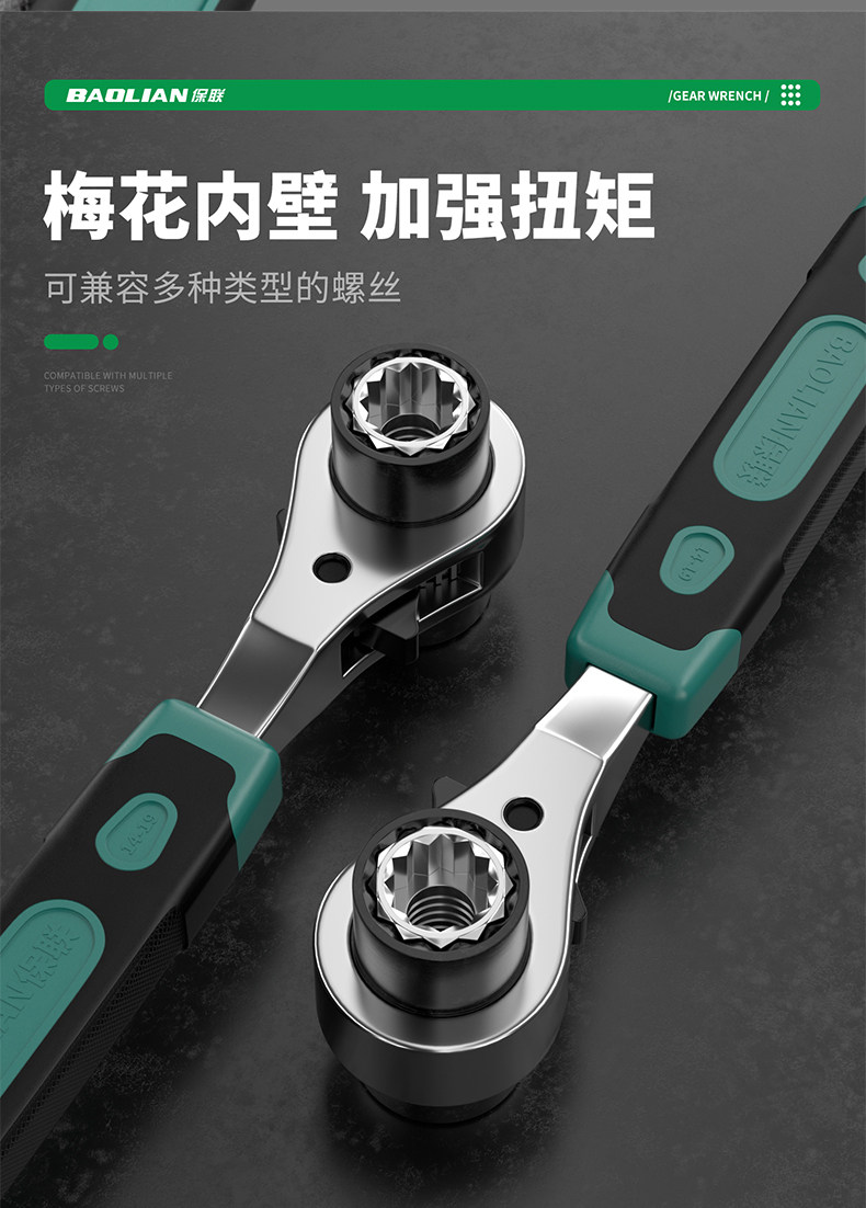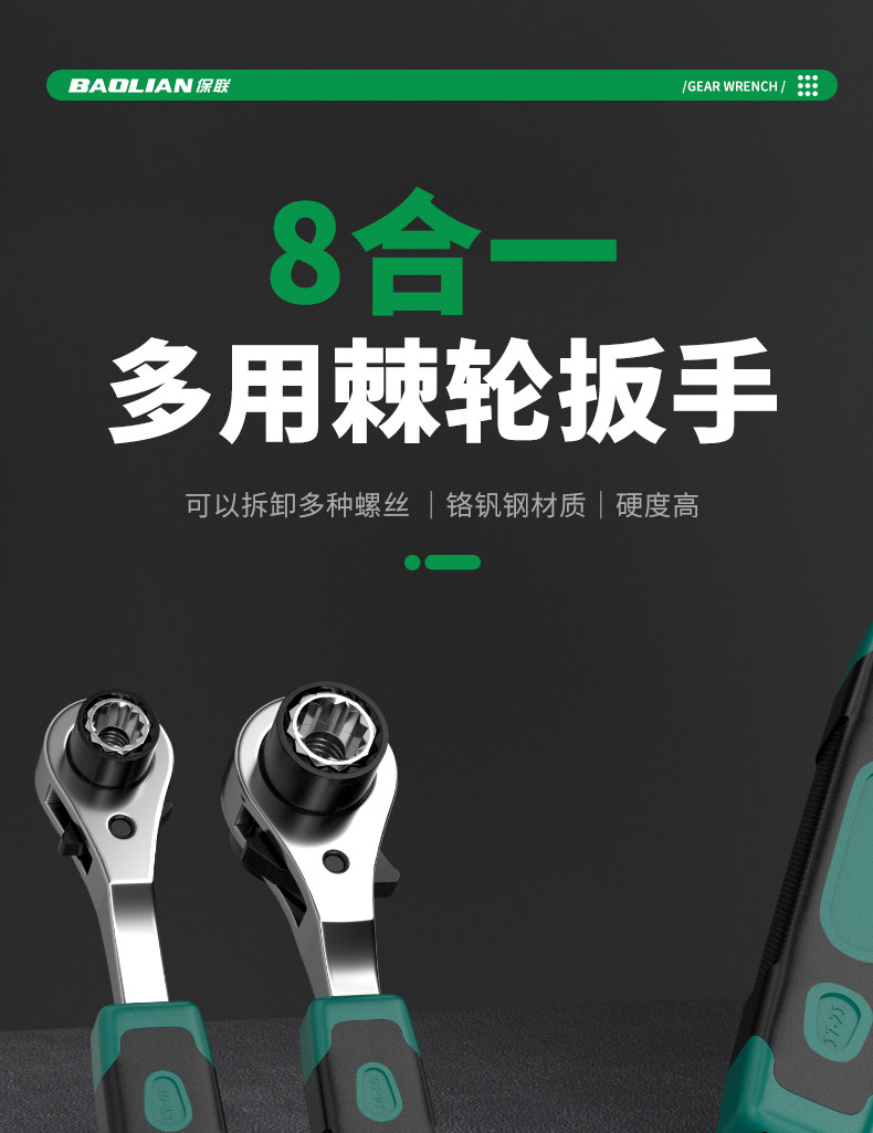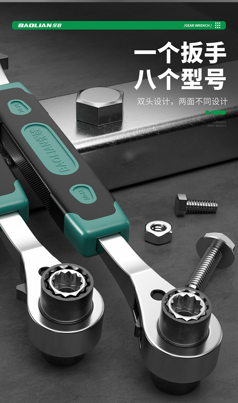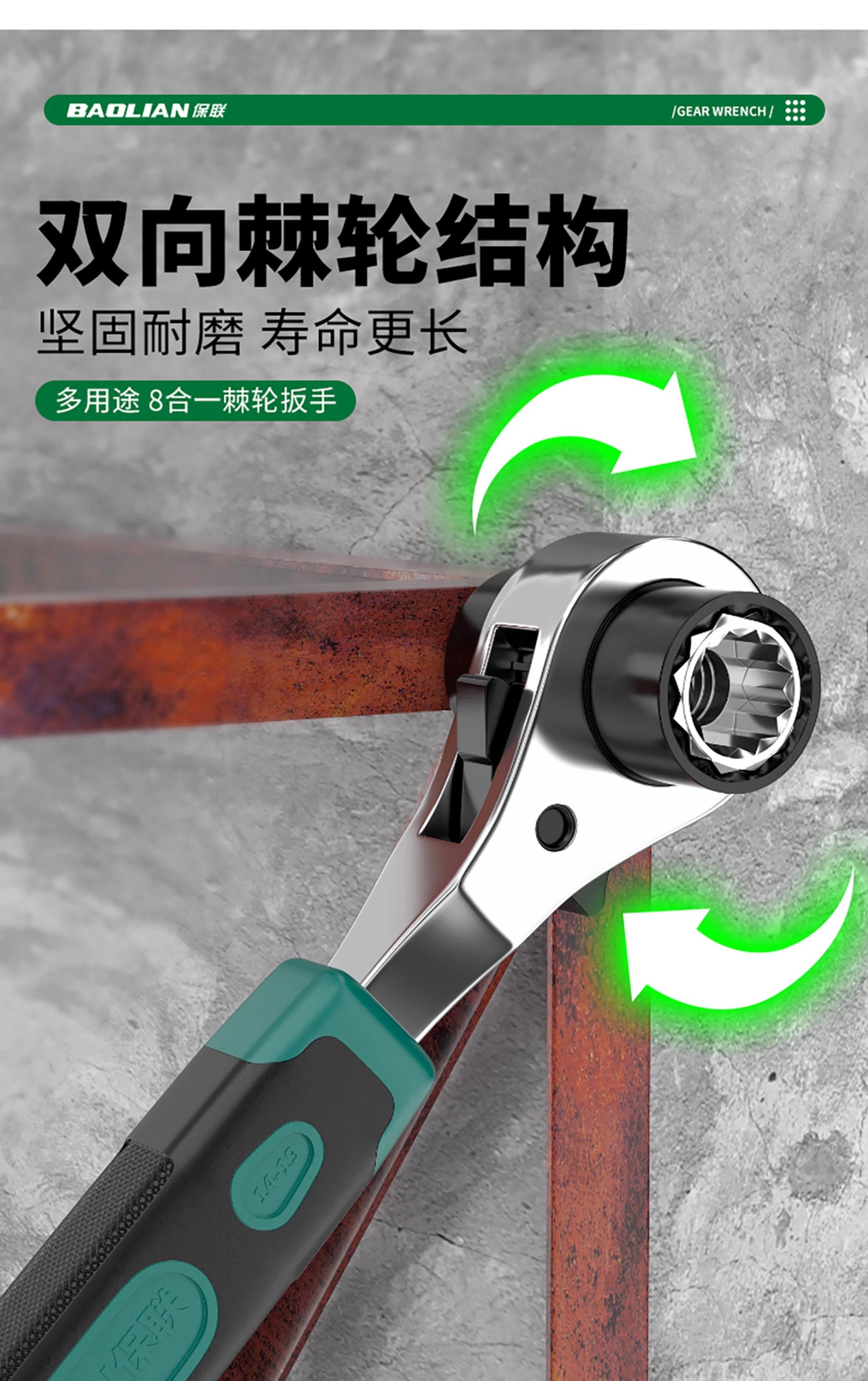 Baolian 8-in-1 Ratchet Wrench Set, Two-Way, Labor-Saving, Quick-Release, Universal Tool Set