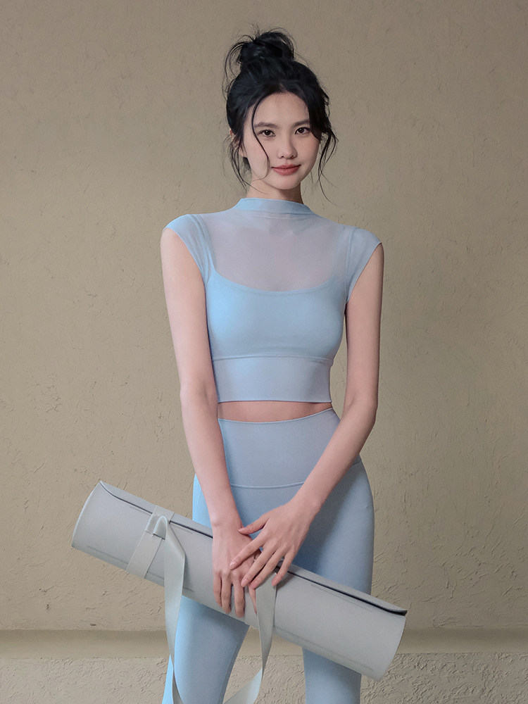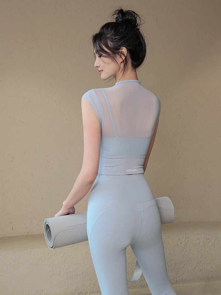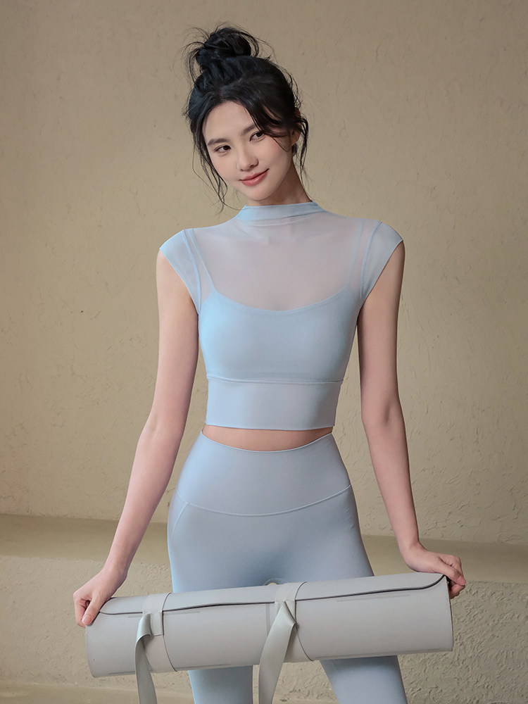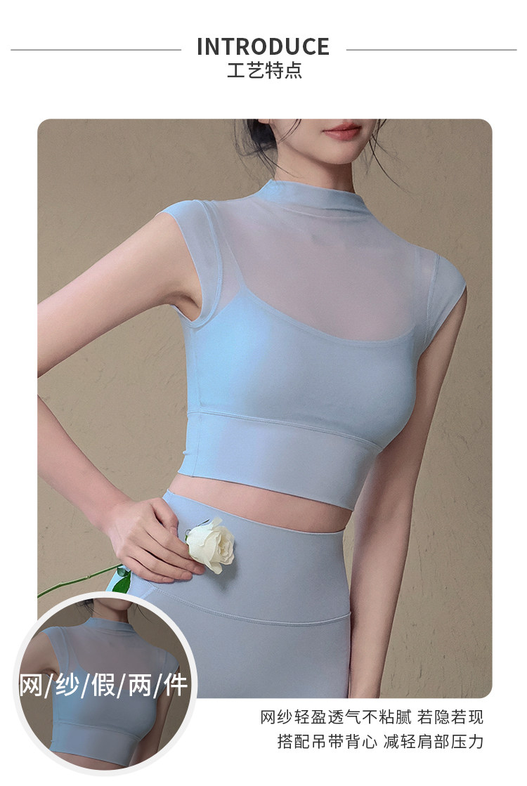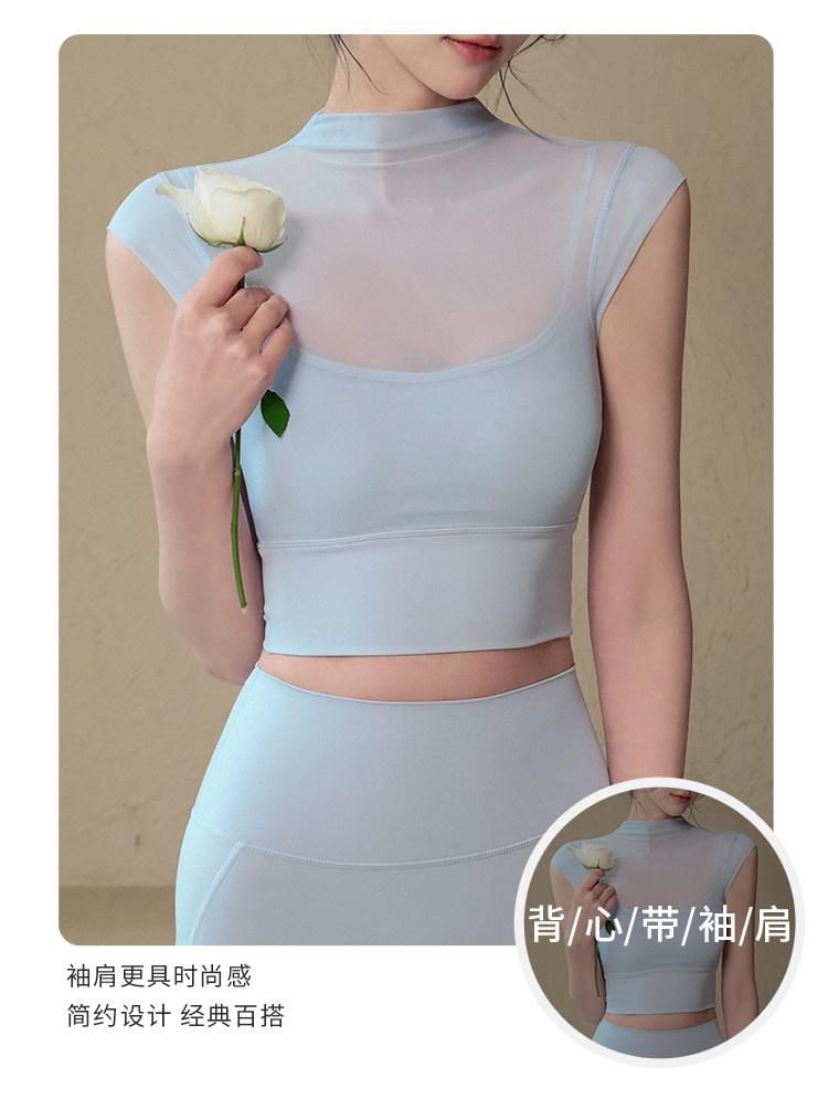 Yoga Clothing Set with Chest Pads for Women, Summer Pilates Training Fitness Top, Classy Sports Running Short-Sleeved T-Shirt
