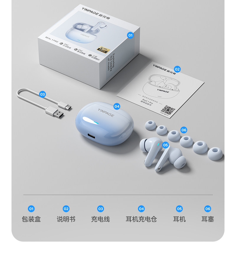 Yinbeiqi Real1Pro Bluetooth Headset Active Noise Reduction True Wireless In-Ear High-Quality 2026 New Model Genuine