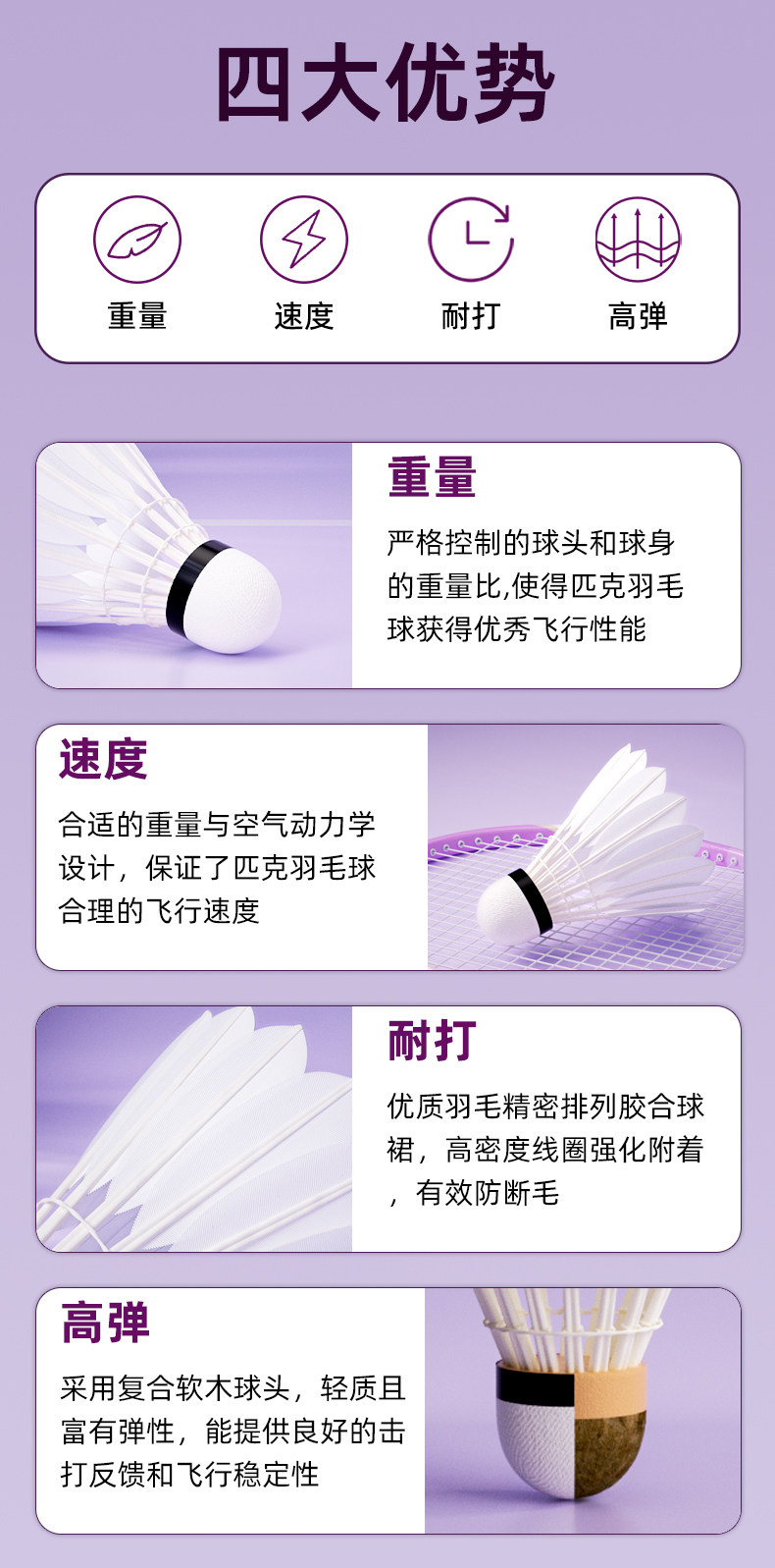 Peak Peak Badminton Shuttlecocks Are Durable and Not Easily Damaged, Suitable for Professional Training, Outdoor Use, Wind-Resistant, and Come in Packs of 6 or 12, Genuine Products