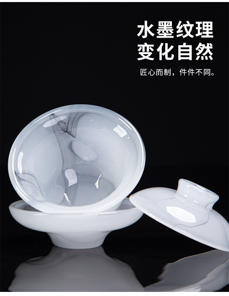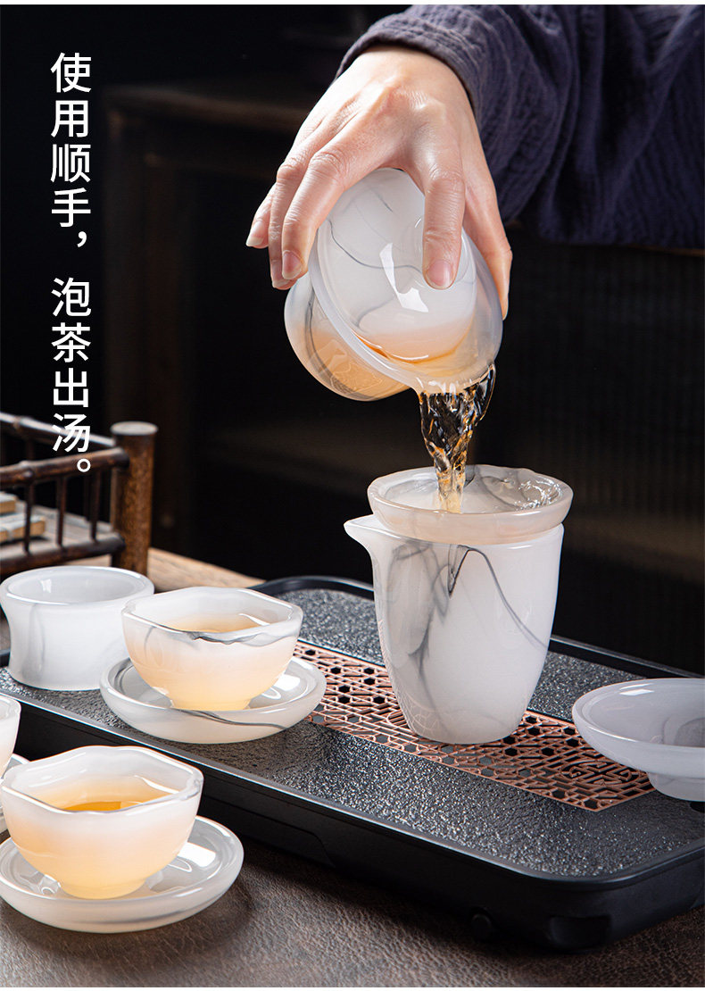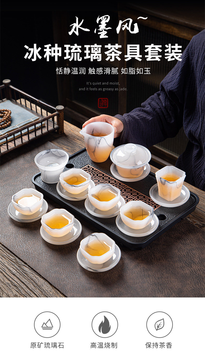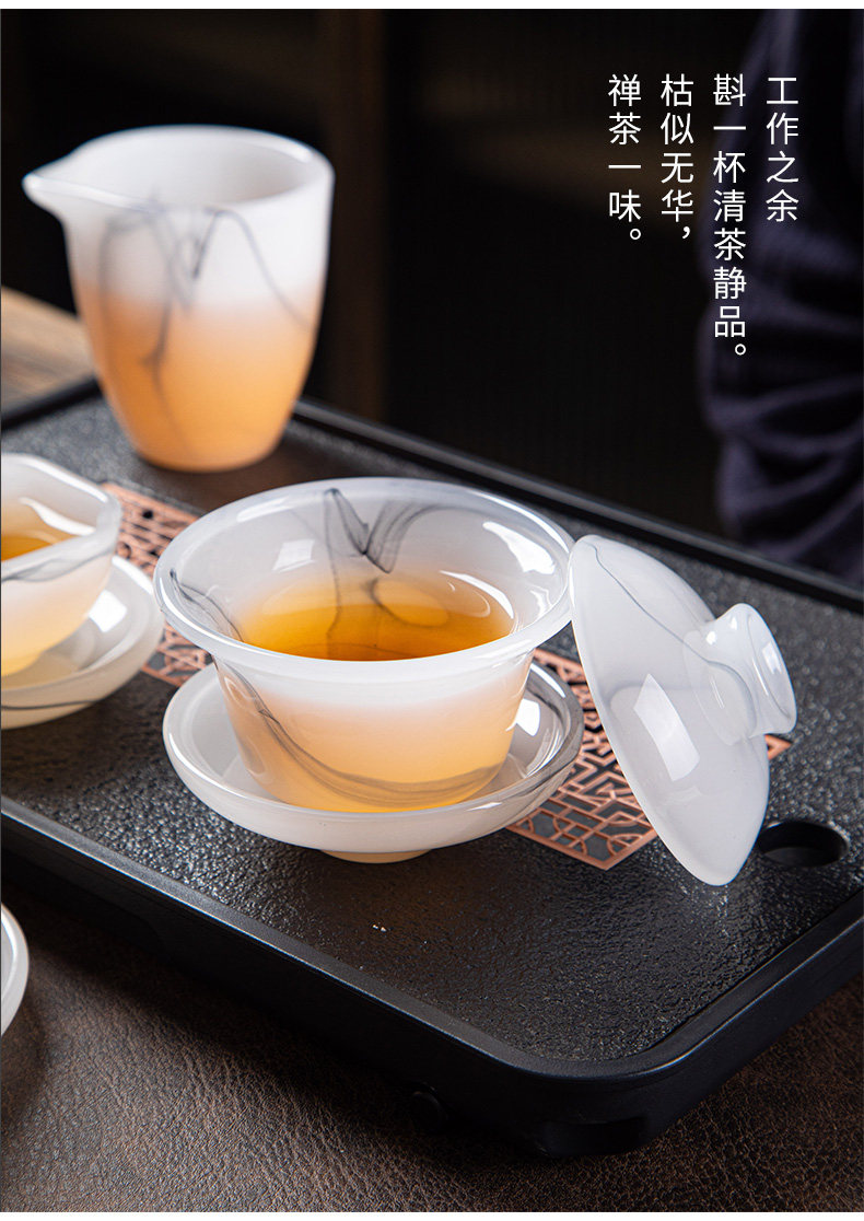 High-End Glazed Tea Set, Ice Crystal White Jade, Classy Light Luxury Tea Brewing Bowl, Tea Cup, Office Gift Box Set