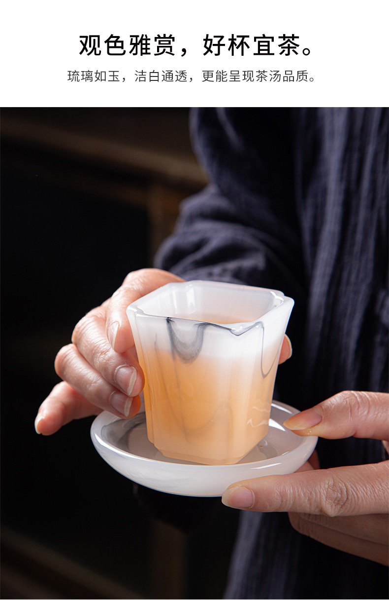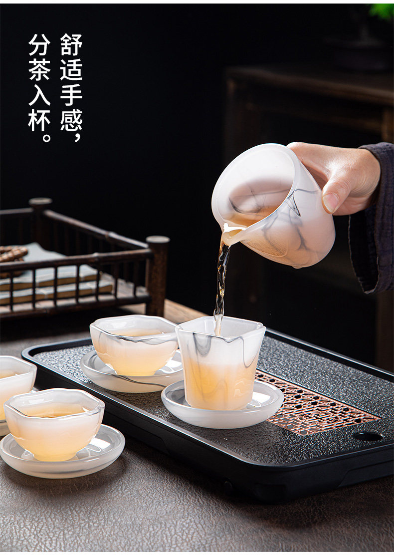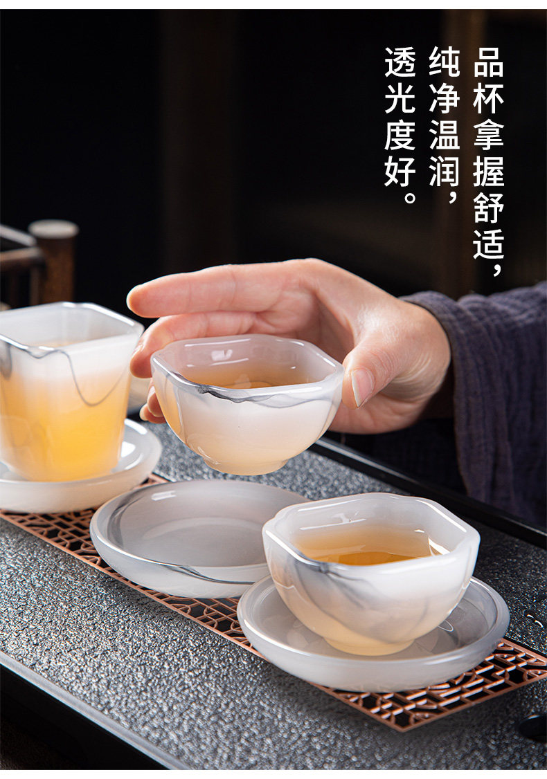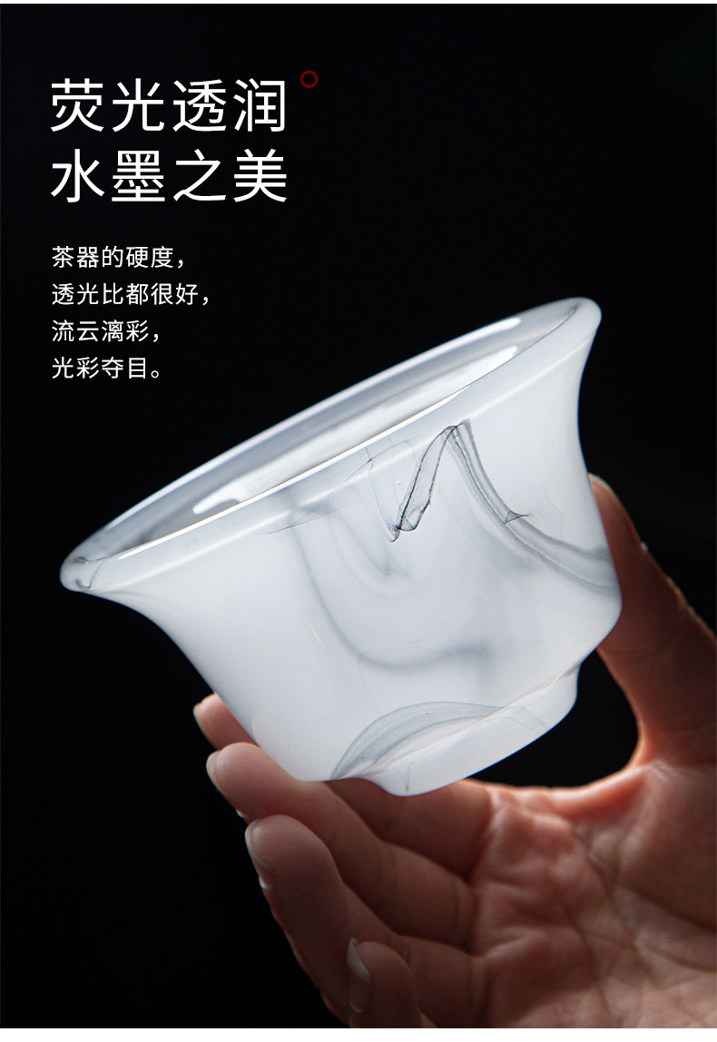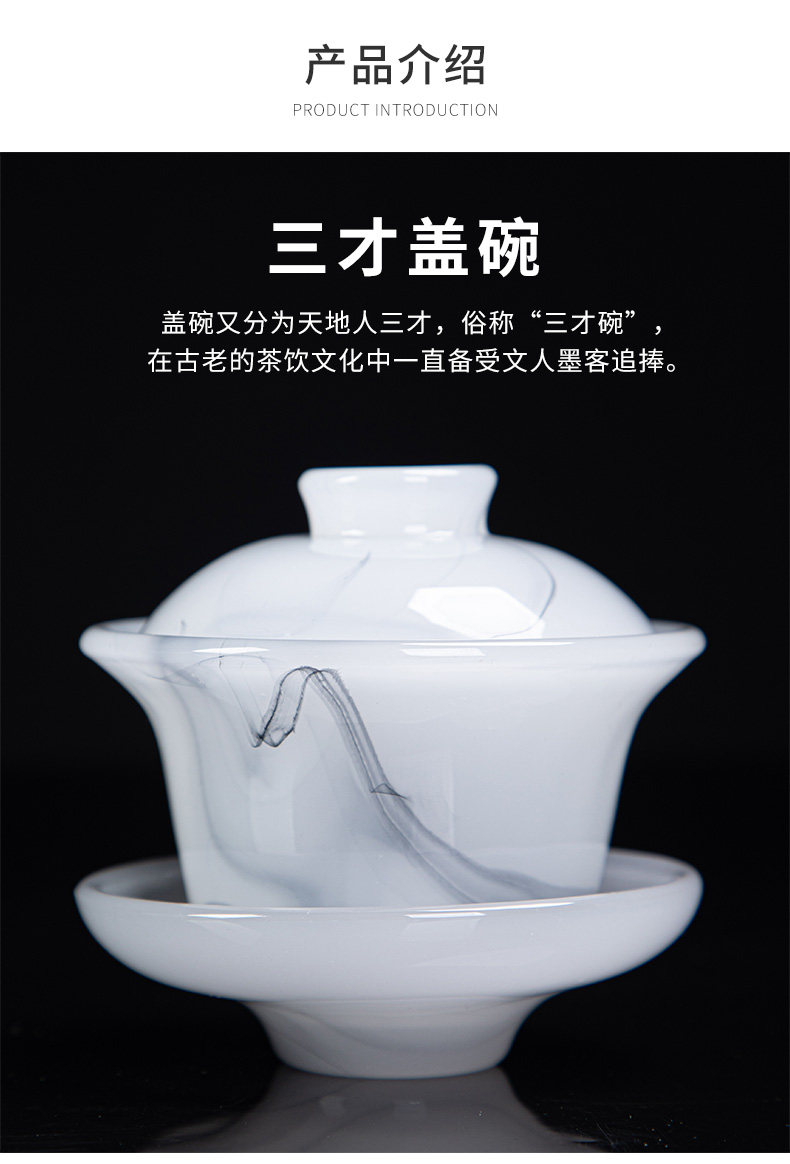 High-End Glazed Tea Set, Ice Crystal White Jade, Classy Light Luxury Tea Brewing Bowl, Tea Cup, Office Gift Box Set