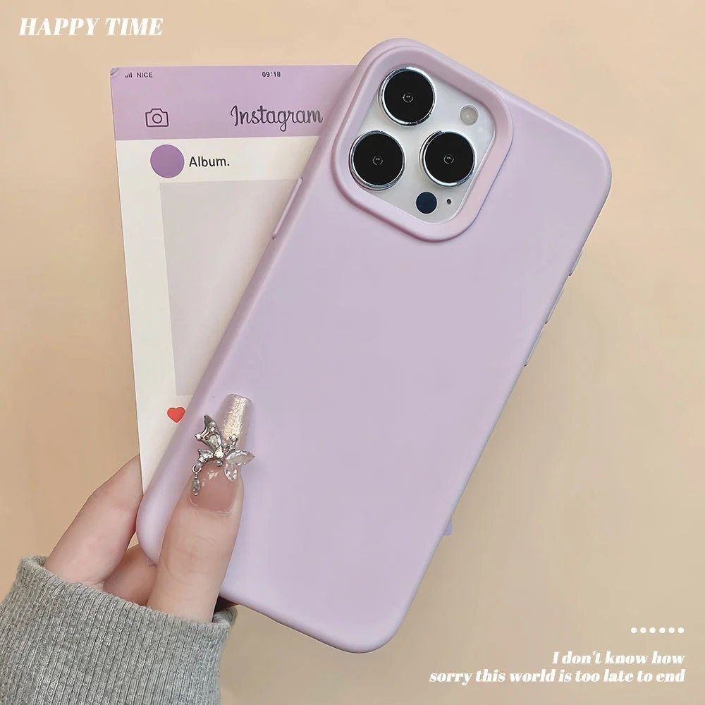 Dopamine Solid Color Liquid Silicone Is Suitable for Apple 17/16/15 Large Hole 14 Simple 13 Promax Phone Case 12 Soft Case Anti-Drop