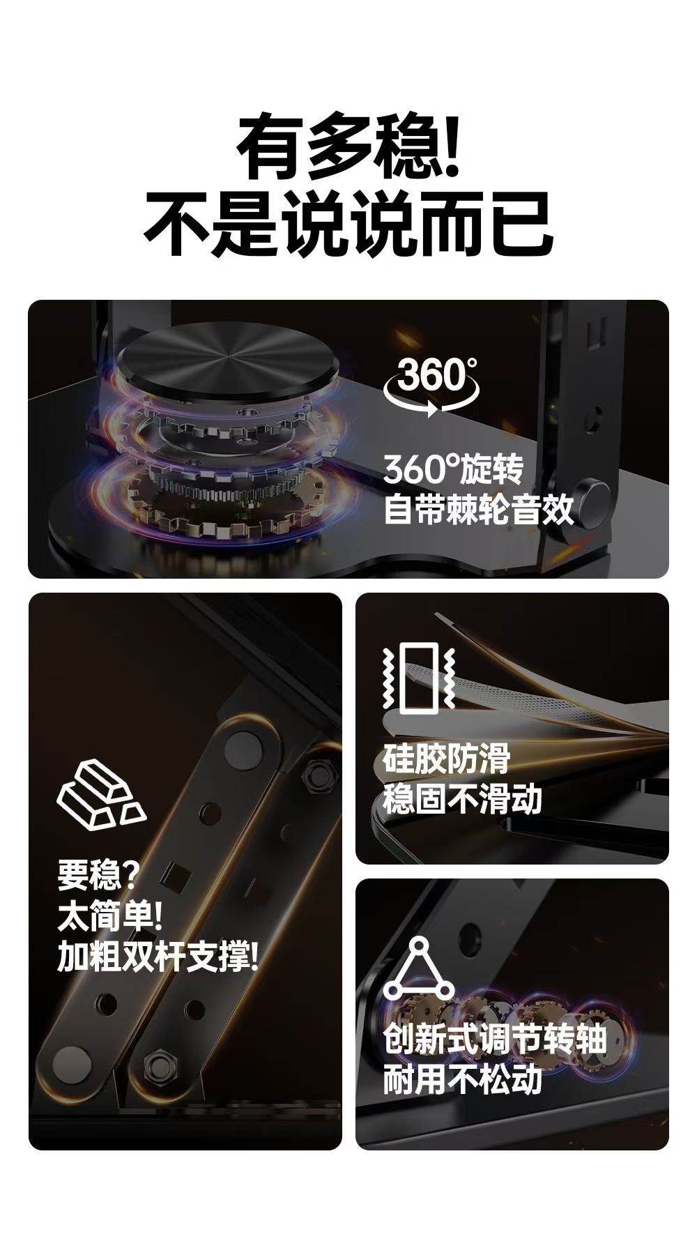 | Color Classification | [Flagship Model]Made of Carbon Steel[360°Rotate]Free Height⭐Stable and Not Wobbly,Increase and Widen[Top Version]Made of Carbon Steel[720 ° Rotate]Free Height⭐Stable and Not Wobbly,[Upgraded Model]Pink[Made Entirely of Aluminum Alloy⭐Ten Levels of Adjustment],[Upgraded Model]Silver[Made Entirely of Aluminum Alloy⭐Ten Levels of Adjustment],[Upgraded Model]Black[Made Entirely of Aluminum Alloy⭐Ten Levels of Adjustment],[Ordinary Style]Silver[Made Entirely of Aluminum Alloy⭐17inch Universal for Laptops/Tablets],[Ordinary Style]Black[Made Entirely of Aluminum Alloy⭐17inch Universal for Laptops/Tablets],[Basic Model]Pink⭐360 Degree Rotation[Abs Material⭐Eight Levels of Adjustment]15.6inch Lightweight and Thin Notebook and Tablet Universal,[Basic Model]White⭐360 Degree Rotation[Abs Material⭐Eight Levels of Adjustment]15.6inch Lightweight and Thin Notebook and Tablet Universal,[Basic Model]Black⭐360 Degree Rotation[Abs Material⭐Eight Levels of Adjustment]15.6inch Lightweight and Thin Notebook and Tablet Universal,Made of Carbon Steel[Mobile Phone Holder]360°Rotate⭐Only Supports Mobile Phone Use |