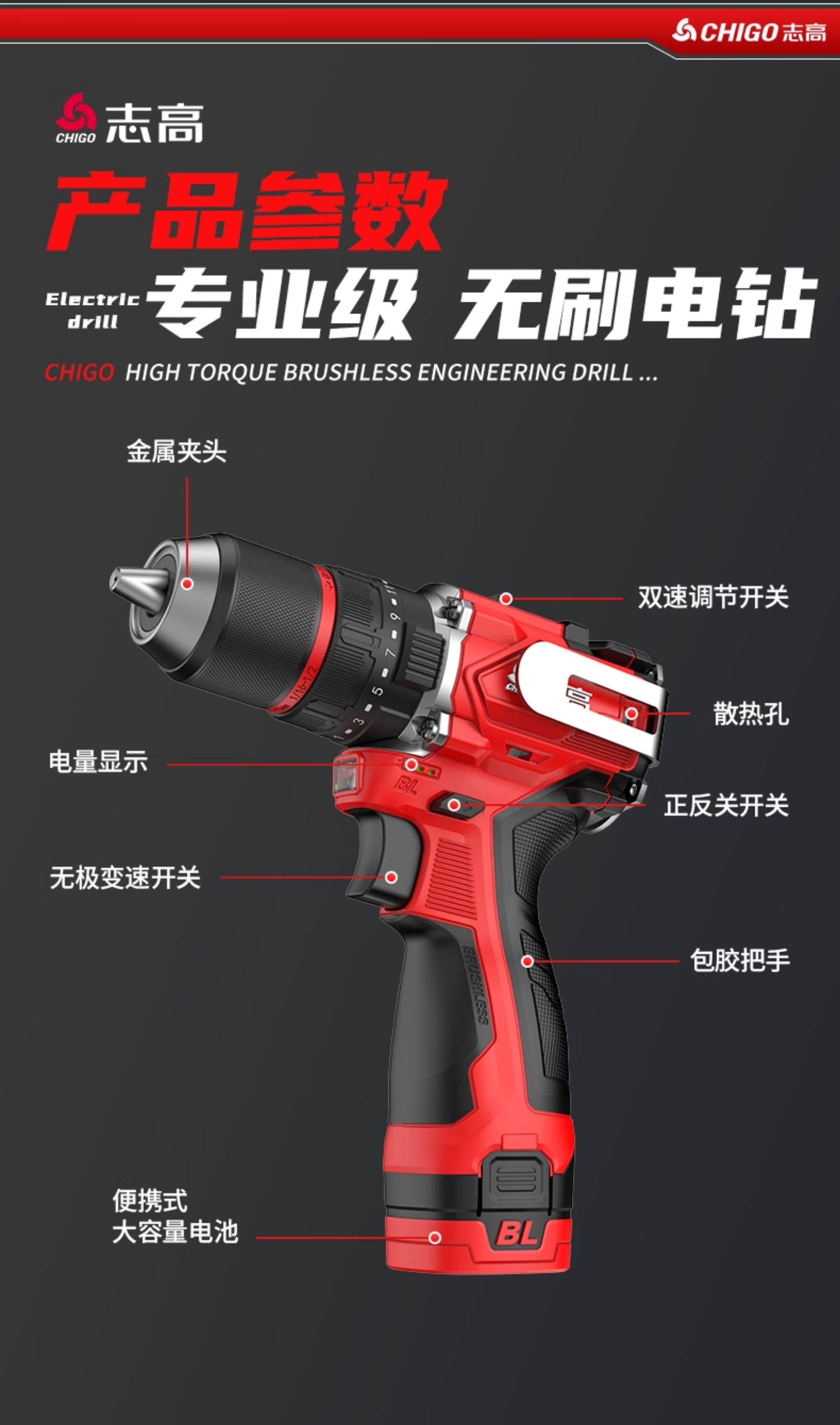 Zhigao Electric Drill Pure Copper Brushless Original 13mm Ratchet Self-Locking Lithium Impact Drill Multifunctional Electric Screwdriver