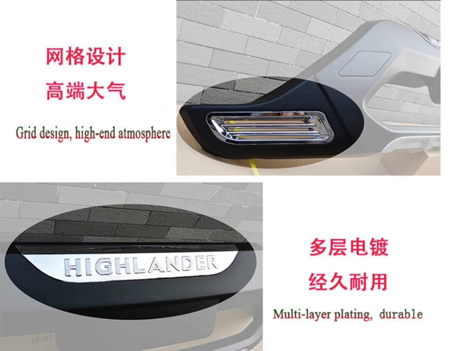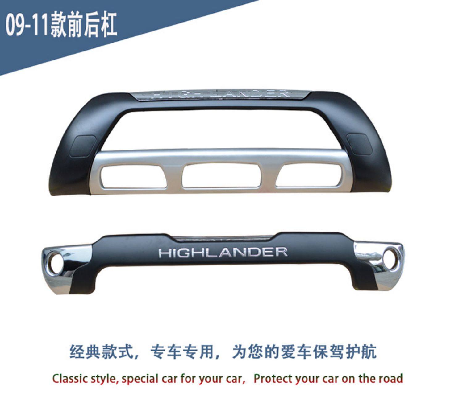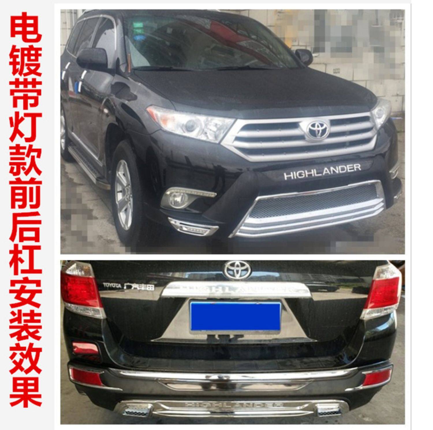 Suitable for 09-20 Toyota Highlander Front and Rear Bumpers, Highlander Electroplated Front and Rear Bumper with Lights Modification
