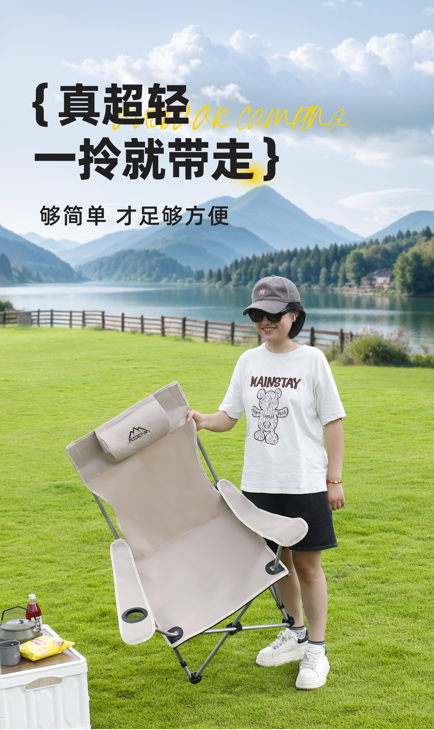Jetbeam Outdoor Folding Chair Camping Chair Moon Chair Beach Fishing Folding Bench Recliner Portable