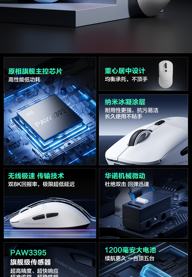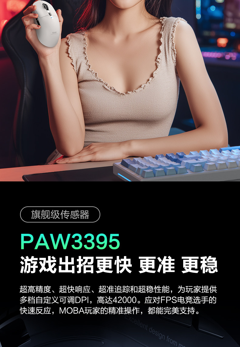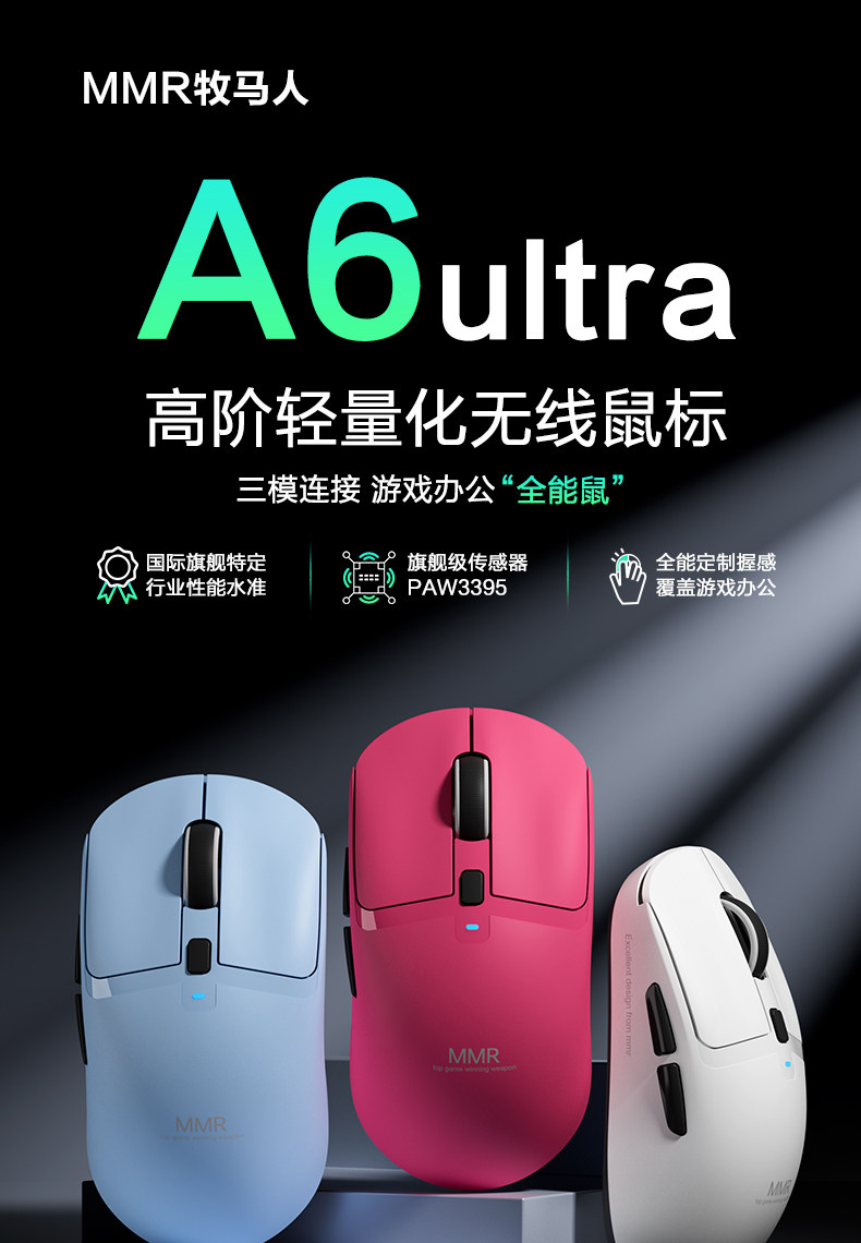 Mmr Wrangler A6Ultra Three-Mode Gaming E-Sports Mouse Wireless Bluetooth 3395 Lightweight Computer Office