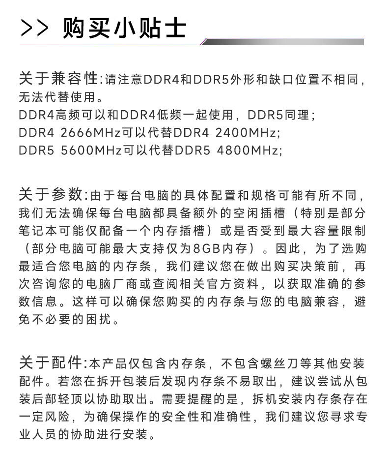 | Color Classification | Yinjue 16Gb[Single]4800 Vest Strips[If You Take 2 Strips, the Default Hair Strips Will Be Sent],Yinjue 16g[Single] 5600 Vest Strips[If You Take 2 Strips, the Default Hair Strips Will Be Sent],Yinjue 16g[Single] 6000 Domestic Granules C36[If You Take 2 Strips, the Default Hair Strips Will Be Sent],Yinjue 16Gb[Single] 6000 Hynix Mdie C36[If You Take 2 Strips, the Default Hair Strips Will Be Sent],Yinjue 16g[Single] 6000 Hynix Mdie C30[If You Take 2 Strips, the Default Hair Strips Will Be Sent],Yinjue 16g[Single] 6000 Hynix Adie C30[If You Take 2 Strips, the Default Hair Strips Will Be Sent],Yinjue 16g[Single] 6400 Hynix Mdie C32[If You Take 2 Strips, the Default Hair Strips Will Be Sent],Yinjue 16g[Single] 6400 Hynix Adie C32[If You Take 2 Strips, the Default Hair Strips Will Be Sent],Black Blade Armor 16g[Single] 6000 Domestic Granules C36[If You Take 2 Strips, the Default Hair Strips Will Be Sent],Black Blade Armor 16Gb[Single] 6000 Hynix Mdie C36[If You Take 2 Strips, the Default Hair Strips Will Be Sent],Black Blade Armor 16g[Single] 6000 Hynix Mdie C30[If You Take 2 Strips, the Default Hair Strips Will Be Sent],Black Blade Armor 16Gb[Single] 6400 Hynix Mdie C32[If You Take 2 Strips, the Default Hair Strips Will Be Sent],Black Blade Armor 16g[Single] 6400 Hynix Adie C32[If You Take 2 Strips, the Default Hair Strips Will Be Sent],Black Blade Armor 16Gb[Single] 6800 Hynix Adie C34[If You Take 2 Strips, the Default Hair Strips Will Be Sent],Black Blade Armor 16g[Single] 7200 Hynix Adie C34[If You Take 2 Strips, the Default Hair Strips Will Be Sent],Black Star Blade 16g[Single] 6000 Hynix Adie C28[If You Take 2 Strips, the Default Hair Strips Will Be Sent],White Star Blade 16g[Single] 6000 Hynix Adie C28[If You Take 2 Strips, the Default Hair Strips Will Be Sent],Black Star Blade 16Gb[Single] 6000 Hynix Adie C30[If You Take 2 Strips, the Default Hair Strips Will Be Sent],Black Star Blade 16Gb[Single] 6400 Hynix Adie C30[If You Take 2 Strips, the Default Hair Strips Will Be Sent],White Star Blade 16Gb[Single] 6400 Hynix Adie C30[If You Take 2 Strips, the Default Hair Strips Will Be Sent],Black Star Blade 16g[Single] 6800 Hynix Adie C32[If You Take 2 Strips, the Default Hair Strips Will Be Sent],White Star Blade 16Gb[Single] 6800 Hynix Adie C34[If You Take 2 Strips, the Default Hair Strips Will Be Sent],White Star Blade 16Gb[Single] 7200 Hynix Adie C34[If You Take 2 Strips, the Default Hair Strips Will Be Sent],Black Star Blade 16Gb[Single] 7200 Hynix Adie C34[If You Take 2 Strips, the Default Hair Strips Will Be Sent],Black Star Blade 16Gb[Single] 7600 Hynix Adie C36[If You Take 2 Strips, the Default Hair Strips Will Be Sent],Black Star Blade 16Gb[Single] 8000 Hynix Adie C36[If You Take 2 Strips, the Default Hair Strips Will Be Sent],White Light Blade 16Gb[Single] 6000 Domestic Granules C36[If You Take 2 Strips, the Default Hair Strips Will Be Sent],White Light Blade 16Gb[Single] 6000 Hynix Mdie C36[If You Take 2 Strips, the Default Hair Strips Will Be Sent],White Light Blade 16g[Single] 6000 Hynix Mdie C30[If You Take 2 Strips, the Default Hair Strips Will Be Sent],White Light Blade 16g[Single] 6000 Hynix Adie C28[If You Take 2 Strips, the Default Hair Strips Will Be Sent],White Light Blade 16Gb[Single] 6400 Hynix Adie C30[If You Take 2 Strips, the Default Hair Strips Will Be Sent],White Light Blade 16Gb[Single] 6400 Hynix Mdie C32[If You Take 2 Strips, the Default Hair Strips Will Be Sent],White Light Blade 16Gb[Single] 6400 Hynix Adie C32[If You Take 2 Strips, the Default Hair Strips Will Be Sent],White Light Blade 16Gb[Single] 6800 Hynix Adie C34[If You Take 2 Strips, the Default Hair Strips Will Be Sent],White Light Blade 16Gb[Single] 7200 Hynix Adie C34[If You Take 2 Strips, the Default Hair Strips Will Be Sent],White Light Blade 16Gb[Single] 7600 Hynix Adie C36[If You Take 2 Strips, the Default Hair Strips Will Be Sent],Black Blade 16Gb[Single] 6000 Domestic Granules C36[If You Take 2 Strips, the Default Hair Strips Will Be Sent],Black Blade 16g[Single] 6000 Hynix Adie C28[If You Take 2 Strips, the Default Hair Strips Will Be Sent],Black Blade 16g[Single] 6000 Hynix Mdie C30[If You Take 2 Strips, the Default Hair Strips Will Be Sent],Black Blade 16Gb[Single] 6000 Hynix Mdie C36[If You Take 2 Strips, the Default Hair Strips Will Be Sent],Black Blade 16Gb[Single] 6400 Hynix Mdie C32[If You Take 2 Strips, the Default Hair Strips Will Be Sent],Black Blade 16Gb[Single] 6400 Hynix Adie C30[If You Take 2 Strips, the Default Hair Strips Will Be Sent],Black Blade 16Gb[Single] 6400 Hynix Adie C32[If You Take 2 Strips, the Default Hair Strips Will Be Sent],Black Blade 16Gb[Single] 6800 Hynix Adie C32[If You Take 2 Strips, the Default Hair Strips Will Be Sent],Black Blade 16Gb[Single] 6800 Hynix Adie C34[If You Take 2 Strips, the Default Hair Strips Will Be Sent],Black Blade 16Gb[Single] 7200 Hynix Adie C34[If You Take 2 Strips, the Default Hair Strips Will Be Sent] |