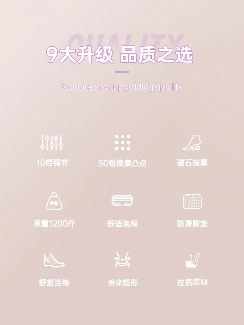 | Color Classification | Standard Purple [Magnet Massage-9 Levels Adjustable-Bearing Capacity 400kg],Standard Powder [Magnet Massage-9 Levels Adjustable-Bearing Capacity 400kg],Standard Blue [Magnet Massage-9 Levels Adjustable-Bearing 400kg],Standard Orange [Magnet Massage-9 Levels Adjustable-Bearing 400kg],Enhanced Purple [Magnet Massage-11 Levels Adjustable-Bearing 450kg],Enhanced Powder [Magnet Massage-11 Levels Adjustable-Bearing 450kg],Enhanced Blue [Magnet Massage-11 Levels Adjustable-Bearing 450kg],Enhanced Orange [Magnet Massage-11 Levels Adjustable-Bearing 450kg],Upgraded Purple [Widened and Thickened - Magnetic Massage - 13 Levels Adjustable - Load Bearing 500kg],Upgraded Powder [Widened and Thickened-Magnet Massage-13 Levels Adjustable-Bearing 500kg],Upgraded Blue [Widened and Thickened-Magnet Massage-13 Levels Adjustable-Bearing 500kg],Upgraded Orange [Widened and Thickened-Magnet Massage-13 Levels Adjustable-Bearing 500kg],Mint Green Soft Rubber Model [15 Levels Adjustable - Load Bearing 500kg],Lilac Purple Soft Rubber Model [15 Levels Adjustable - Load Bearing 500kg],Sakura Pink Soft Rubber Model [15 Levels Adjustable - Load Bearing 500kg],Upgraded Blue + Figure 8 Resistance Band [Stretching & Back Beauty Combo] - Weight Capacity: 500kg,Upgraded Resistance Band Set with Figure-8 Resistance Band [Stretching & Back Strengthening Combo] - Weight Capacity: 500kg,Upgraded Purple + Figure 8 Resistance Band [Stretching & Back Beauty Combo] - Weight Capacity: 500kg,Pink Soft Rubber Pedal Model-12 Levels Adjustable,Green Soft Rubber Pedal Model-12 Levels Adjustable |