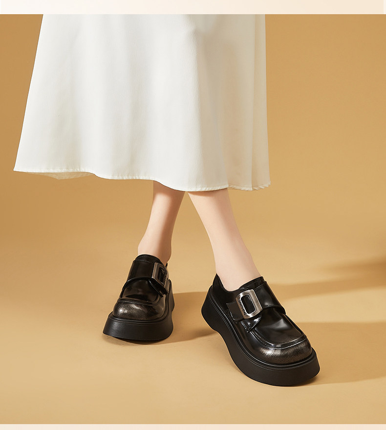 Daphne Thick-Soled Derby Shoes for Women 2026 New Autumn and Winter Large-Toe Loafers British Style Small Leather Shoes Commuter Shoes