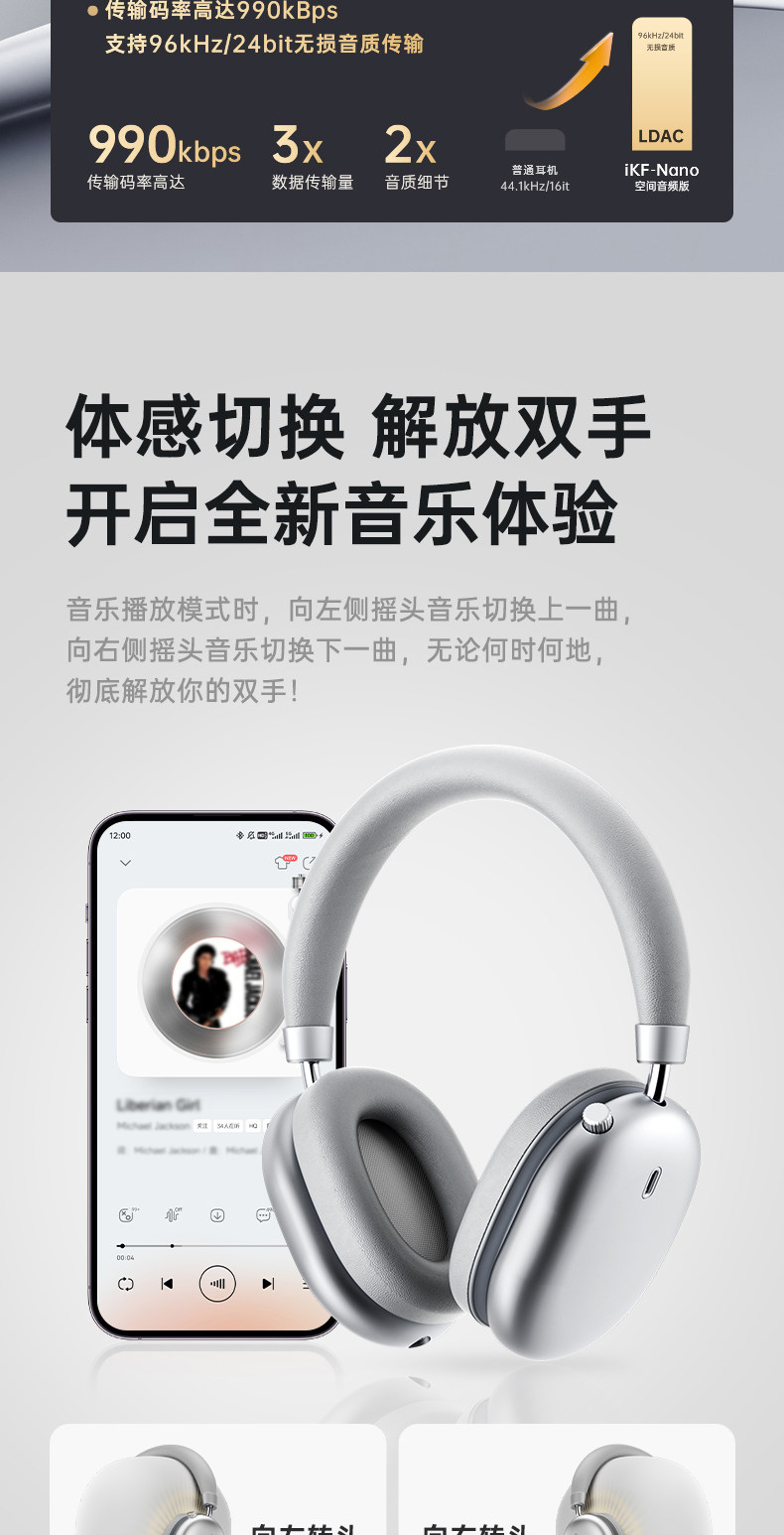 | Color Classification | Aurora Silver [Spatial Audio Edition] Ldac Hd Decoding + Hi-Res Gold Label Lossless Sound Quality + Intelligent Somatosensory Control + 150H Long Battery Life,Athens Gray [Spatial Audio Edition] Ldac Hd Decoding + Hi-Res Gold Label Lossless Sound Quality + Intelligent Somatosensory Control + 150H Long Battery Life,Starlight Purple [Spatial Audio Version] Ldac Hd Decoding + Hi-Res Gold Label Lossless Sound Quality + Intelligent Somatosensory Control + 150H Long Battery Life |
