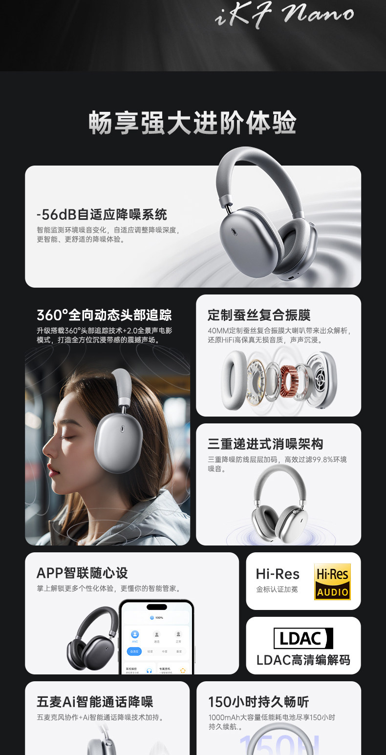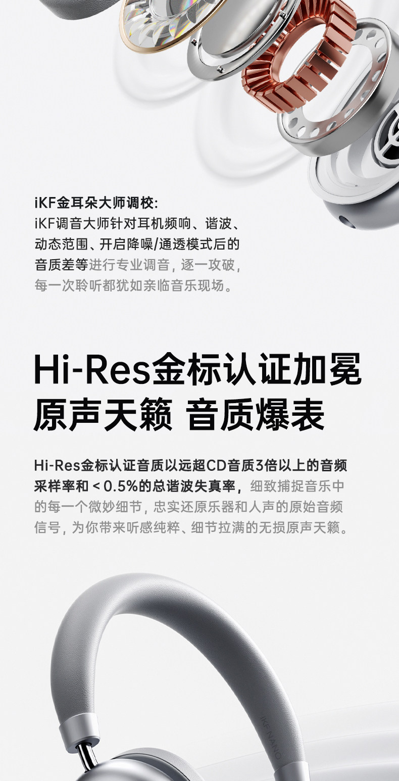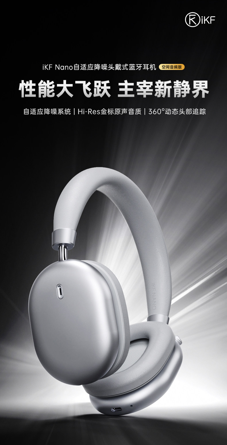 Ikf Nano[Space Audio] Adaptive Active Noise Cancellation Headphones Gaming Low Latency Wireless Bluetooth
