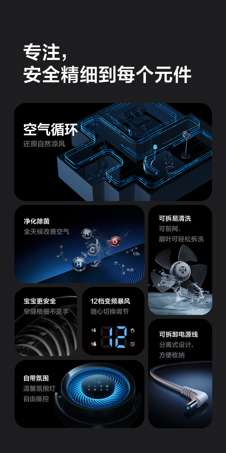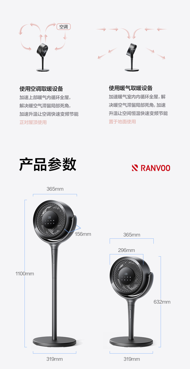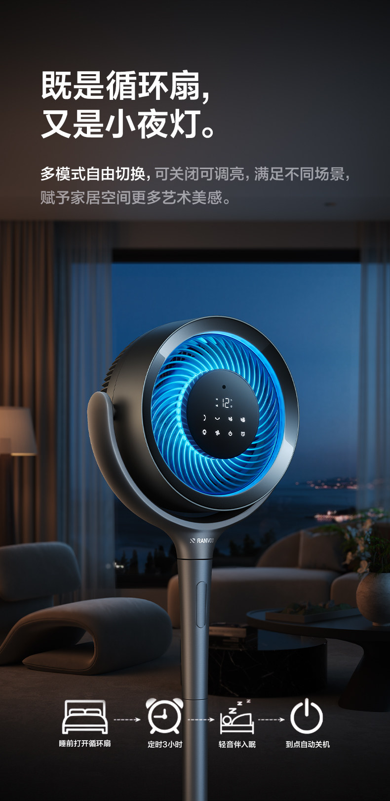 Ruiwu Air Circulation Fan 2025 New Model Ai Intelligent Purifying Desktop Fan Silent Household Electric Fan Floor Fan