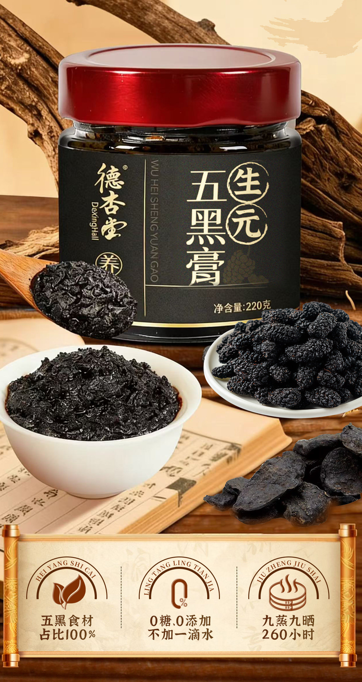 [Gold Award for Intangible Cultural Heritage] Shouwu Huangjing Five Black Paste Mulberry Paste Black Goji Berry Hair Nourishing Tea Health Paste Official official store