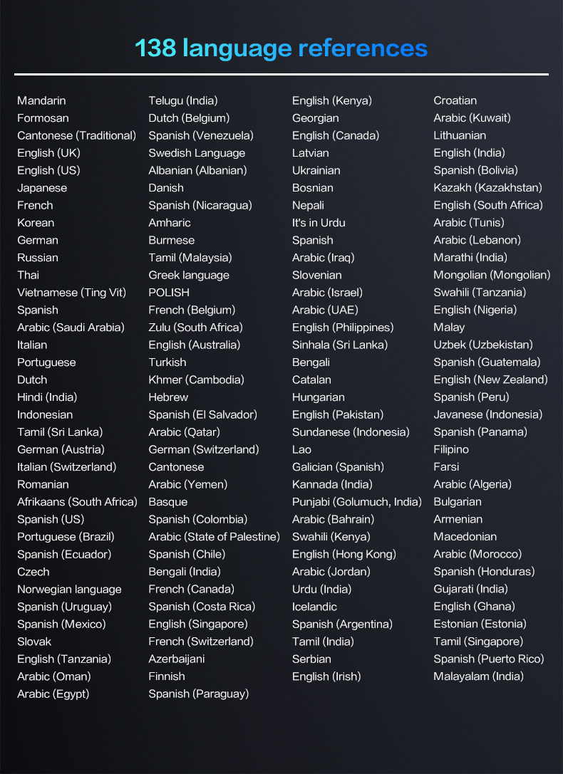 | Color Classification | 138 languages are online and 17 languages are offline. |