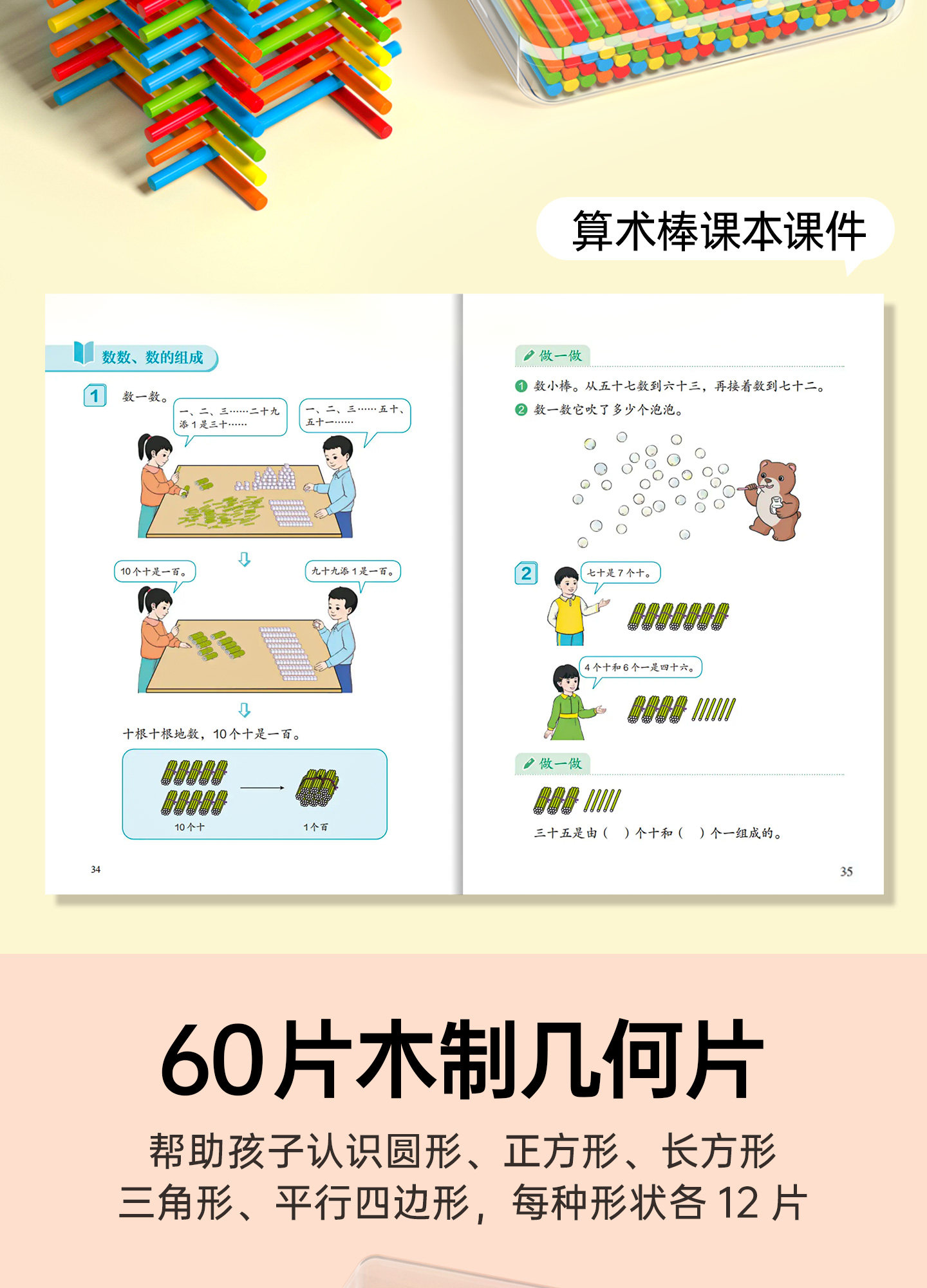 Complete Set of Math Teaching Aids for First Grade Elementary School, Including Cubes, Counters, and Tools for Learning Geometric Shapes, School Supplies Set, Essential Stationery for the Start of School