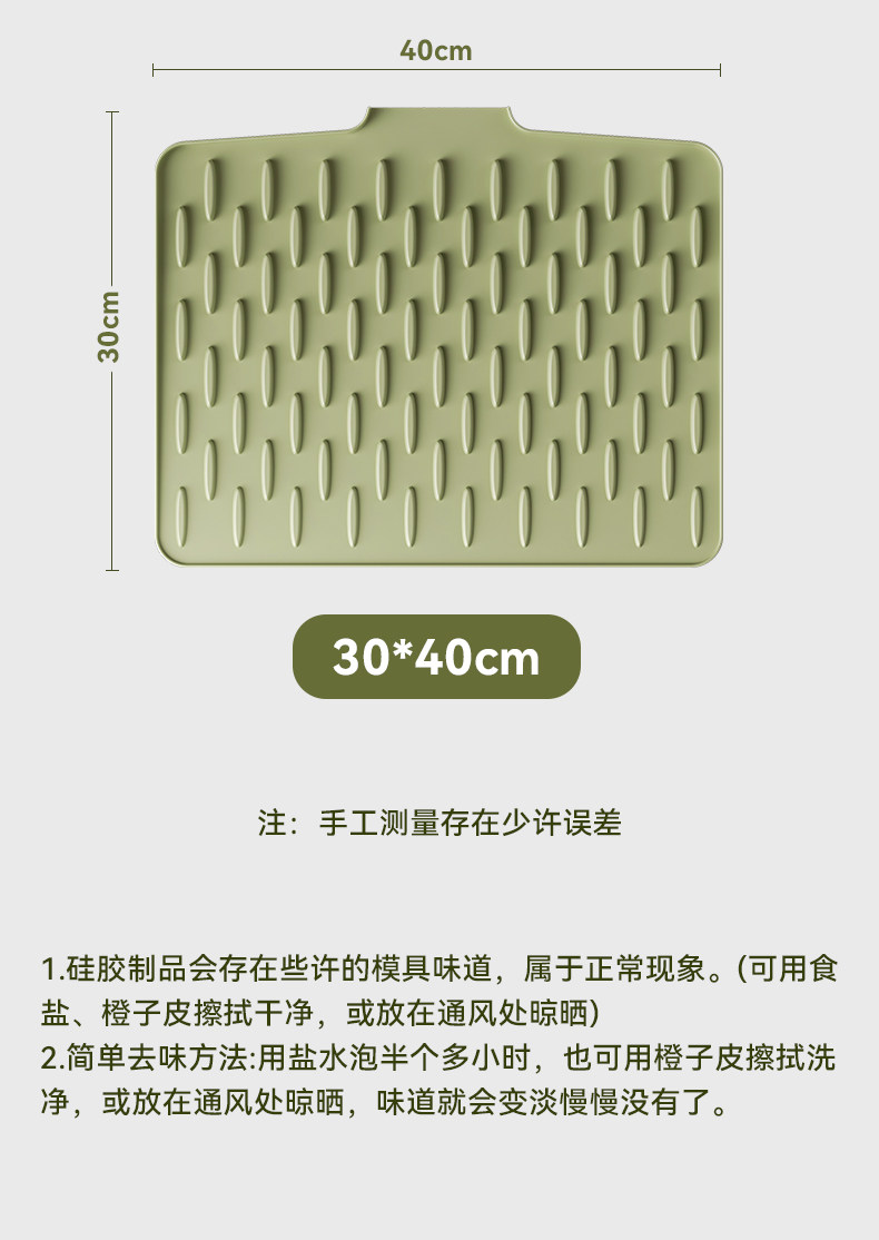 | Color Classification | Matcha Green 30*40 [No Odor/Maternity and Infant Grade Silicone/Slope Drainage/Splash-Proof].,Off-White 30*40 [No Odor/Maternity and Infant Grade Silicone/Slope Drainage/Splash-Proof].,Dark Gray 30*40 [No Odor/Maternity and Infant Grade Silicone/Slope Drainage/Splash-Proof].,Matcha Green 40*60 [No Odor/Maternity and Infant Grade Silicone/Slope Drainage/Splash Proof].,Off-White 40*60 [No Odor/Maternity and Infant Grade Silicone/Slope Drainage/Splash-Proof].,Dark Gray 40*60 [No Odor/Maternity and Infant Grade Silicone/Slope Drainage/Splash Proof].,Matcha Green 30*40 Strap Model [No Odor/Maternity and Infant Grade Silicone/Slope Drainage/Splash Proof].,Off-White 30*40 Strap Model [No Odor/Maternity and Infant Grade Silicone/Slope Drainage/Splash-Proof].,Dark Gray 30*40 Strap Model [No Odor/Maternity and Infant Grade Silicone/Slope Drainage/Splash Proof]. |