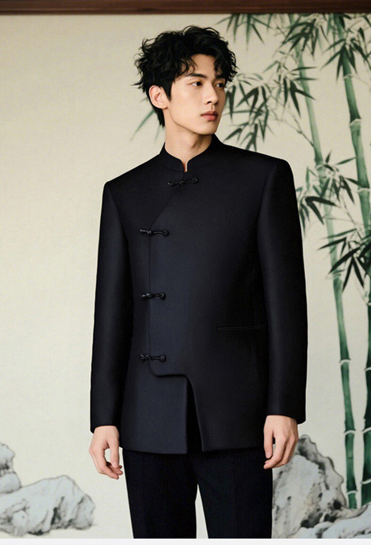 [Moyun]Luo Meng Chinese-Style Suit Set 2025 Autumn and Winter New Groom Wedding Chinese-Style Stand-Up Collar Zhongshan Suit Nx