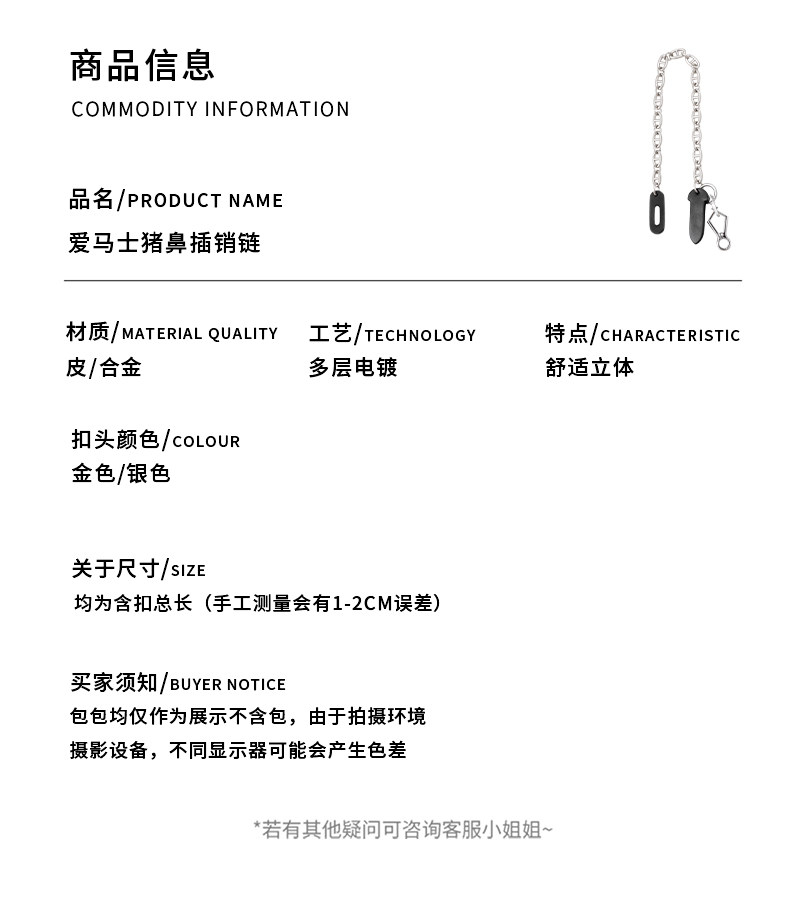 | Color Classification | [Applicable to 31/39]Black Leather Silver Buckle Pig Nose Pin Chain 37cm,[Applicable to 31/39]Black Leather Gold Buckle Pig Nose Pin Chain 37cm,[Applicable to 31/39]Brown Leather Silver Buckle Pig Nose Pin Chain 37cm |