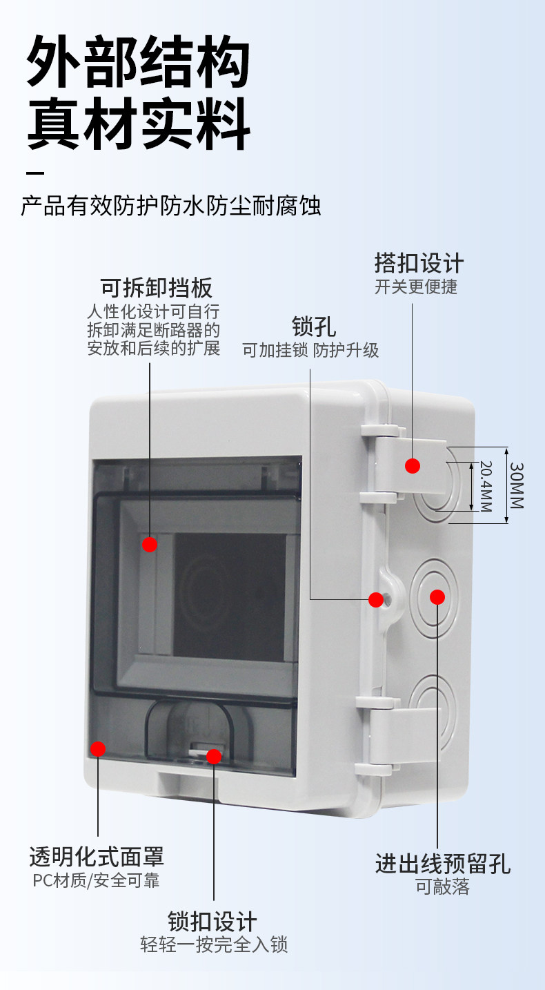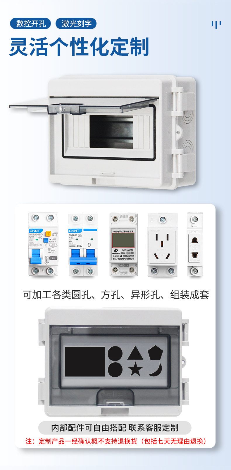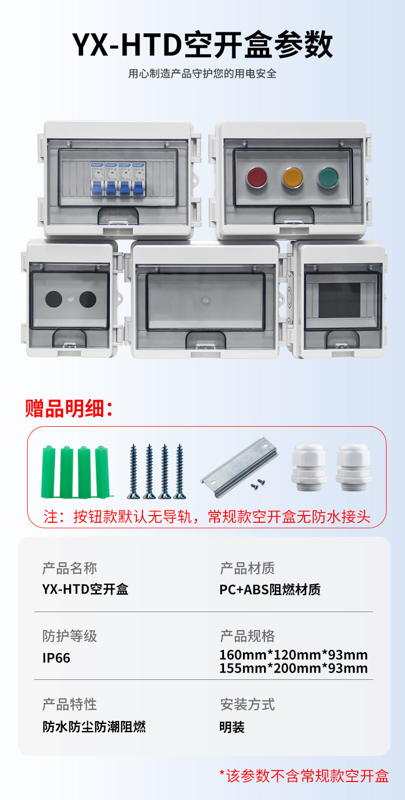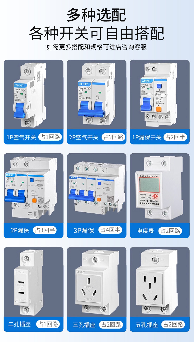 | Color Classification | ---New Upgrade: Snap-On Double Door---,3-5 Circuit Empty Box (Yx-Htd-5),3-Position 1P/16A Circuit Breaker Box Set,4-8 Circuit Empty Box (Yx-Htd-8),4-Position 1P/16A Circuit Breaker Box Set,Customizable and Available - 8-Circuit Holeless Empty Box,---Conventional Models on the Market (No Connectors, No Installation Packages)---,5 Circuits - Empty Box Only,8 Circuits - Empty Box Only,12 Circuits - Empty Box Only,15 Circuits - Empty Box Only,18 Circuits - Empty Box Only,24 Circuits - Empty Box Only,'----Set Series (Base Box Is an Upgraded Circuit Breaker Box),5 Circuits-1P/16A+ Leakage Protection,5 Circuits-1P/32A+ Leakage Protection,5 Circuits-1P/32A+Leakage Protection+Five-Hole 10A Socket,5 Circuits-1P/32A+Leakage Protection+Five-Hole 16A Socket,5 Circuits-1P/63A+ Leakage Protection,5 Circuit-2P/16A Circuit Breaker,5-Circuit-2P/16A Circuit Breaker + Five-Hole 10A Socket,5-Circuit-2P/16A Circuit Breaker + Five-Hole 16A Socket,5-Circuit-2P/32A Circuit Breaker + Leakage Protection,5 Circuit-2P/32A Circuit Breaker,5-Circuit-2P/32A Circuit Breaker + Five-Hole 10A Socket,5-Circuit-2P/32A Circuit Breaker + Five-Hole 16A Socket,5 Circuits-2P/40A+ Leakage Protection,5 Circuit-3P/32A Circuit Breaker,5 Circuit-4P/63A Circuit Breaker,5 Circuits-Five Holes 10A+Five Holes 16A Socket,5 Circuits-Five Holes 10A,5 Circuits-Five Holes 16A,5 Circuits-Five Holes 16A*2 Pcs,8 Circuits-1P/32A+Leakage Protection+Five-Hole 10A Socket X2,8 Circuits-2P/32A+Leakage Protection+Five-Hole 10A Socket+Five-Hole 16A Socket,8 Circuits-2P/40A+Leakage Protection+2P/32A Circuit Breaker X2 Pcs,8 Circuits-2P/40A+Leakage Protection+Five-Hole 10A Socket+Five-Hole 16A Socket |