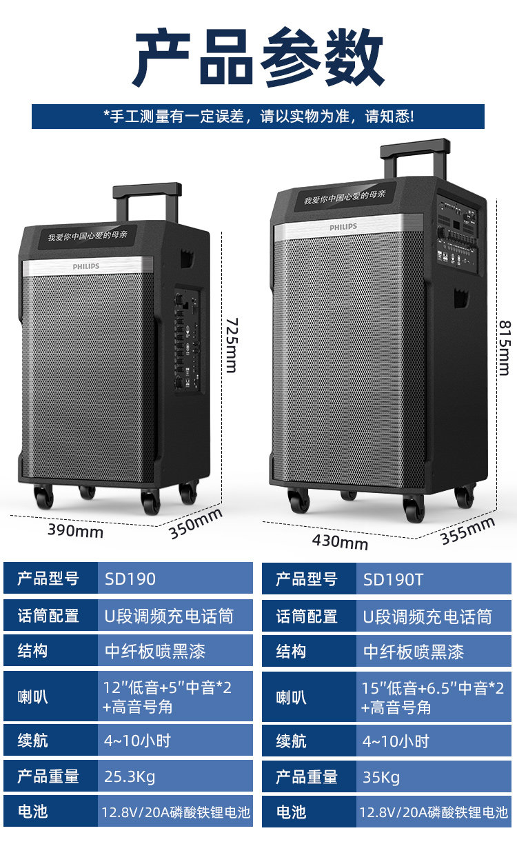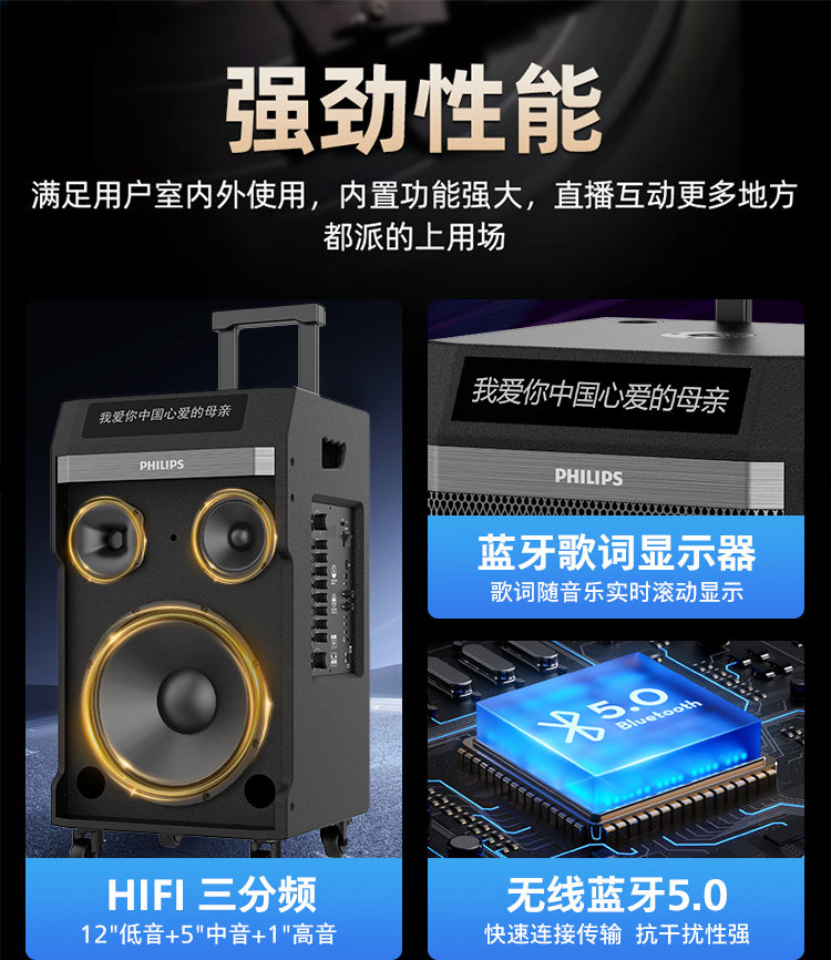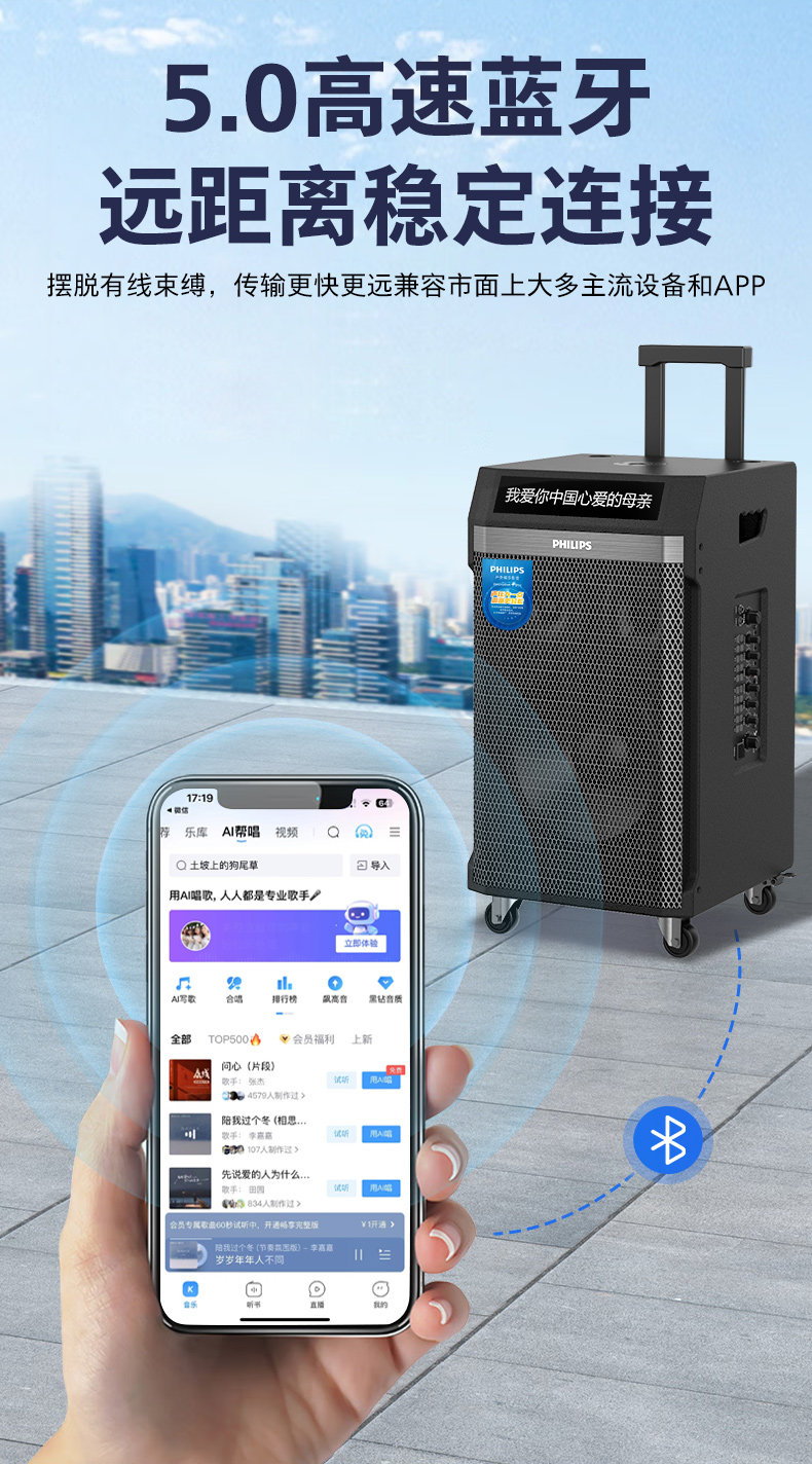 Philips 2025 New Model Sd190 Series High-Power, High-Volume Bluetooth Speaker for Square Dancing, Portable Speaker