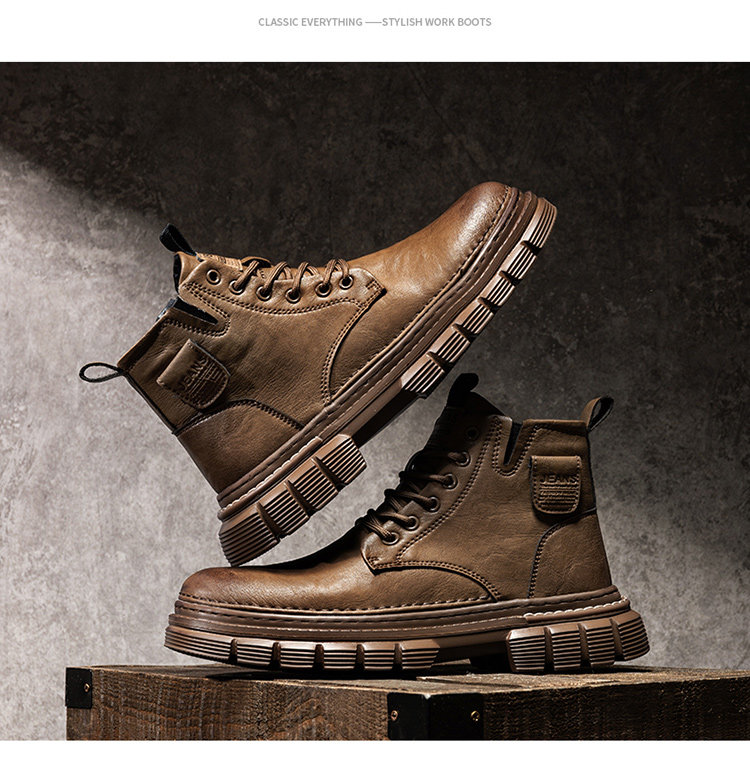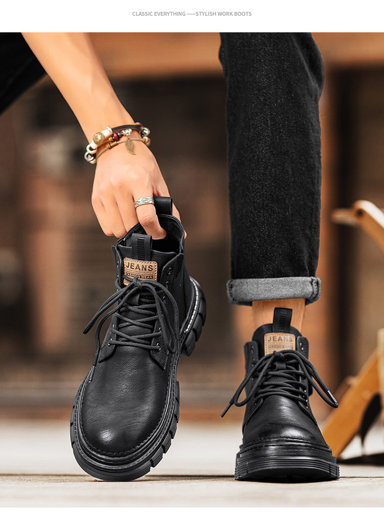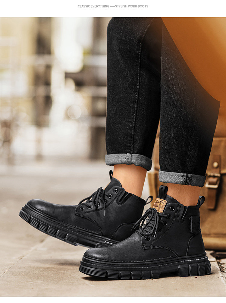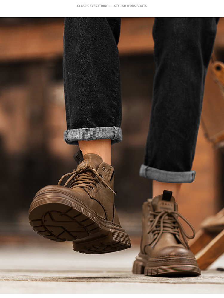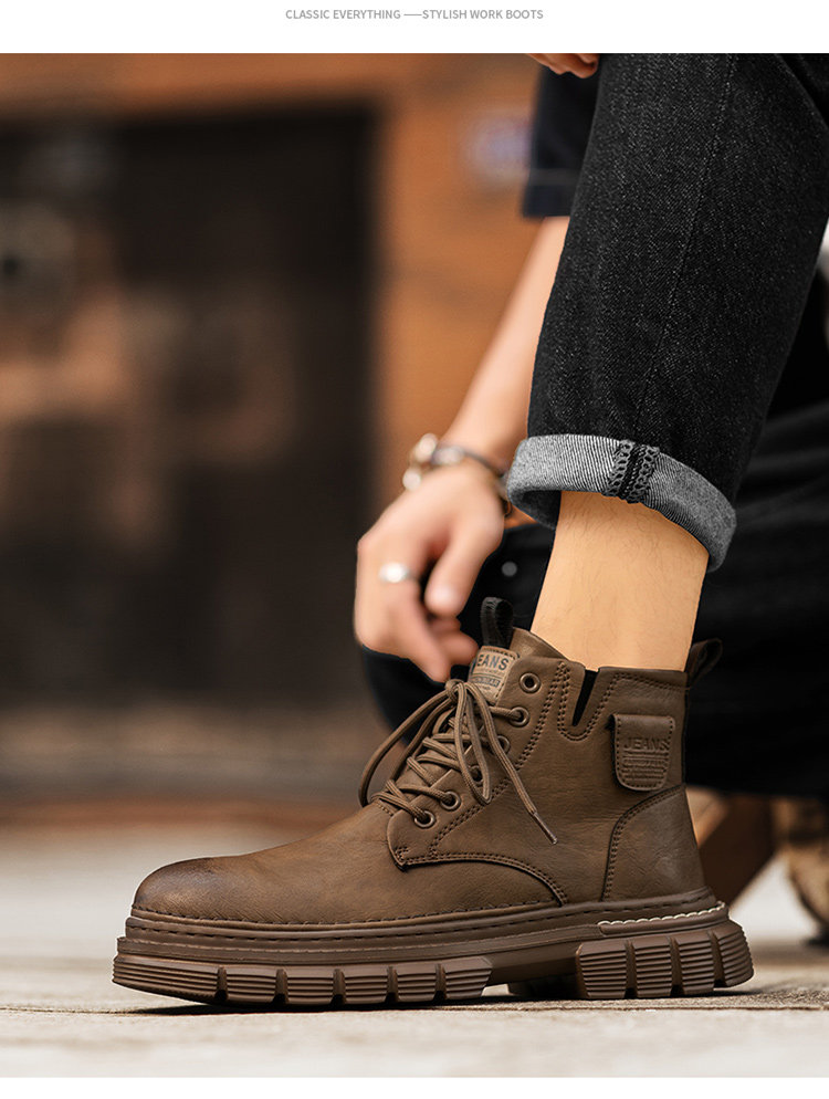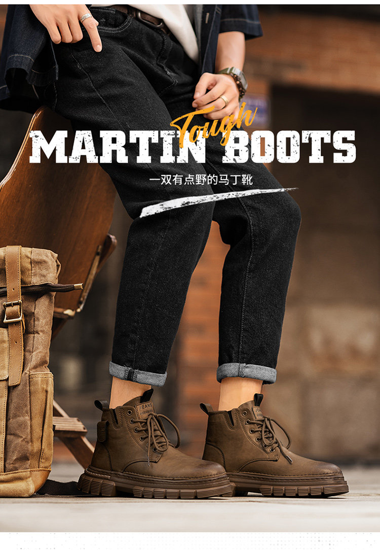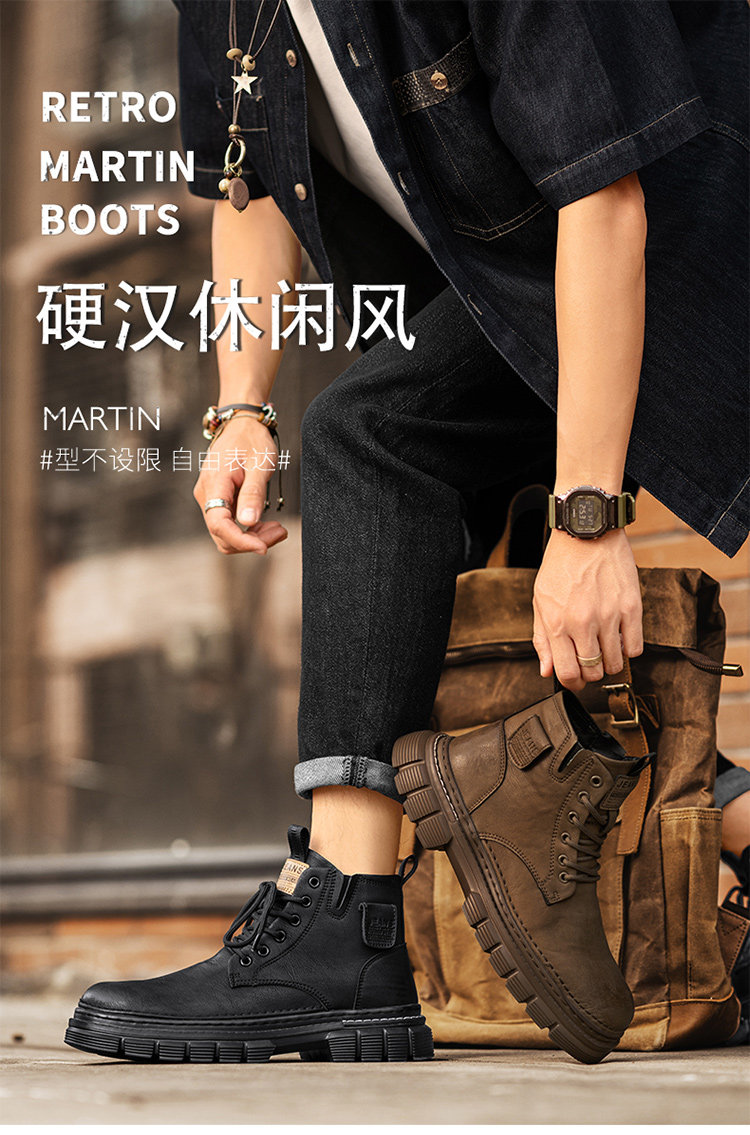 Martin Boots for Men 2025 New Winter Retro British Style Trendy Workwear Paratrooper Boots High-Top Casual Thick-Soled Leather Boots