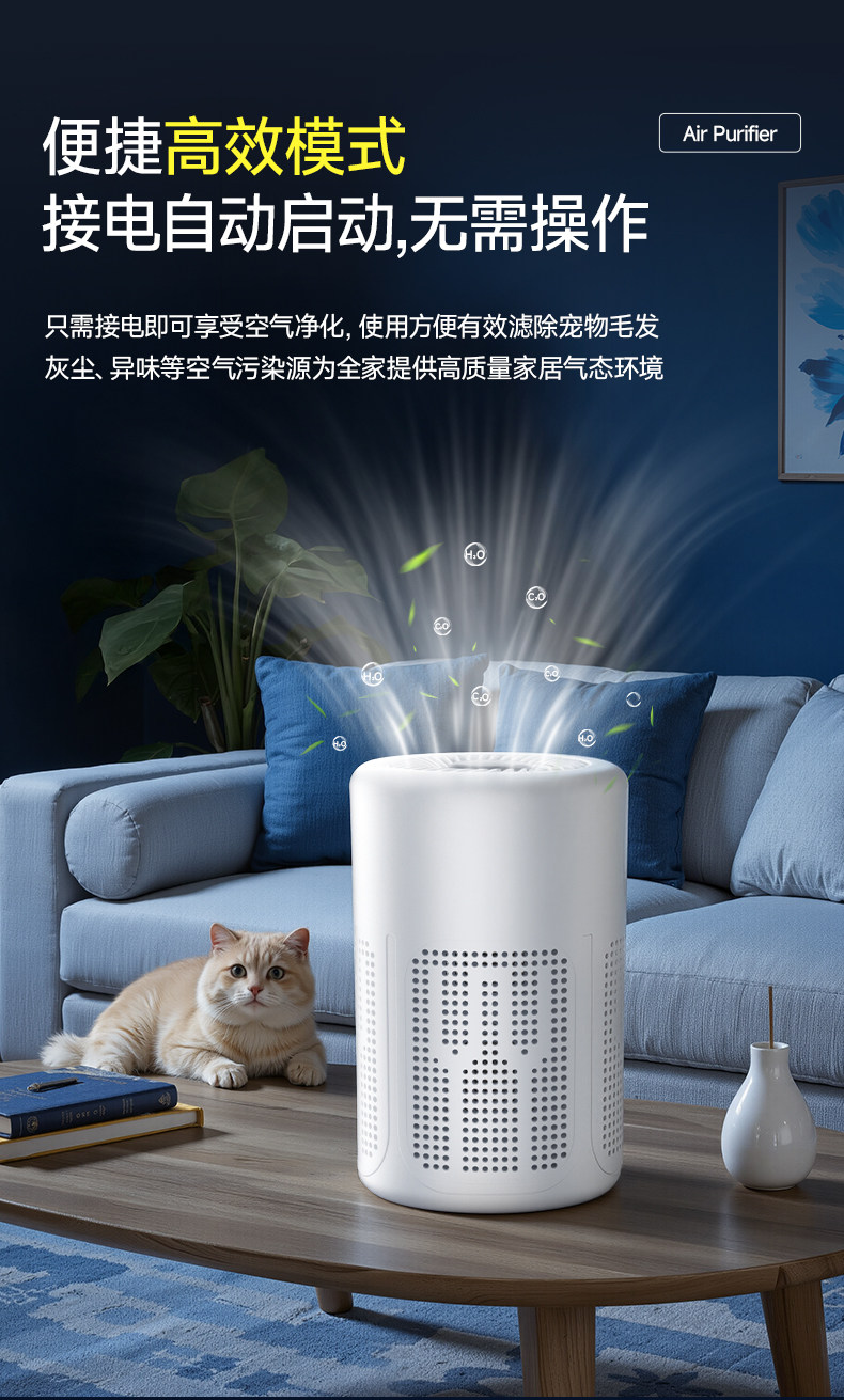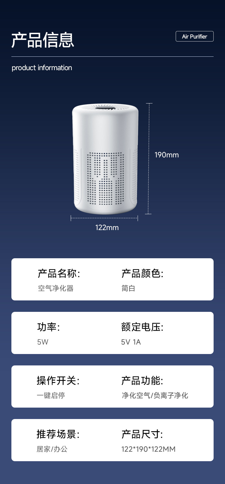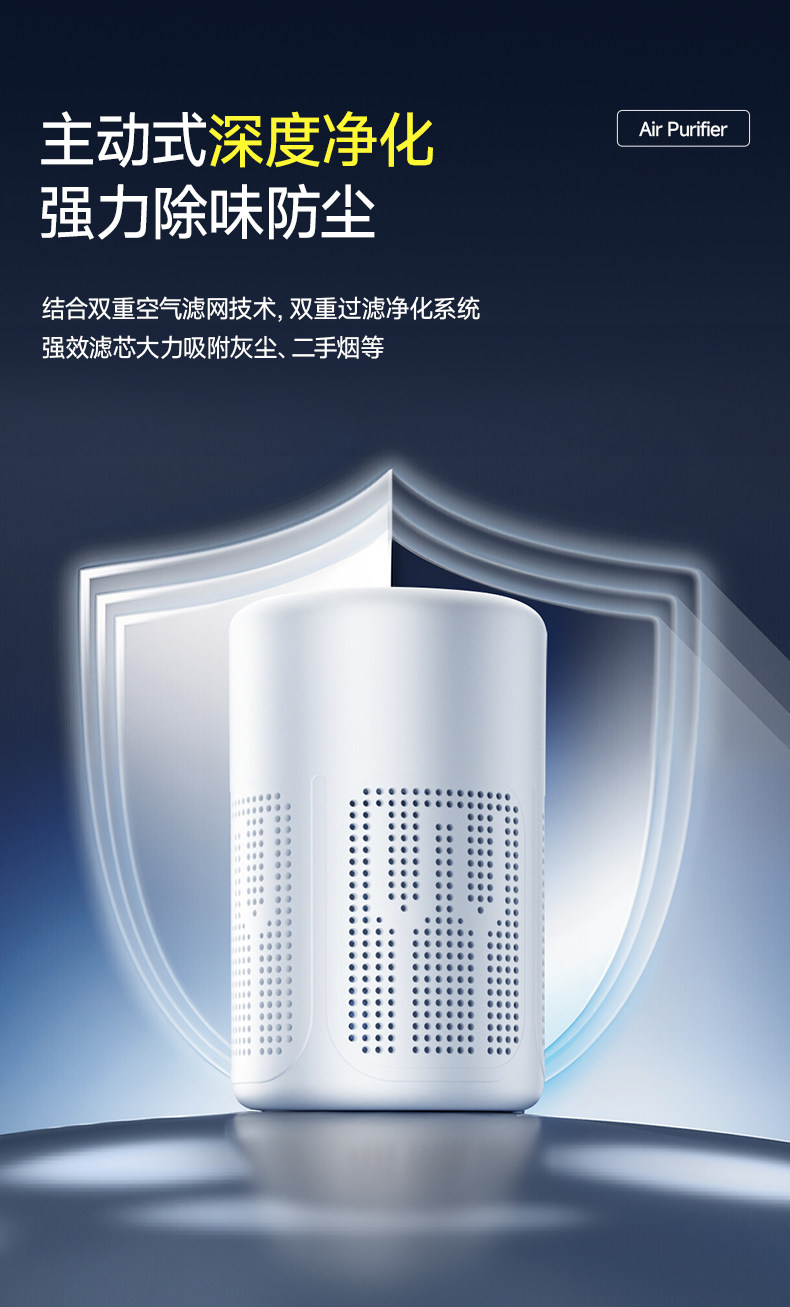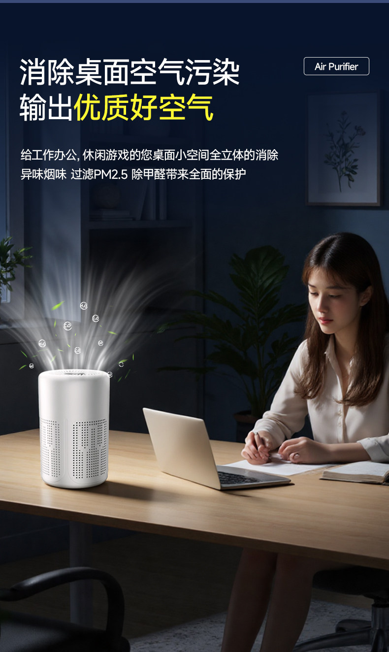 Desktop Air Purifier Removes Formaldehyde, Small Office Smoke Purifier, Pet Deodorizer, Sterilization and Disinfection